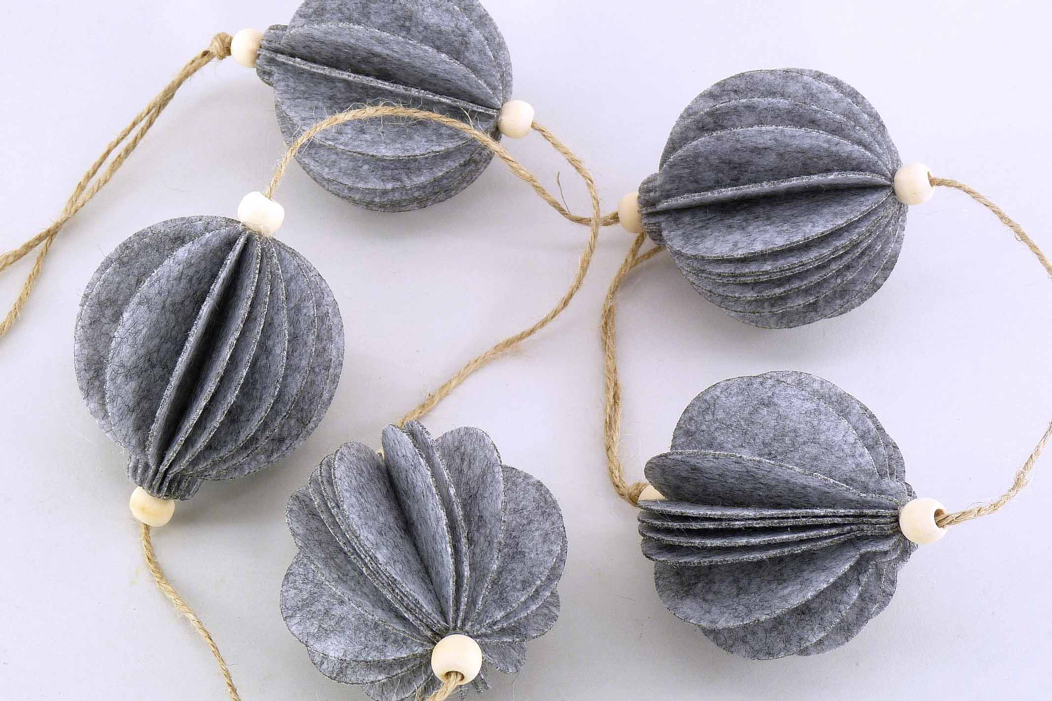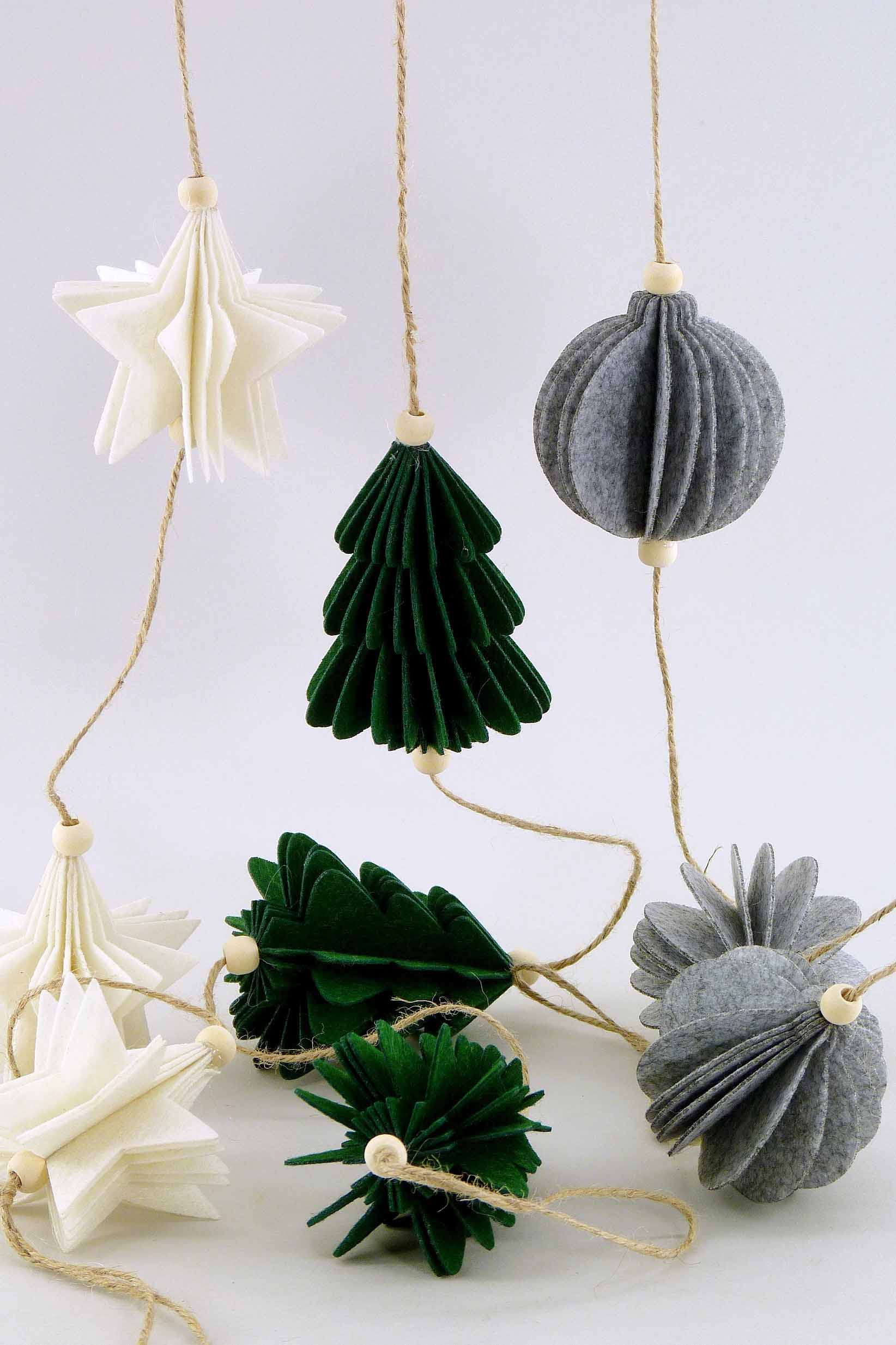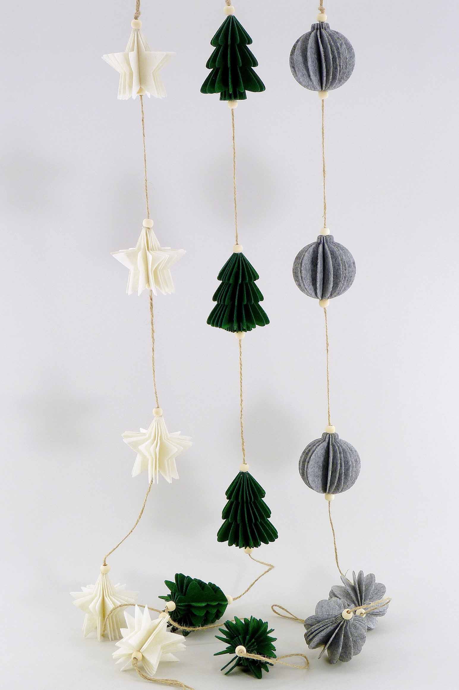 Filz-Girlande Stern/Baum/Kugel grau/grün/weiß sort. H8-10 L116cm