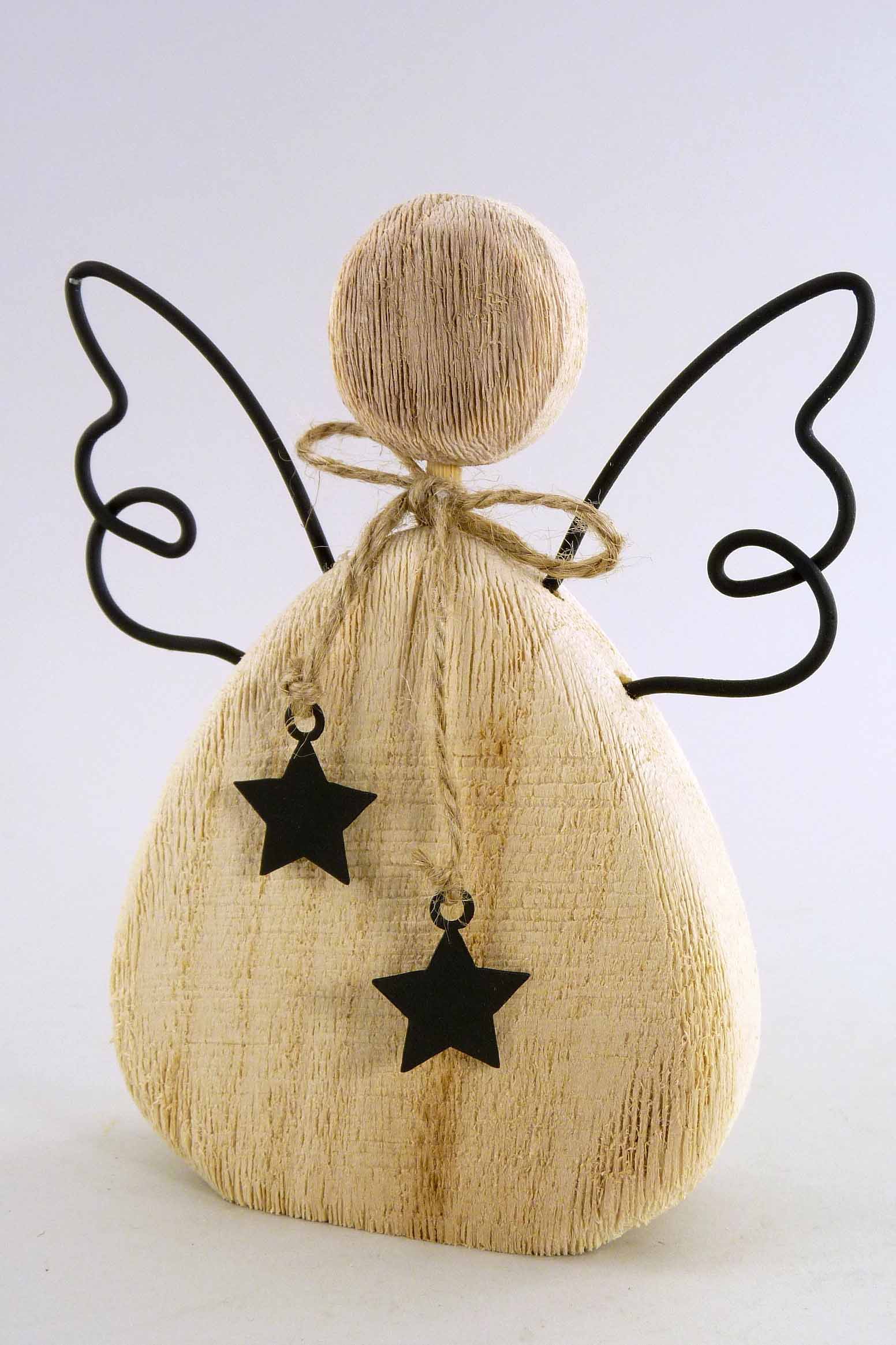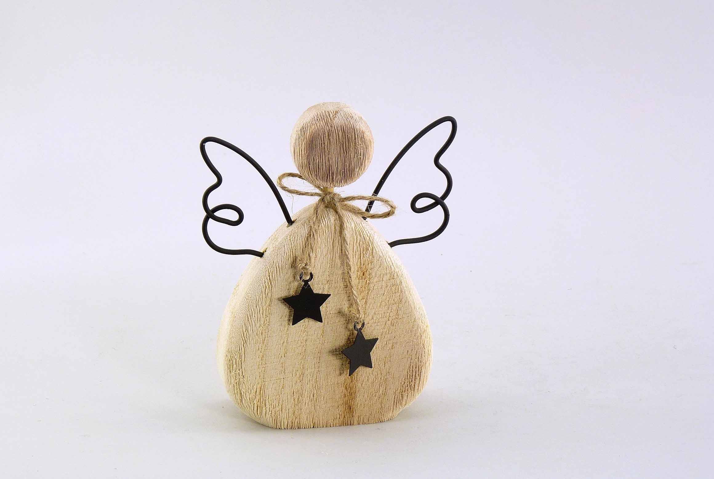 Holz/Metall-Engel natur-schwarz H14,5cm