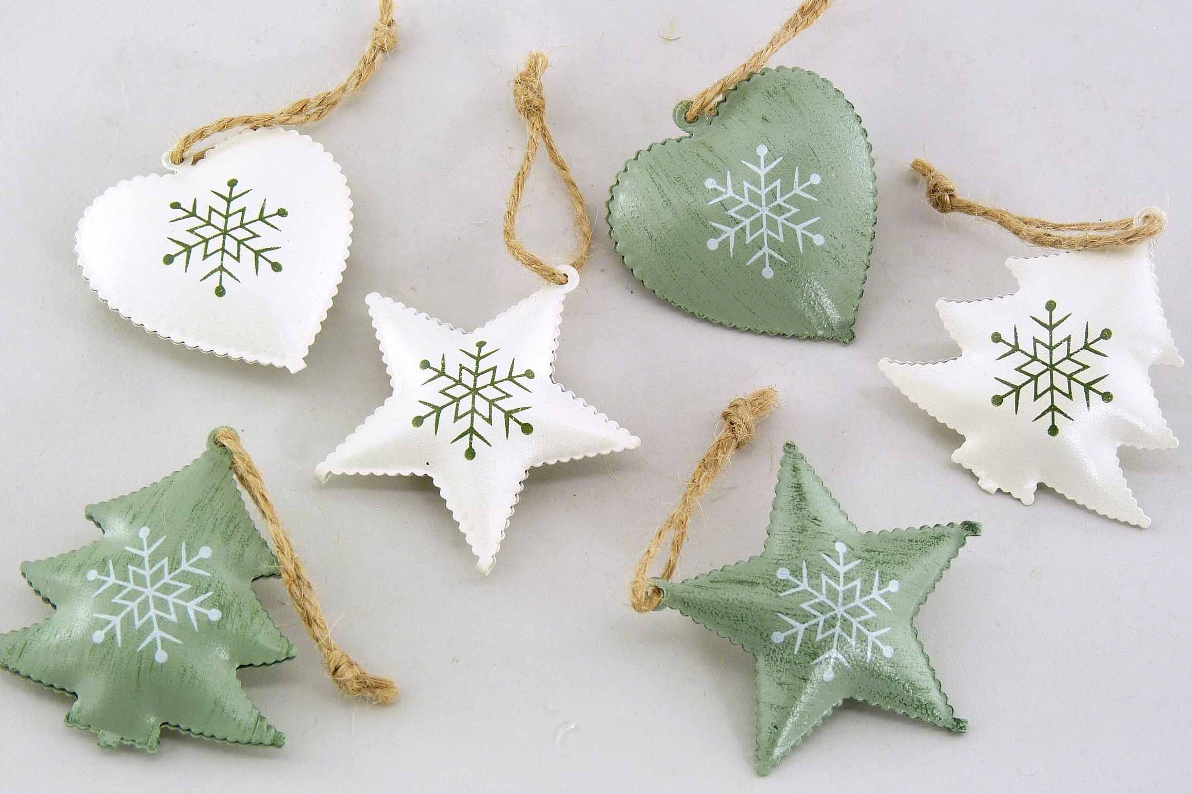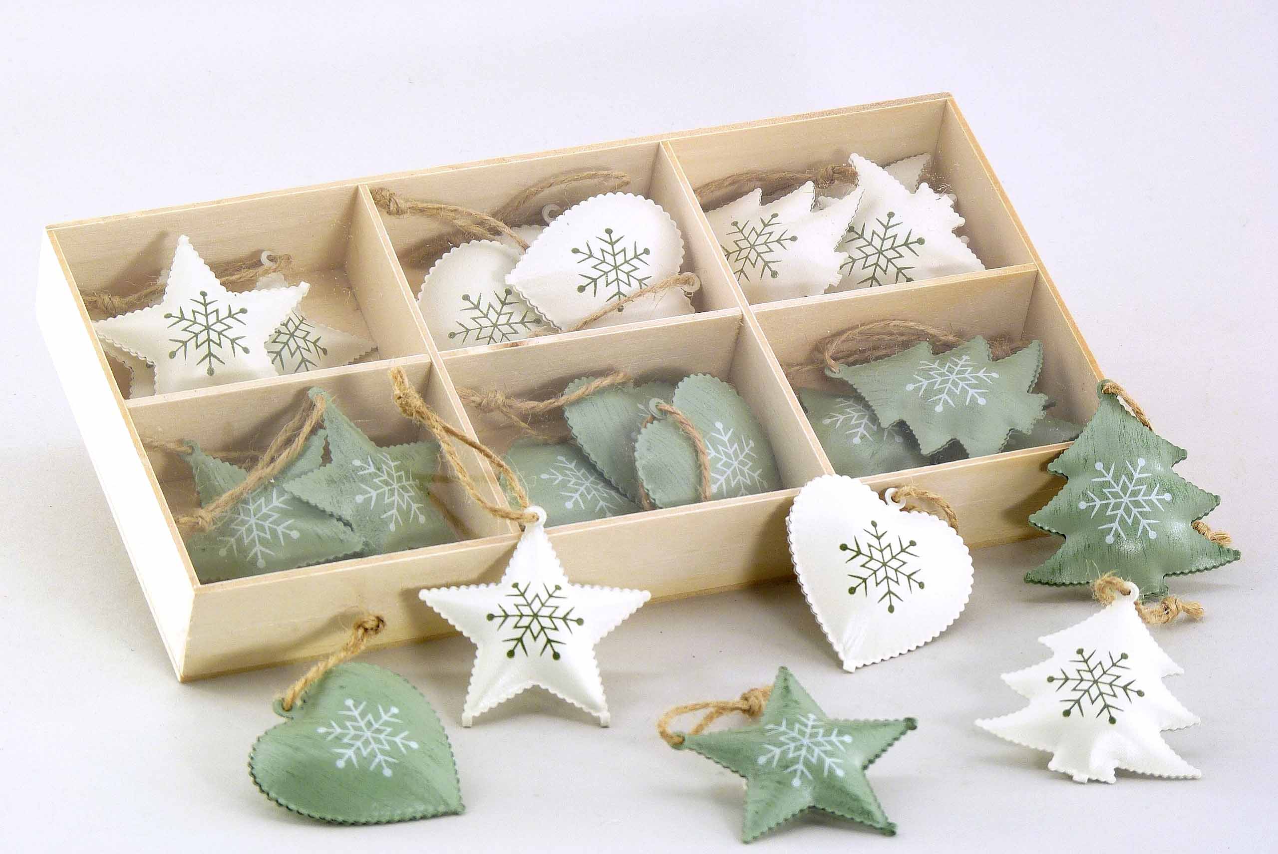 Metall-Stern/Herz/Baum Box/18 hgd. mint-creme-grün ø5cm