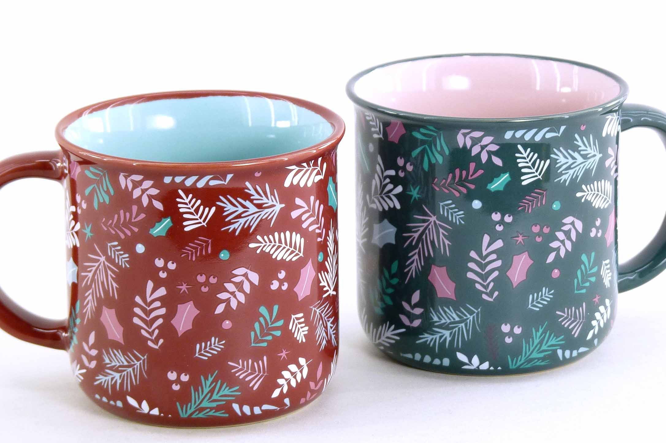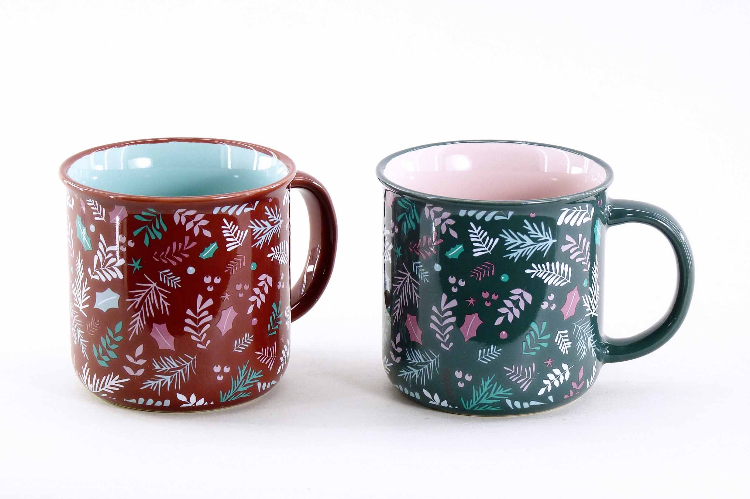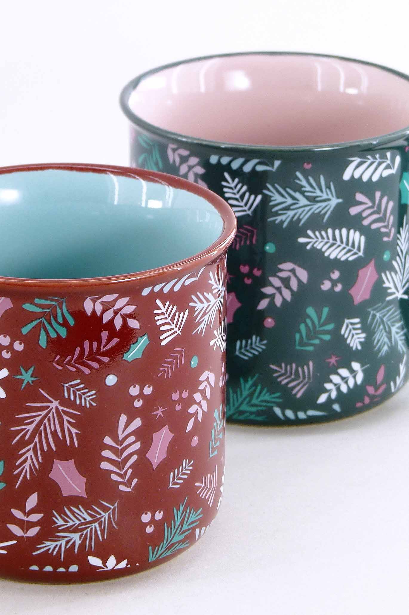 Steingut-Tasse ''Leafs'' grün-berry-mix sort. ø9 H8,5cm