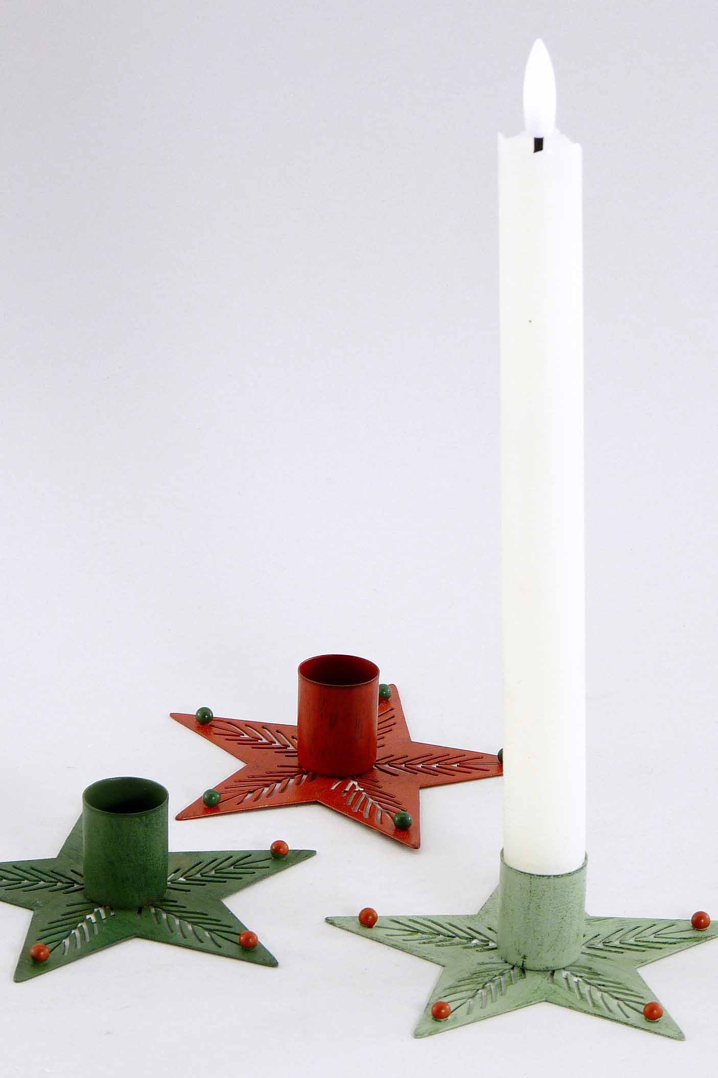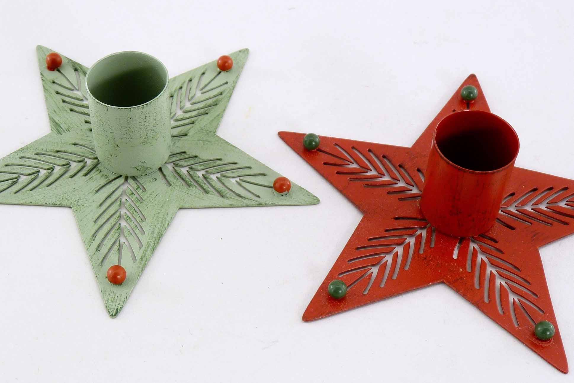 Metall-Stabkerzenhalter ''Stern'' rot/grün/mint sort. ø11 H3cm