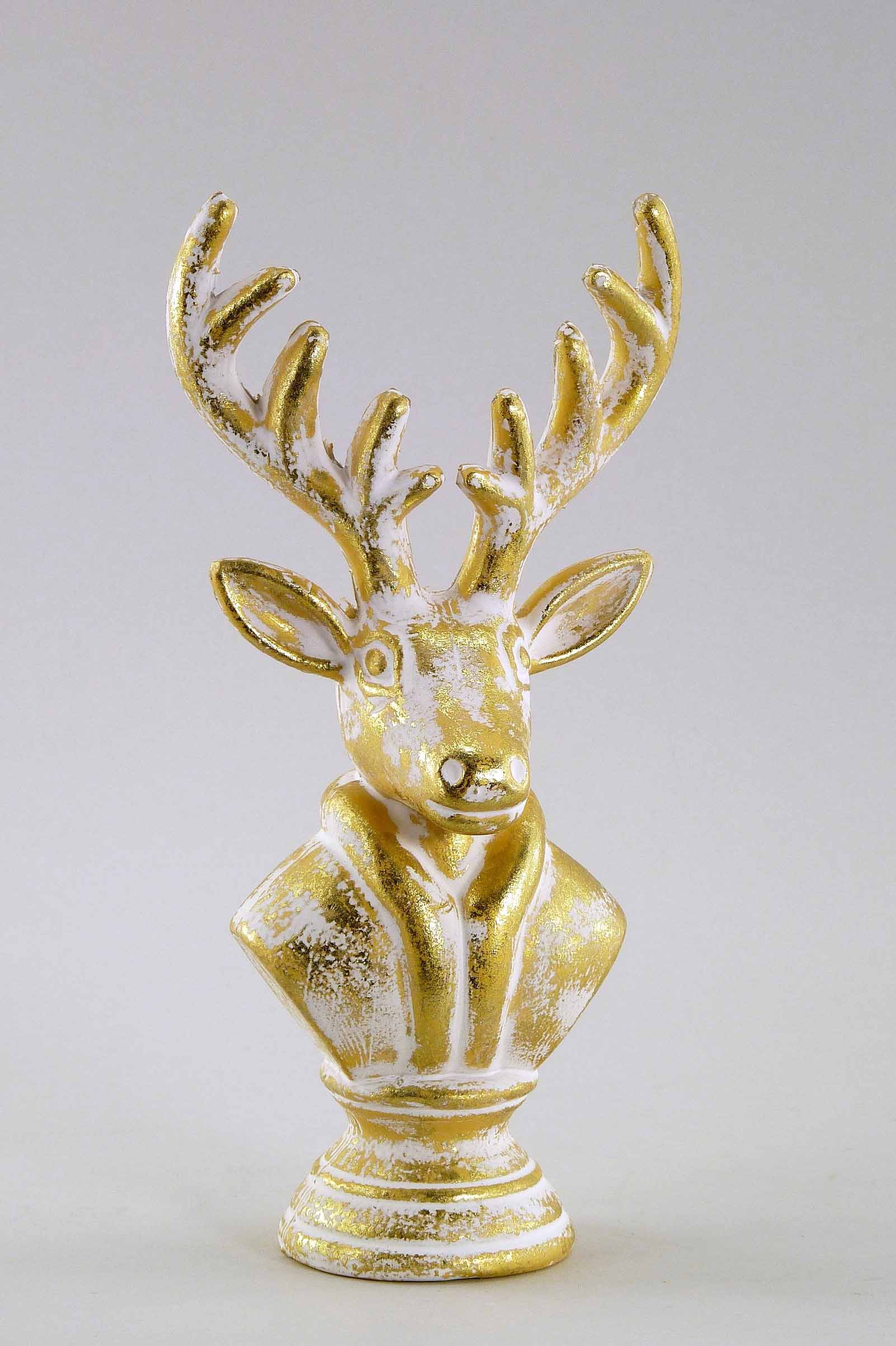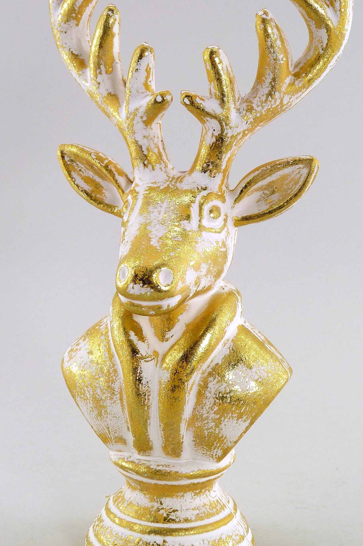 Kunststoff/Hirschkopf antik-weiß-gold H22 B10,5cm