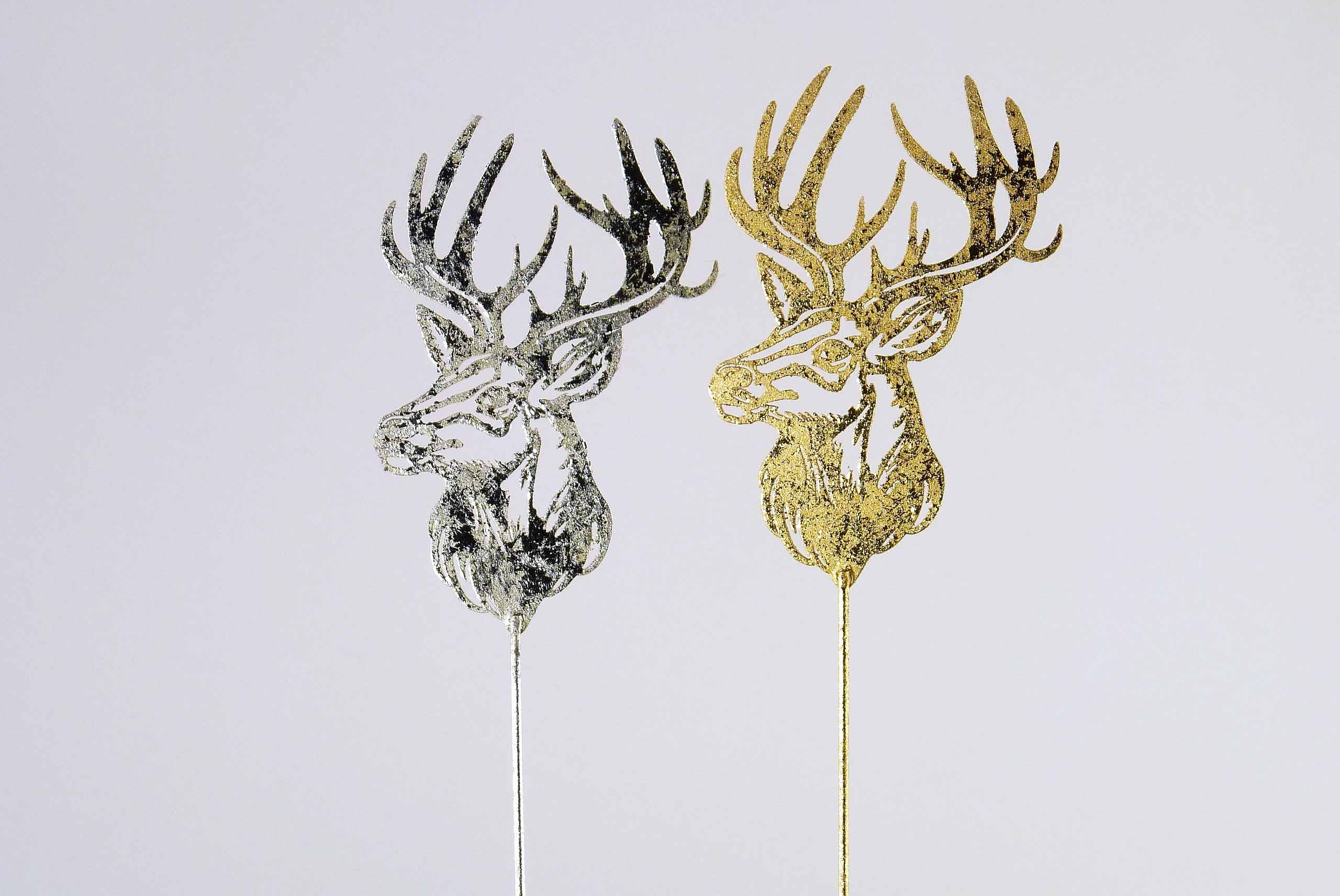 Metall-Hirschkopf +Stick gold/silber sort. H13 L43cm