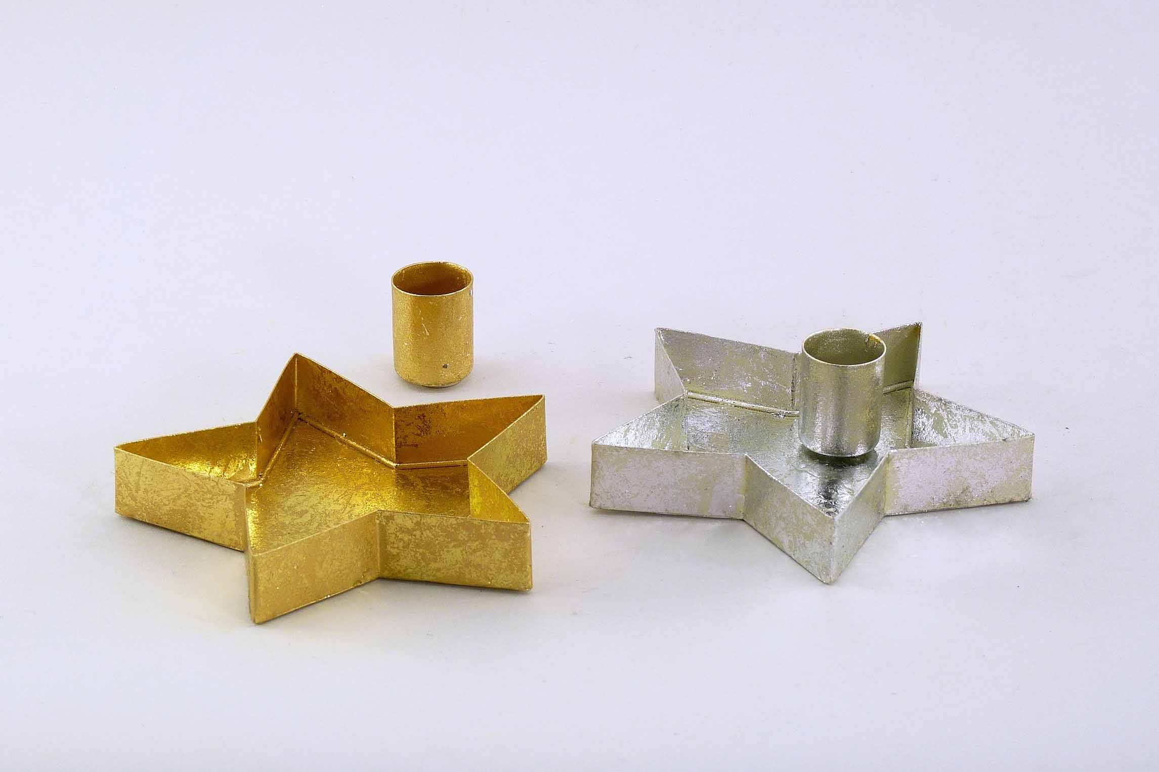 Metall/Magnet-Stabkerzenhalter ''Stern'' gold/silber sort. ø12 H3cm