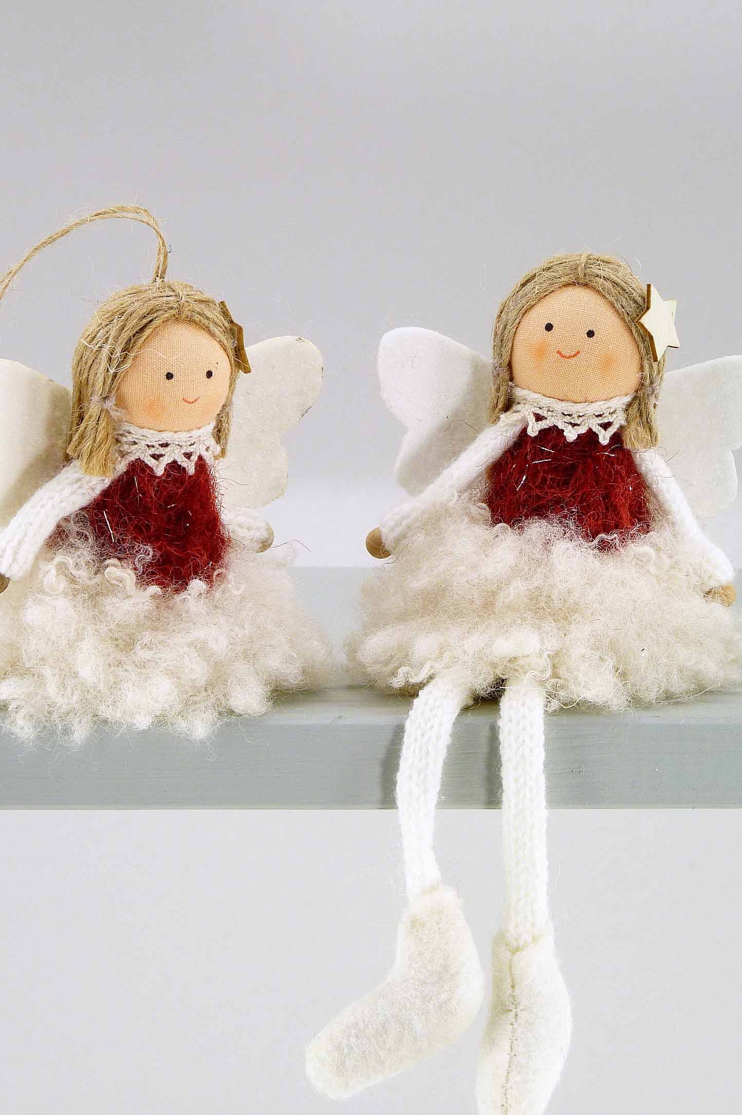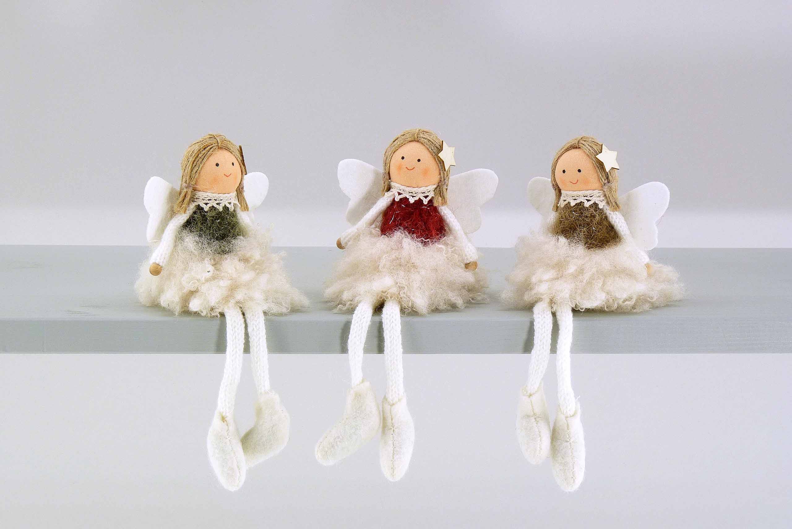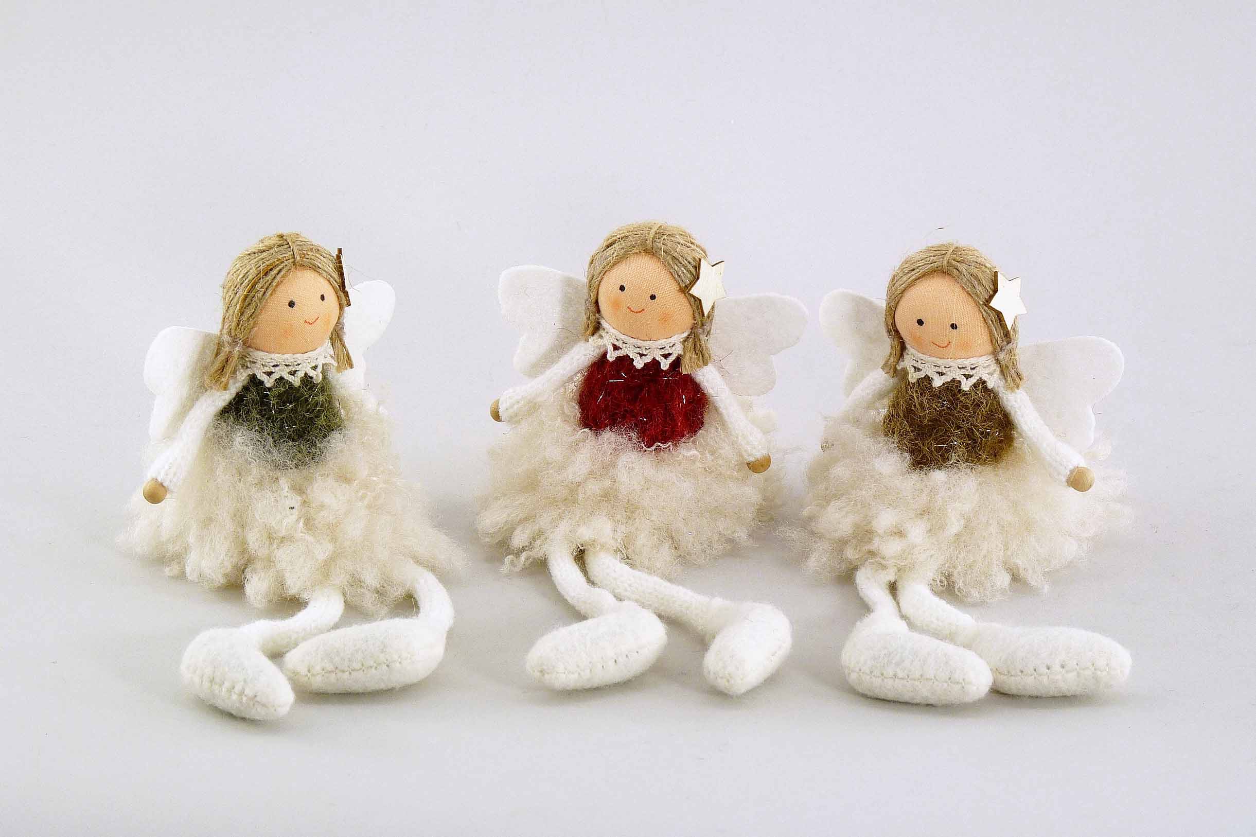 Stoff/Woll-Engel Kantenhocker rot/grün/braun-weiß sort. H8 L17cm