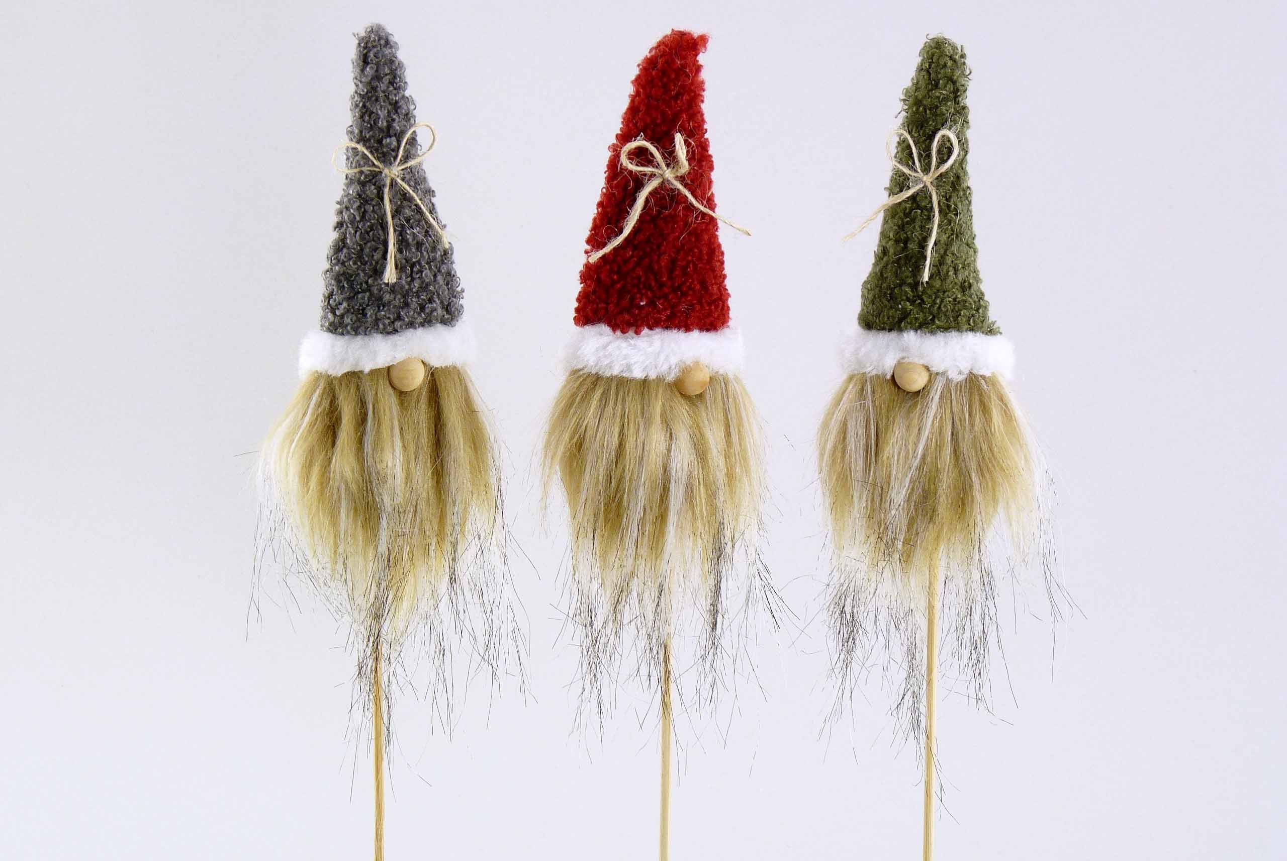 Stoff/Woll-Wichtel +Stick rot/grün/grau sort. H16 L28cm