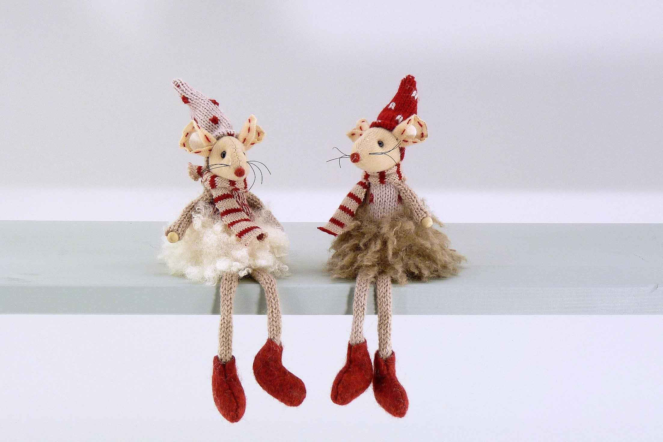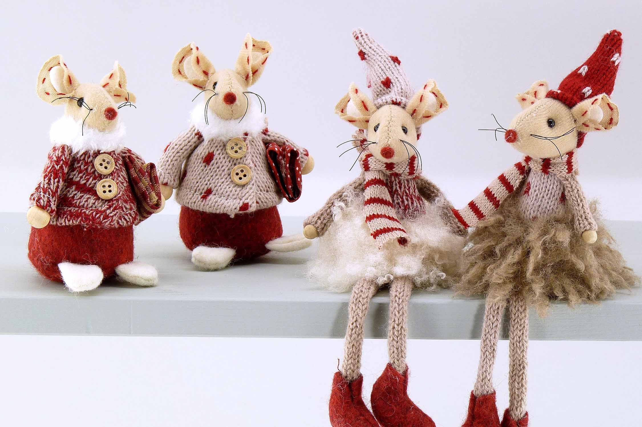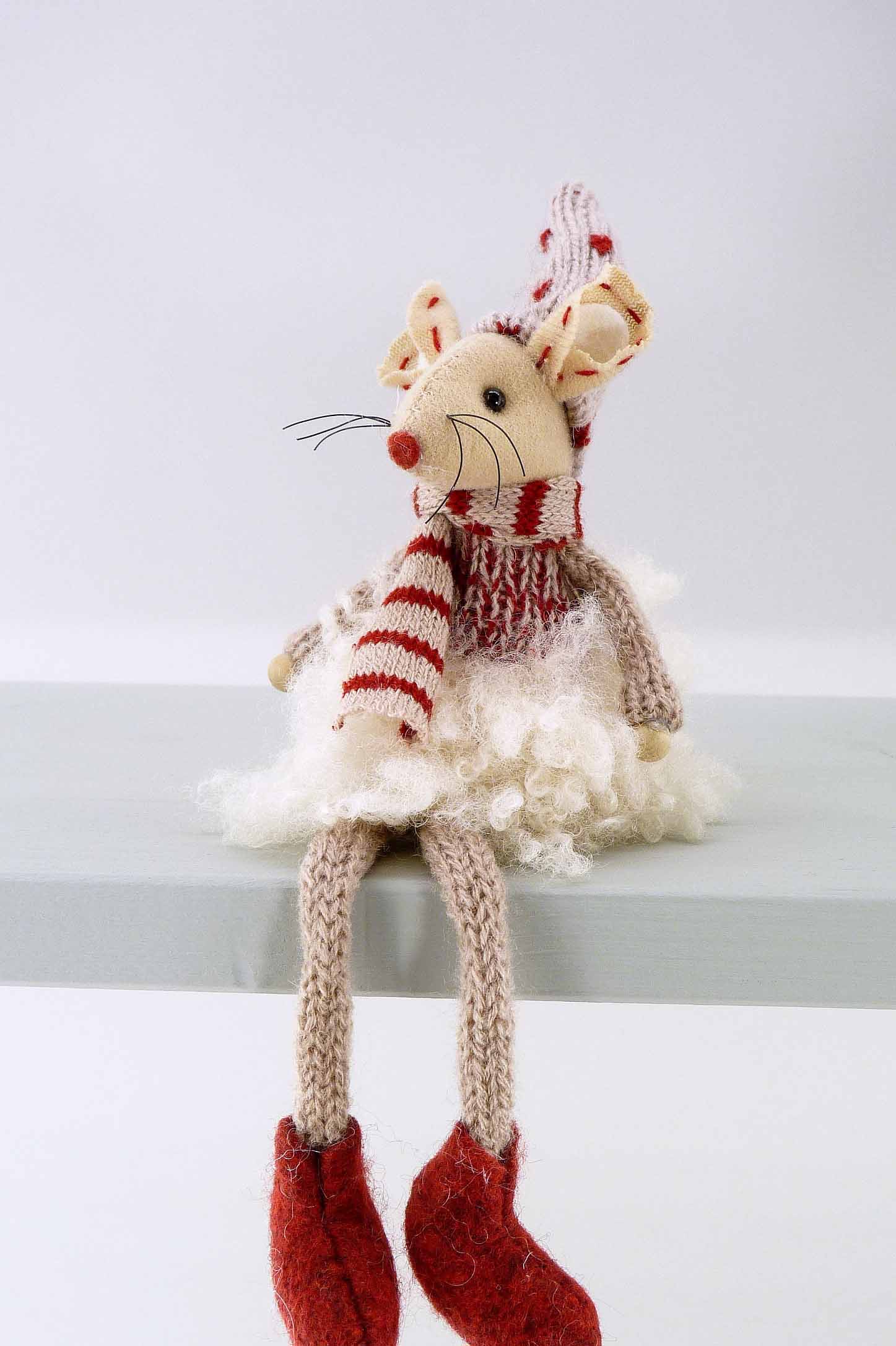 Stoff/Woll-Maus bordeaux-braun-creme sort. H10 L20cm