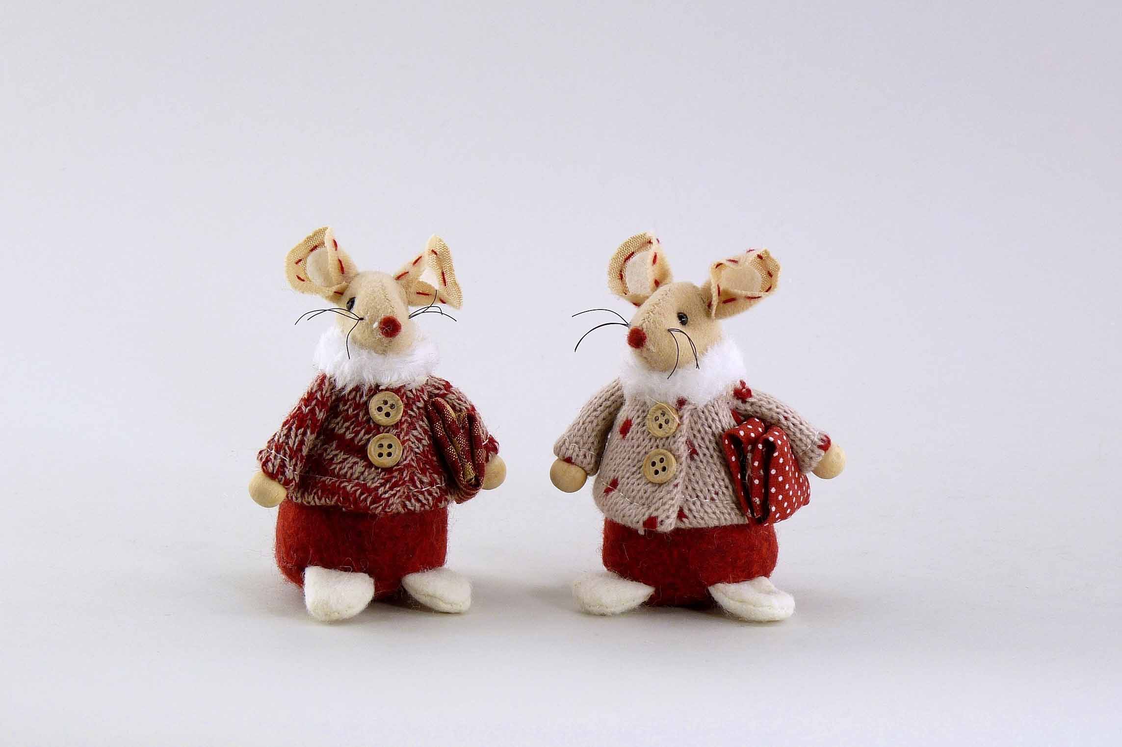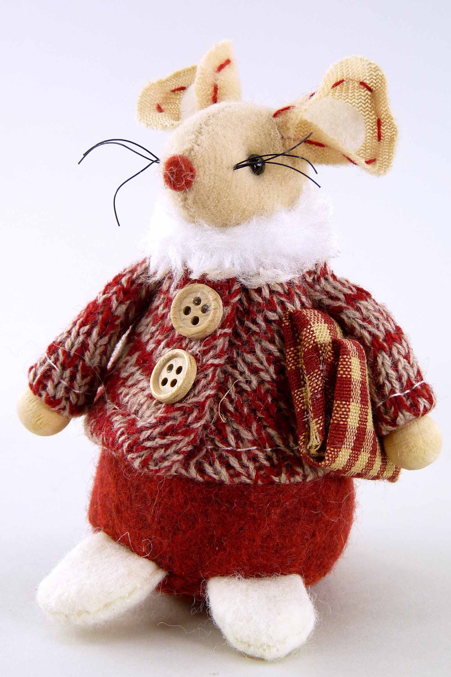 Stoff/Woll-Maus bordeaux-braun-creme sort. H9cm