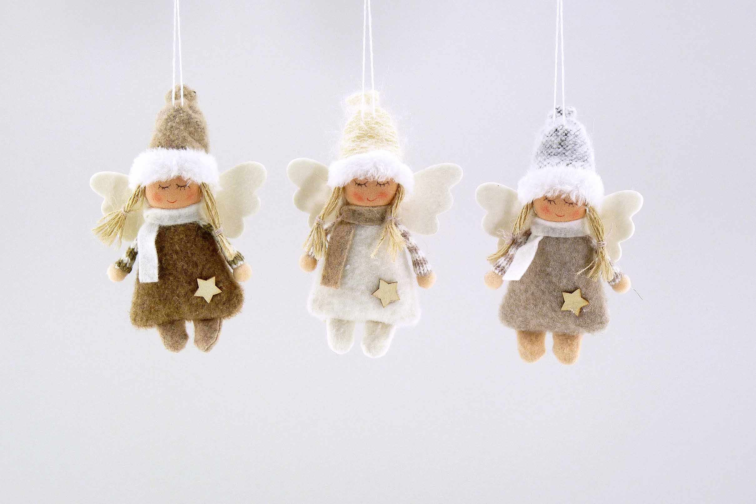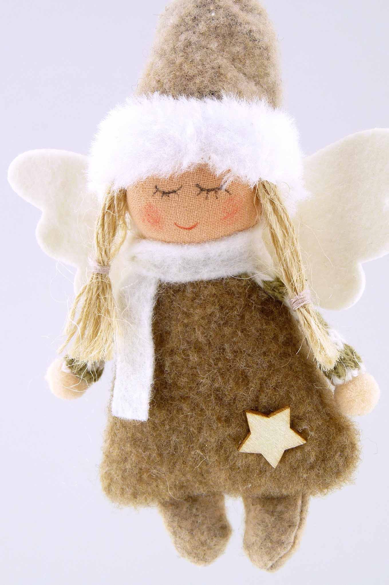 Filz/Stoff-Engel +Mütze hgd. grau/weiß/braun sort. H14cm