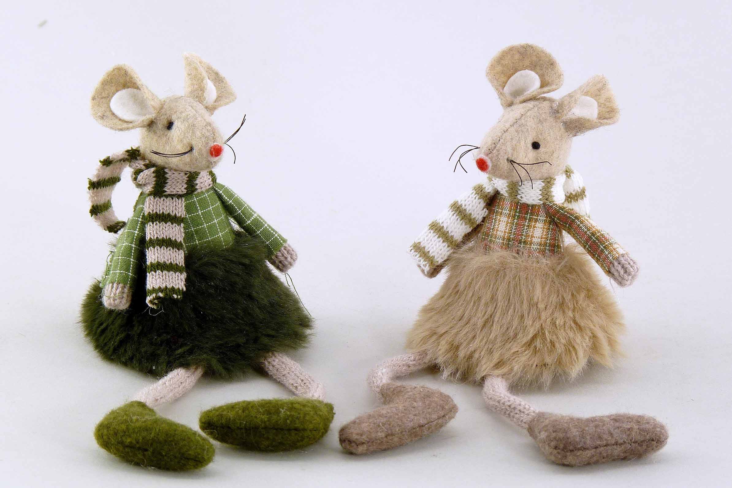 Stoff/Woll-Maus Kantenhocker grün/braun-creme sort. H9 L16cm