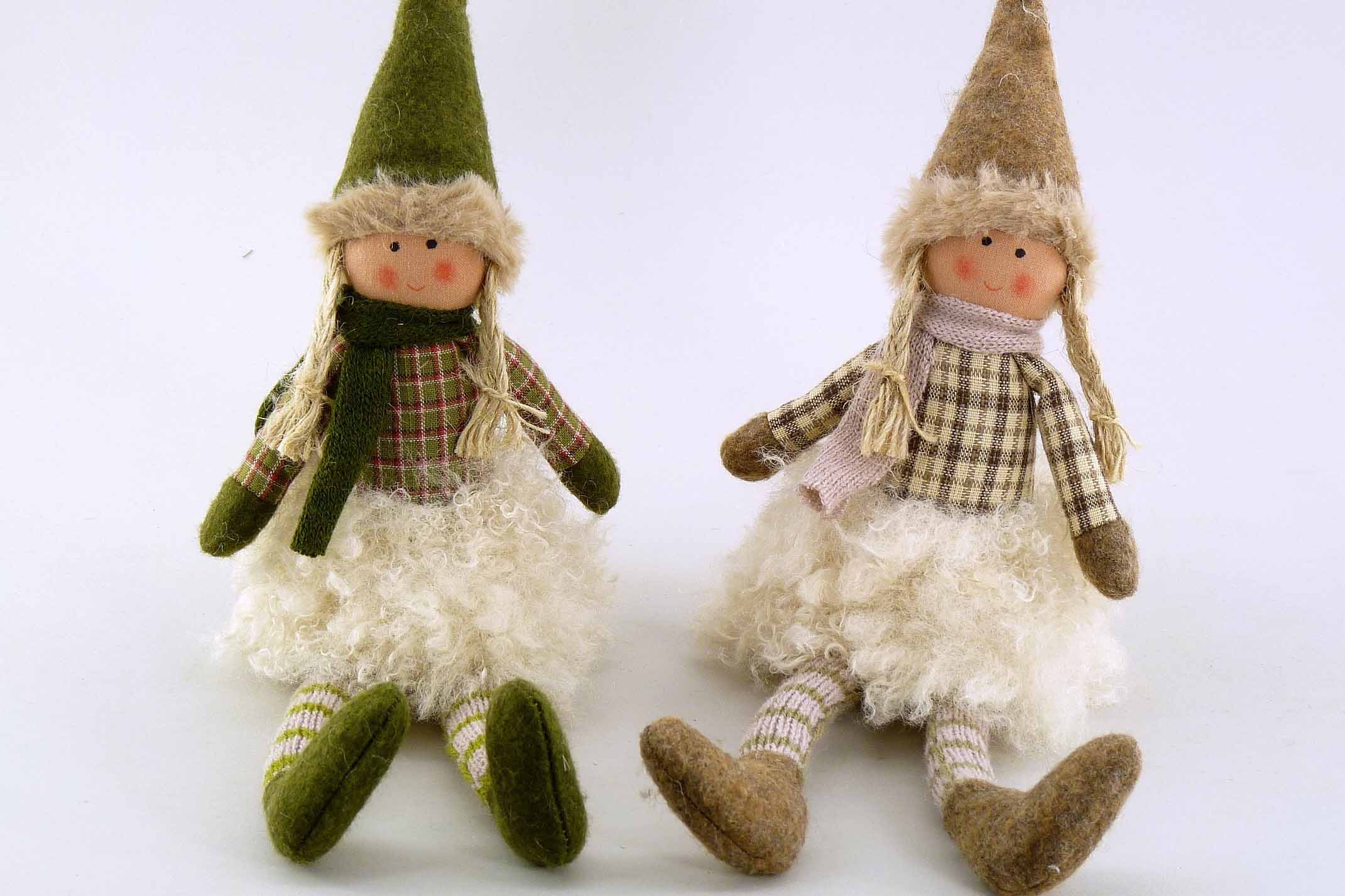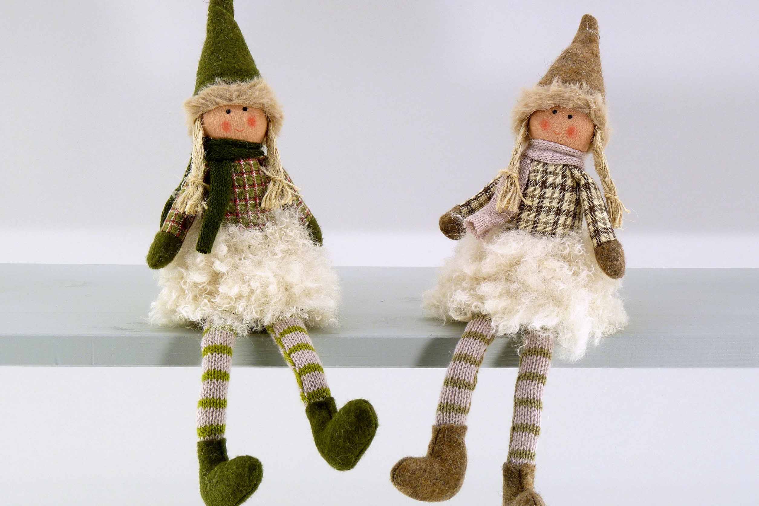 Stoff/Woll-Mädchen Kantenhocker grün/braun sort. H16 L30cm