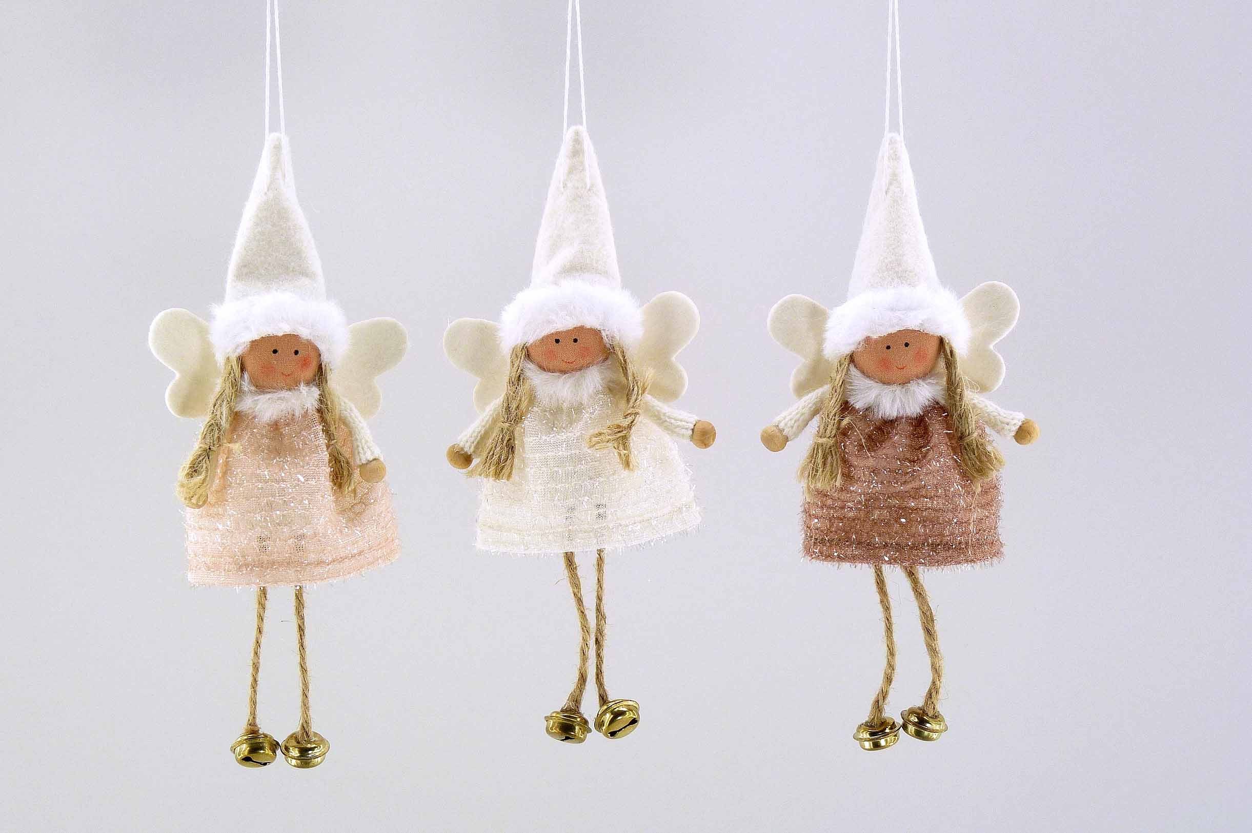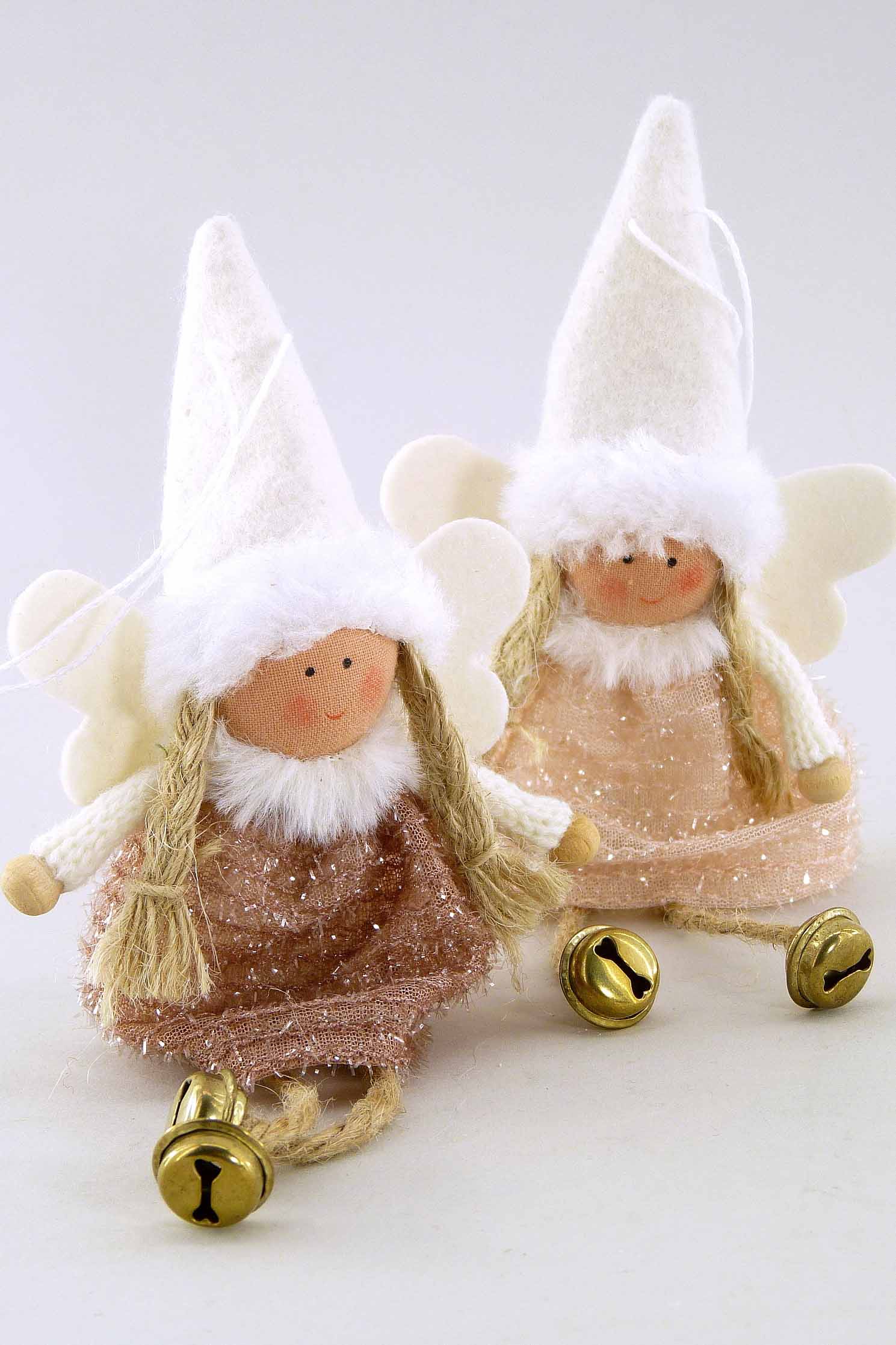 Stoff/Woll-Engel hgd. altrosa/rosa/weiß sort. H18cm