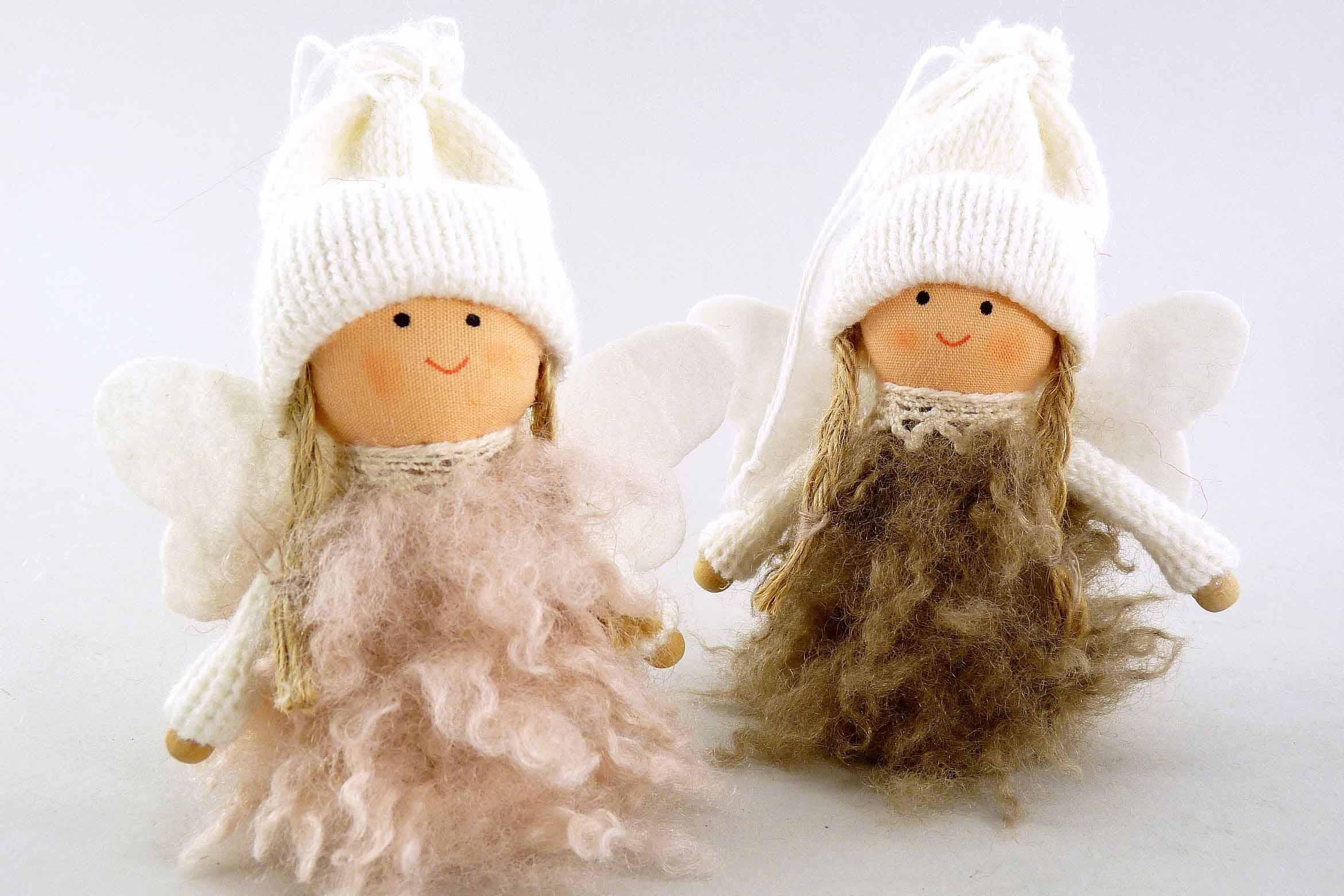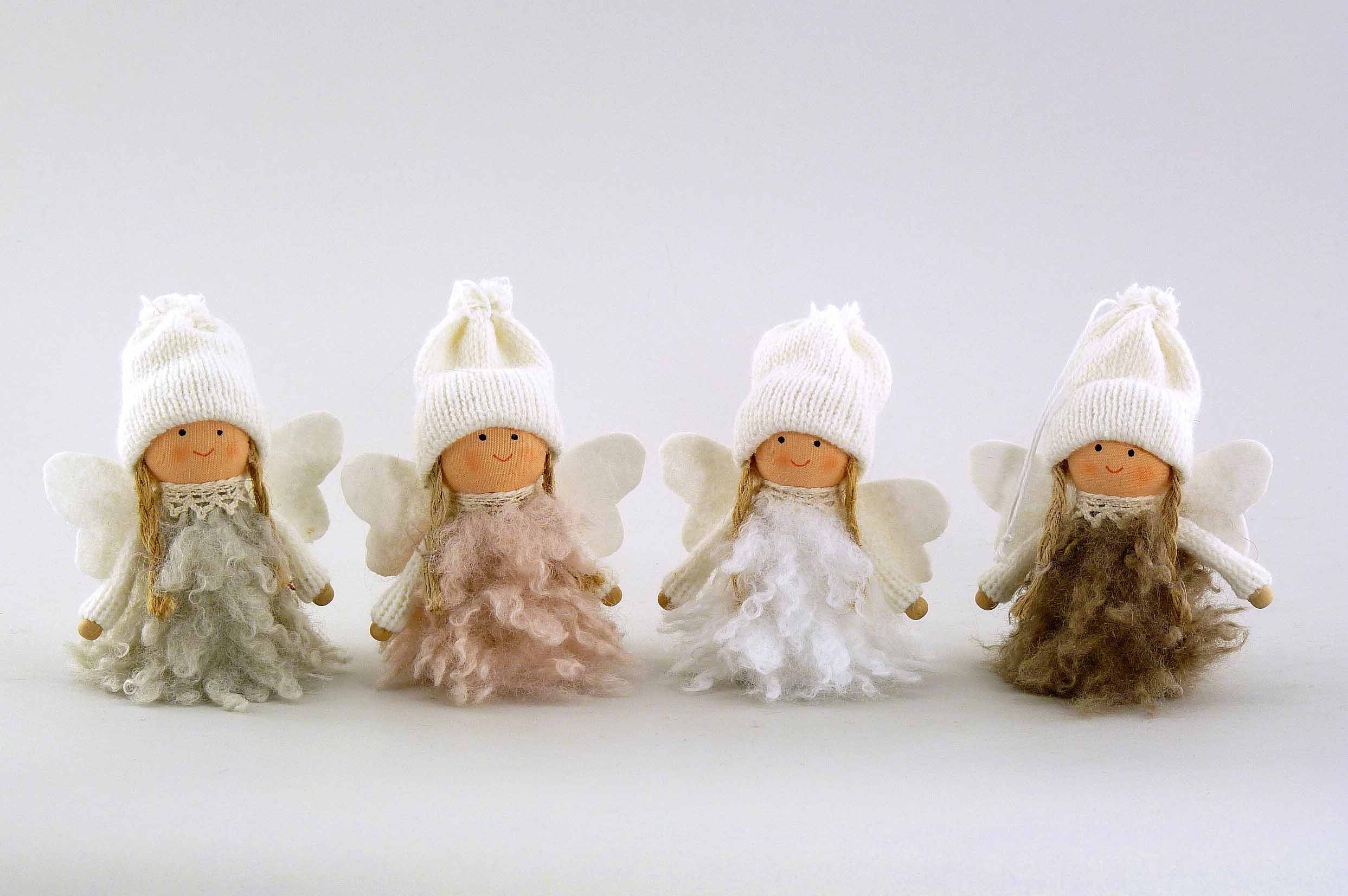 Stoff/Woll-Engel hgd. grau/weiß/braun/rosa sort. H10cm