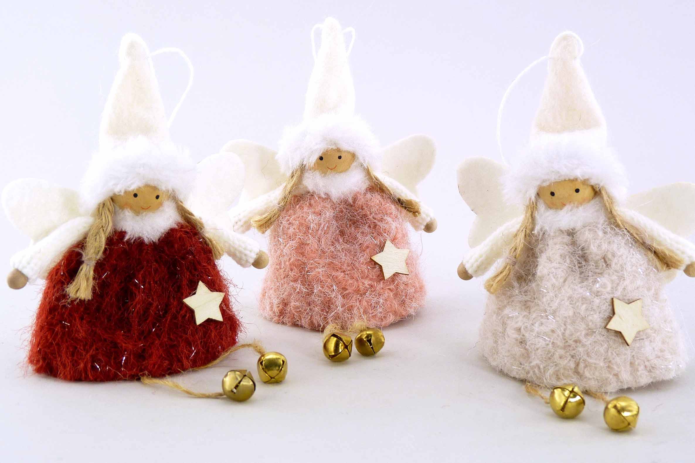 Stoff/Woll-Engel hgd. bordeaux/rosa/creme sort. H15cm
