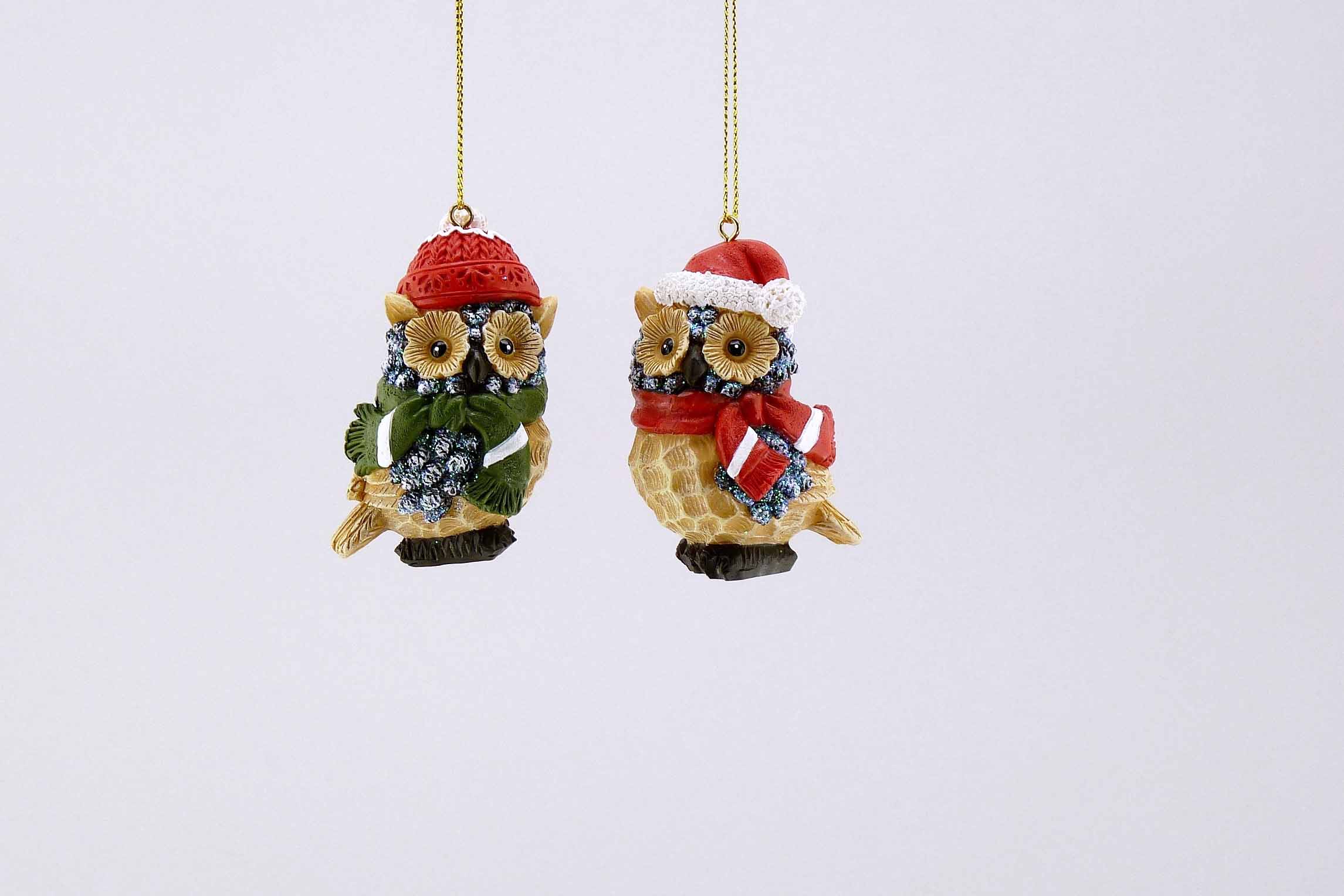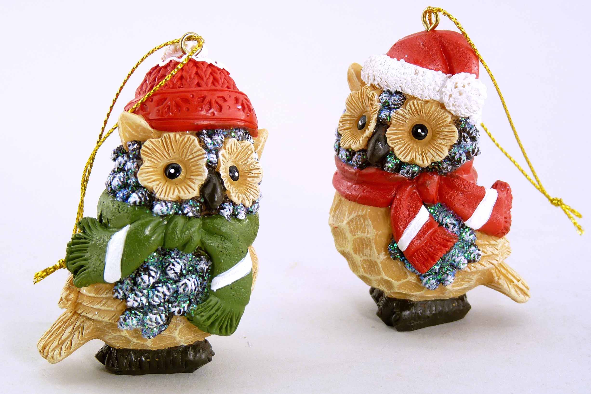 Poly-Eule ''Zapfen-Look'' hgd. rot-grün-braun sort. H7cm