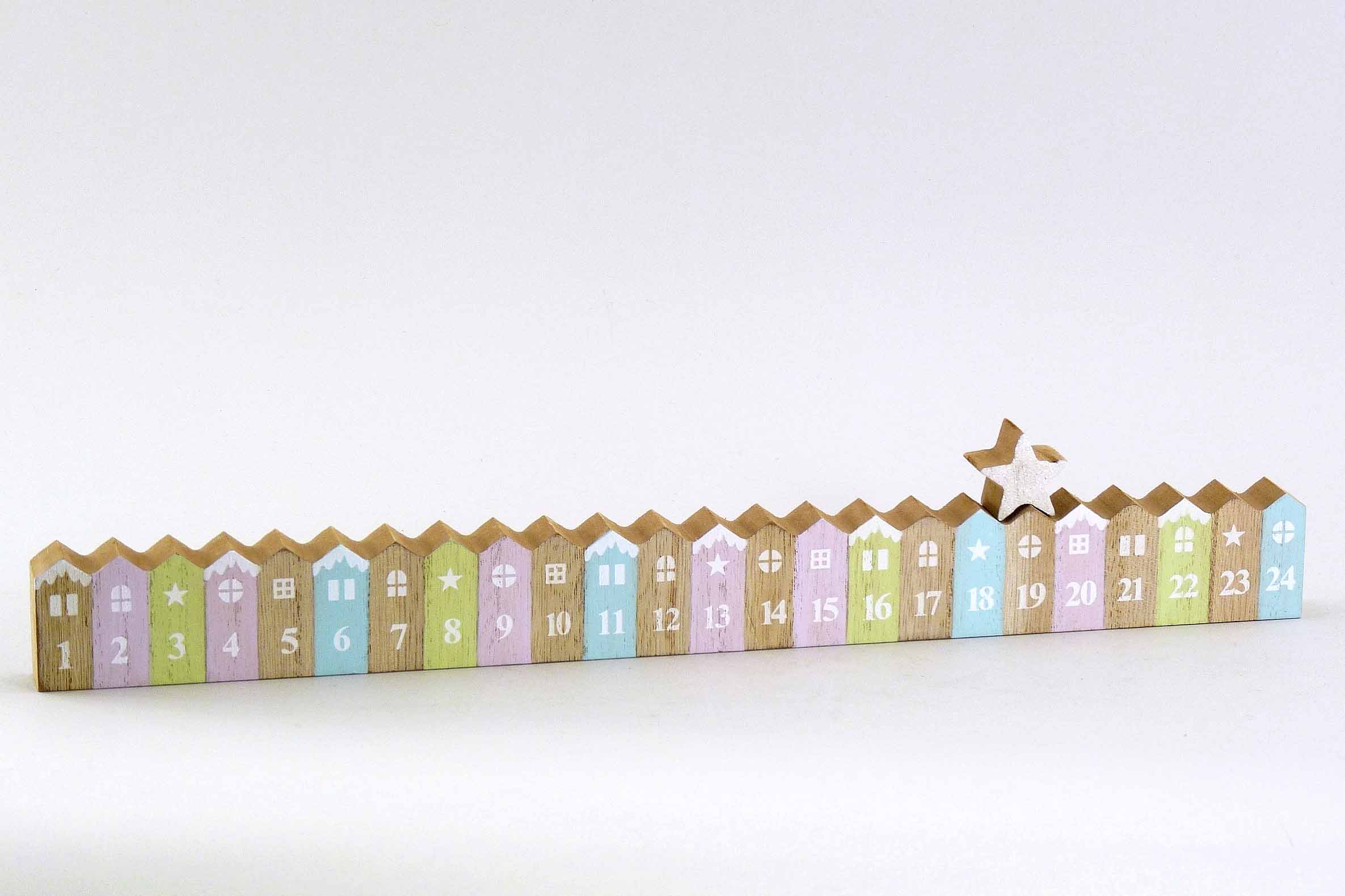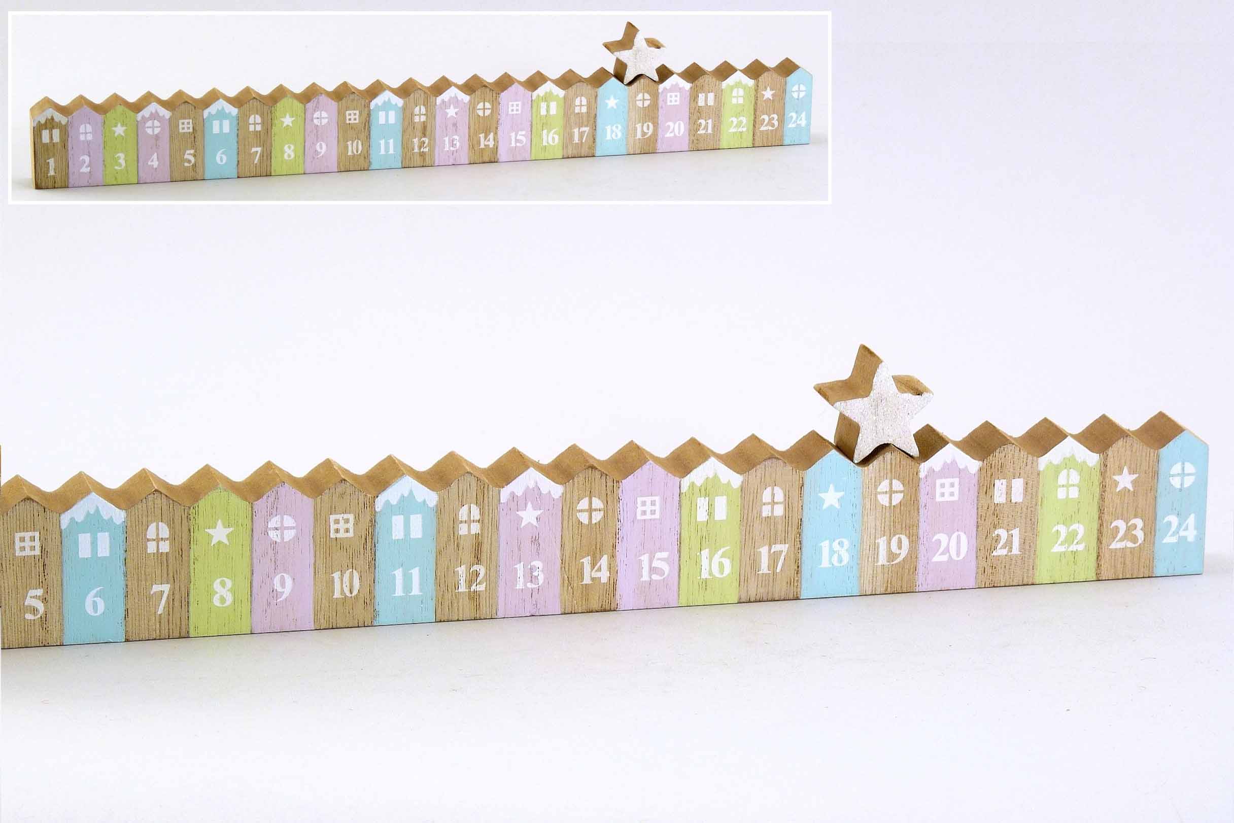 Holz-Adventkalender ''Xmas Candy'' natur-pastell-mix H6 B38cm