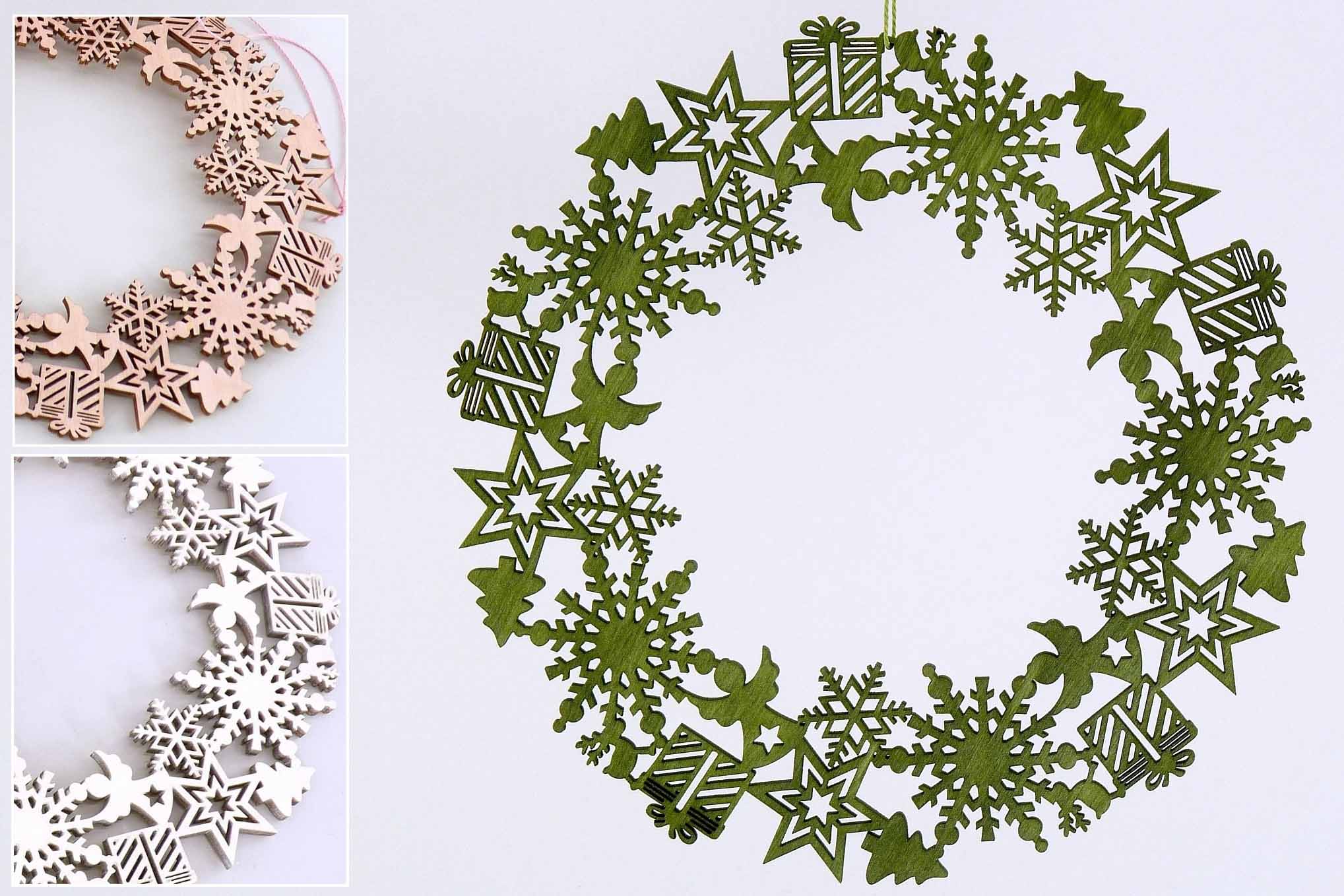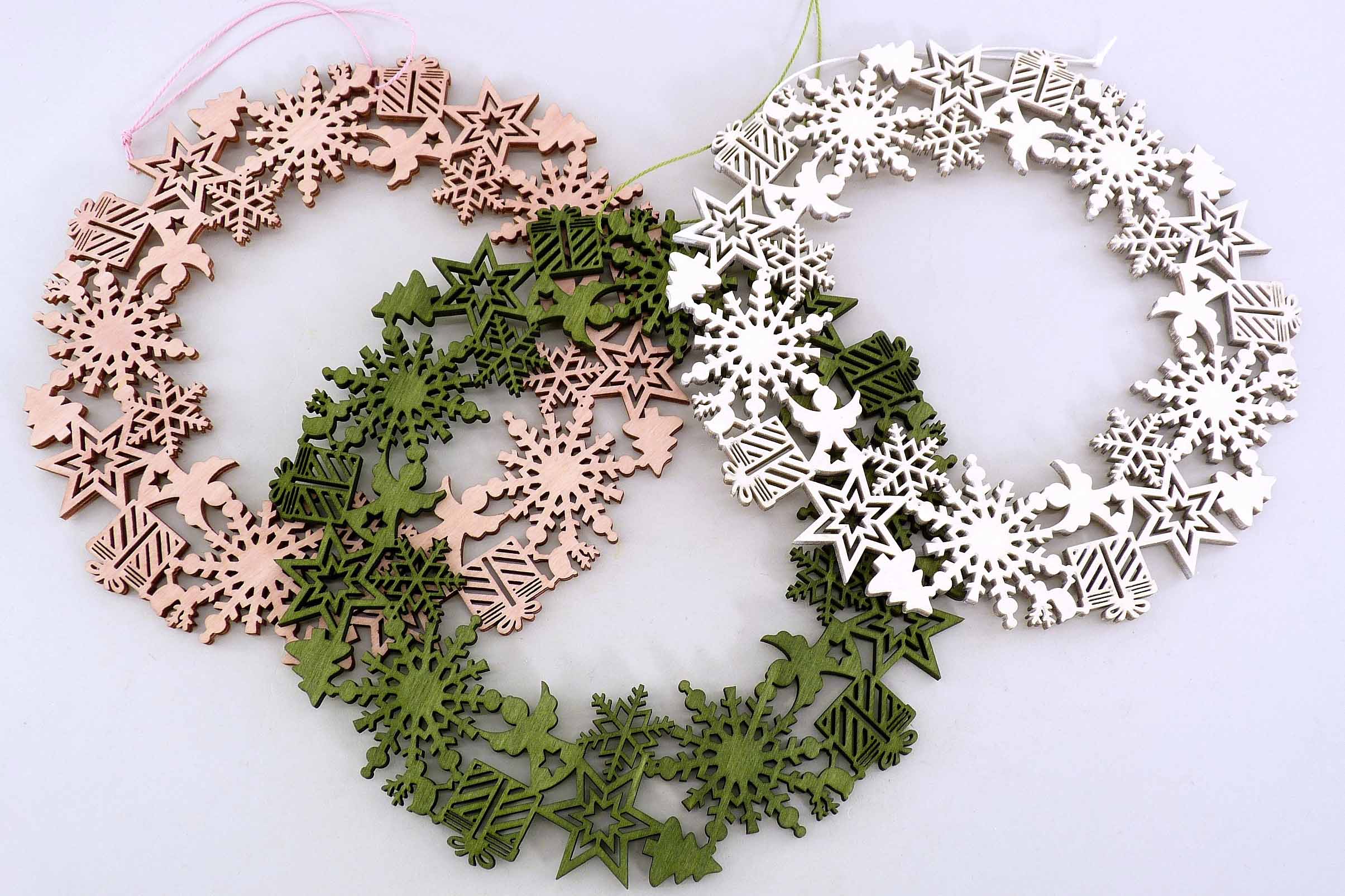 Holz-Kranz ''Weihnachtsmotiv-Mix'' hgd. rosa/weiß/grün sort. ø20cm