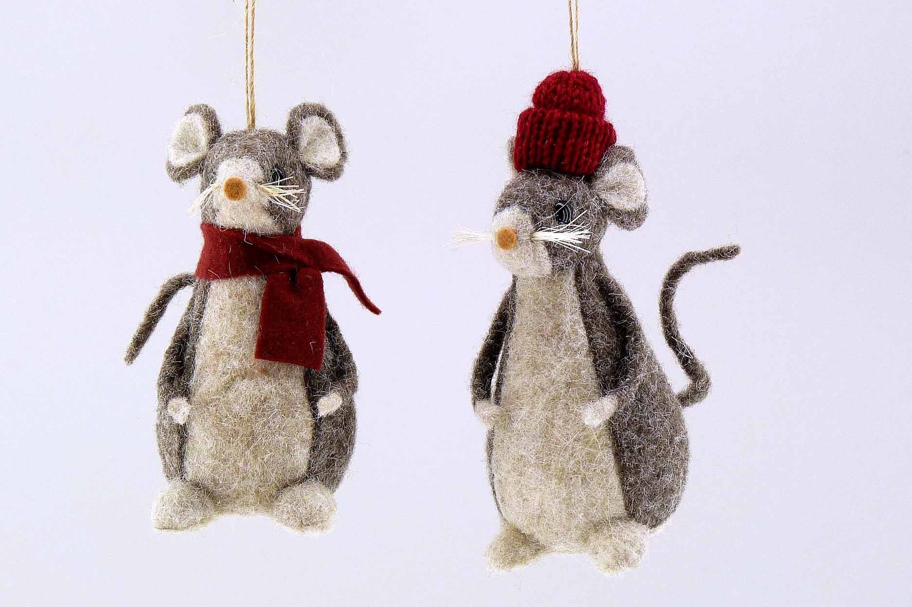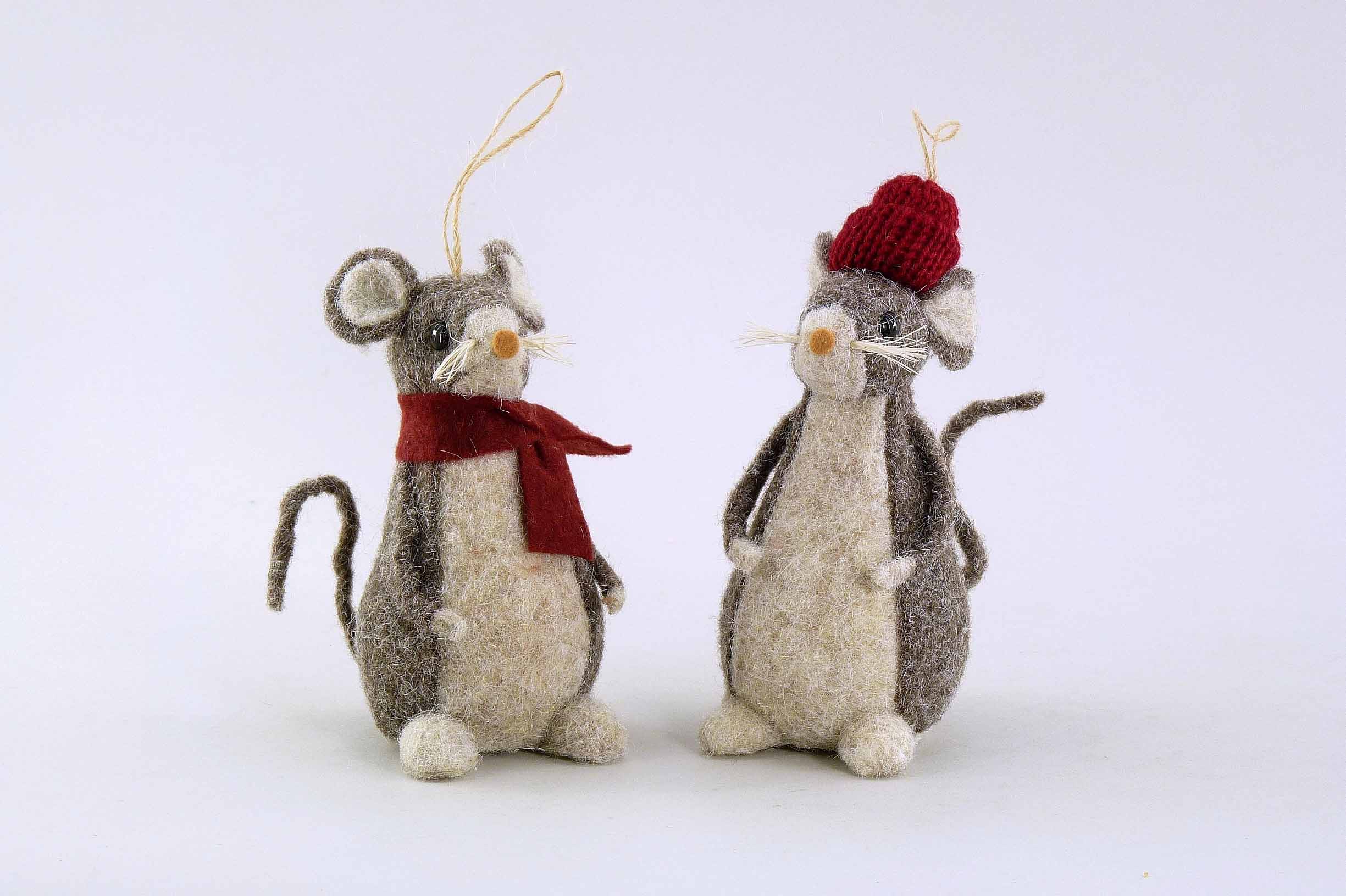 Filz-Maus ''Winter-Look'' hgd. creme-braun-bordeaux sort. H12cm