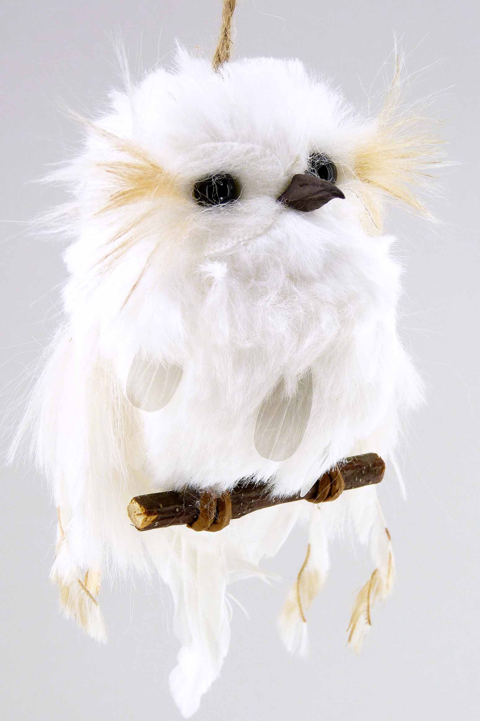 Stoff-Schneeeule auf Ast hgd. weiß H12cm