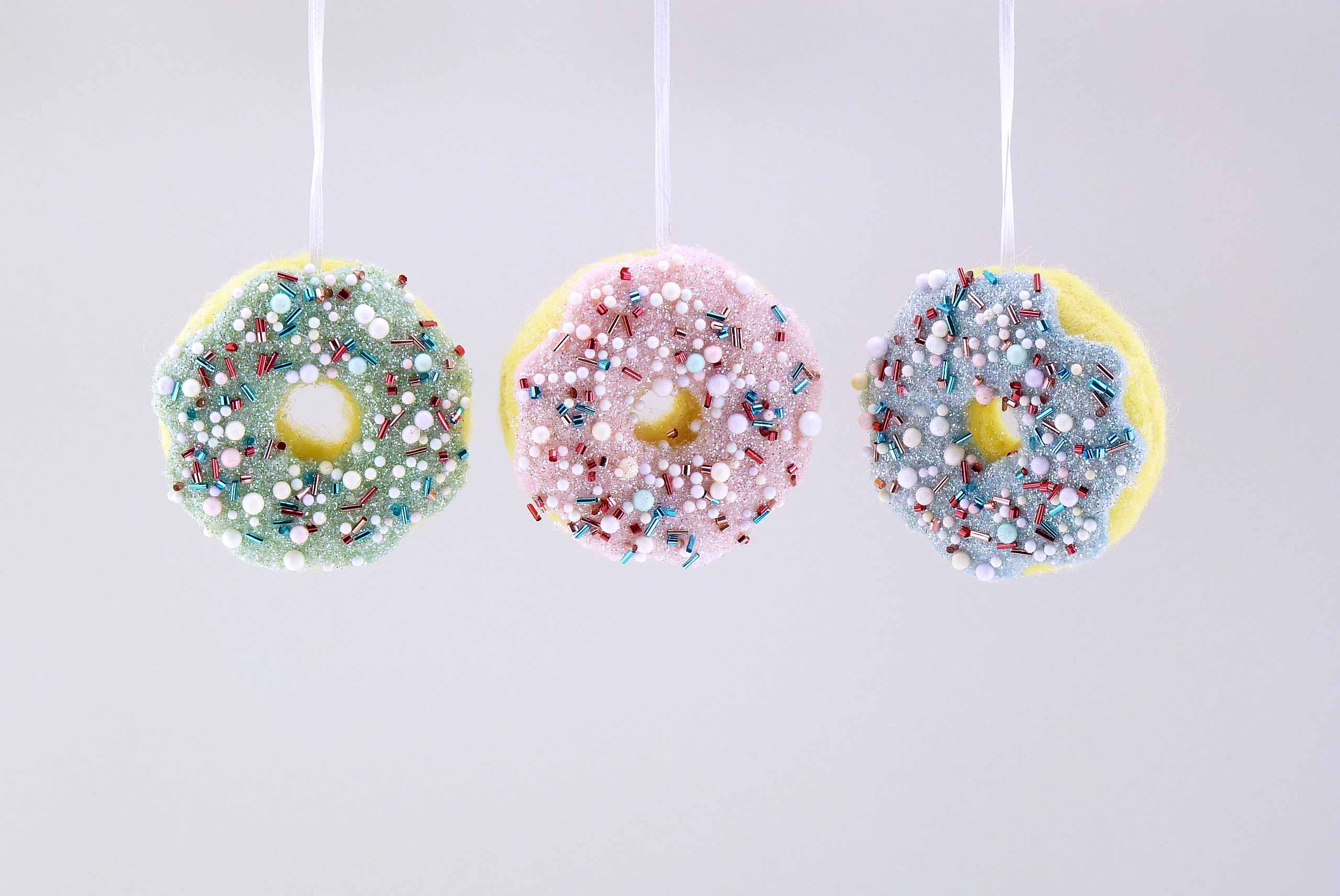 Filz-Donut ''Xmas Candy'' hgd. pastell-bunt sort. ø8,5 H3,5cm