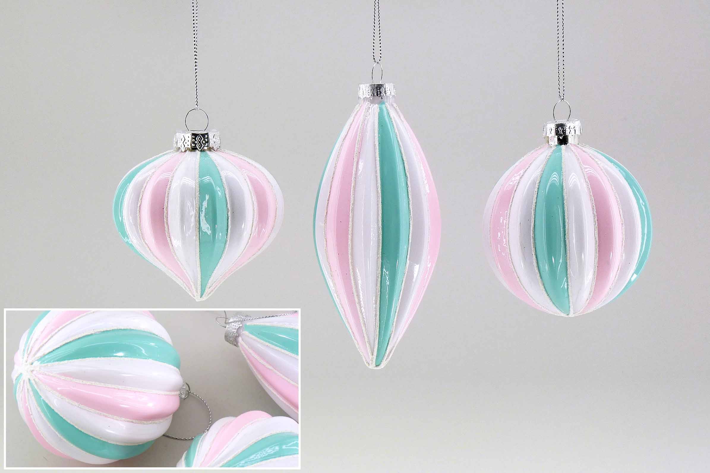 Glas-Ornament ''Candy Balloons'' hgd. mint-weiß-rosa sort. ø5-7,5 H8-13cm
