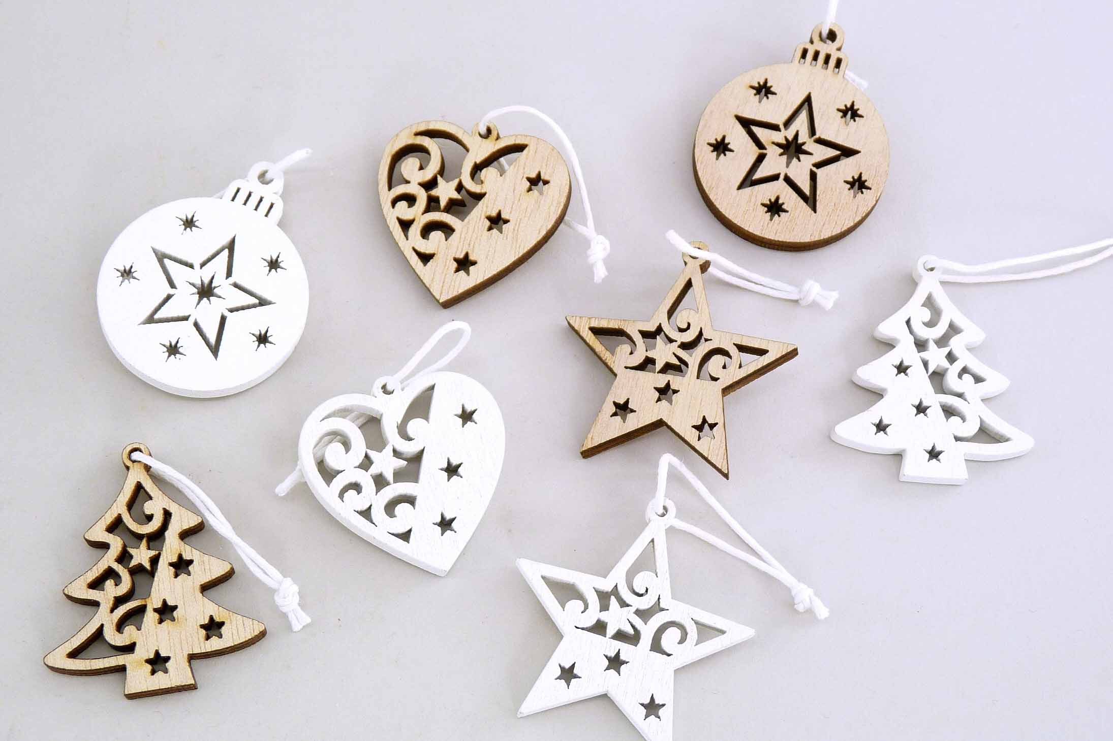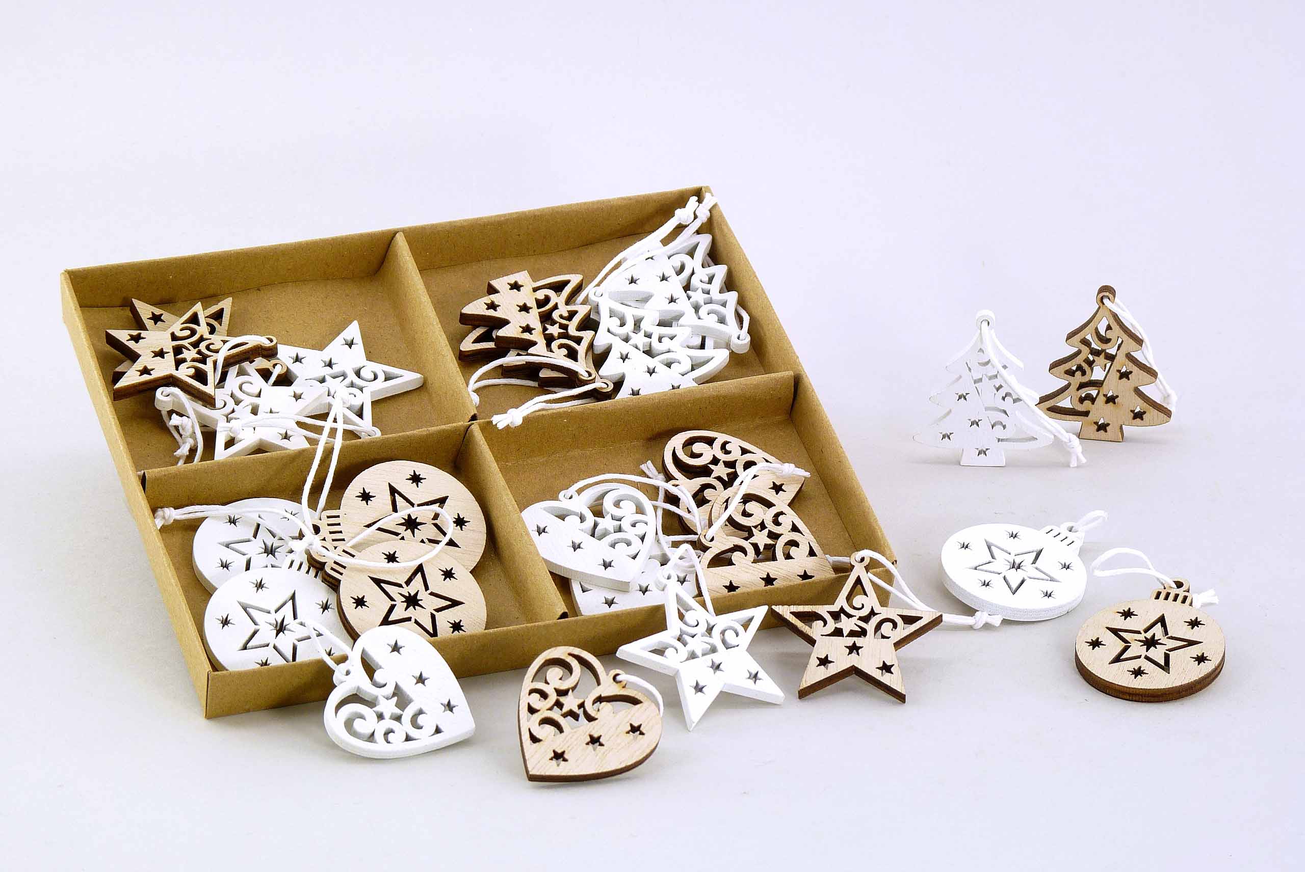 Holz-Weihnachtsanhänger Box/24 natur-weiß ø/H3,5cm