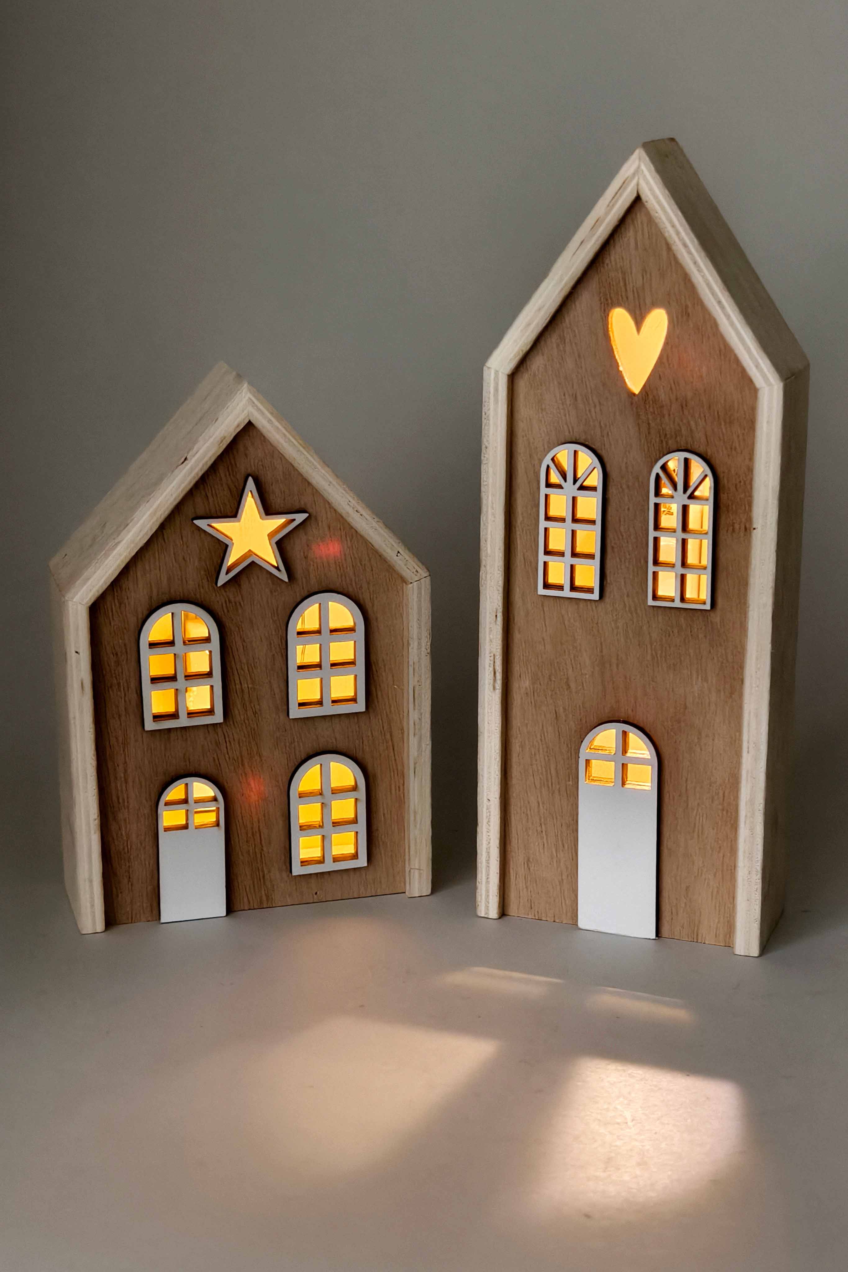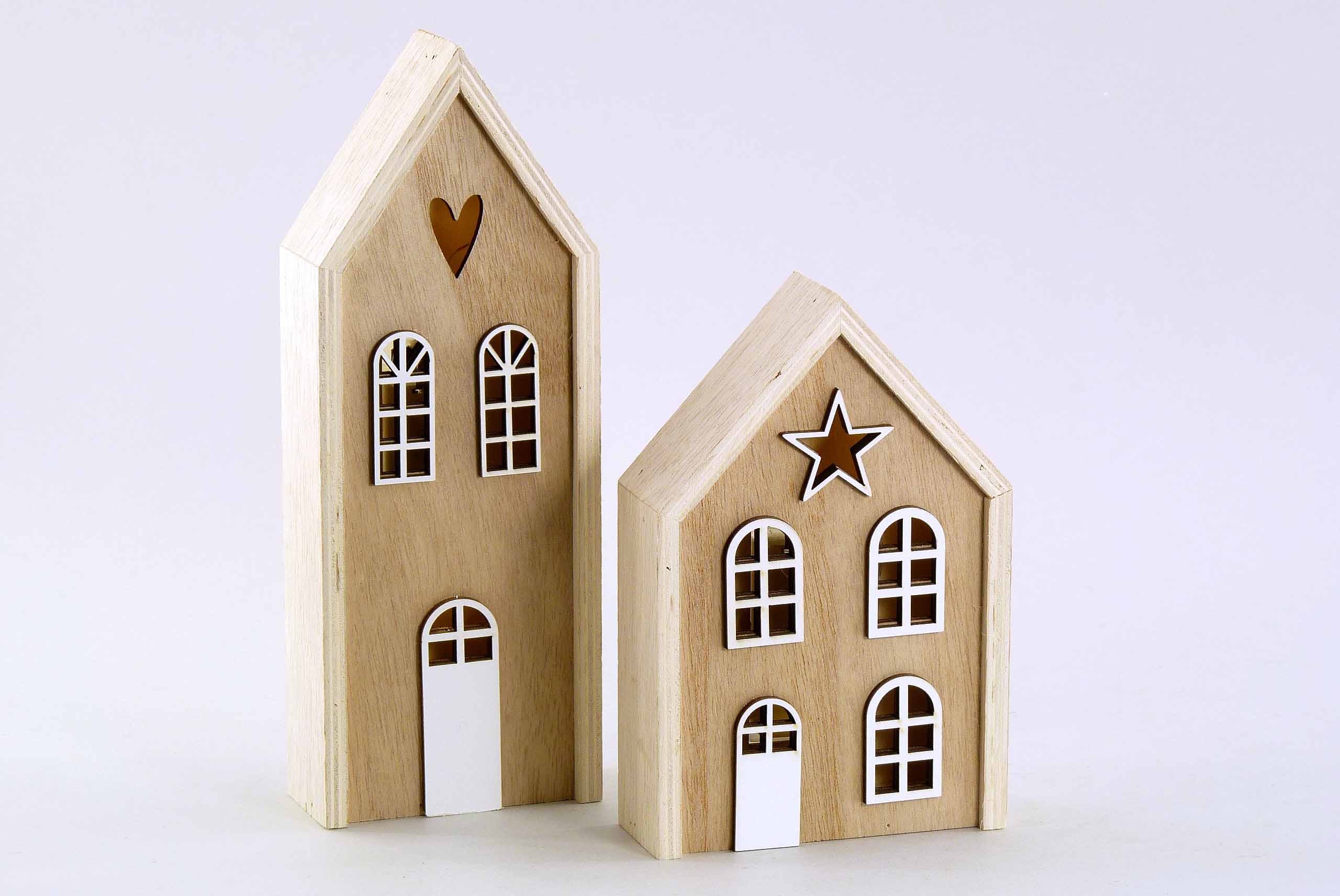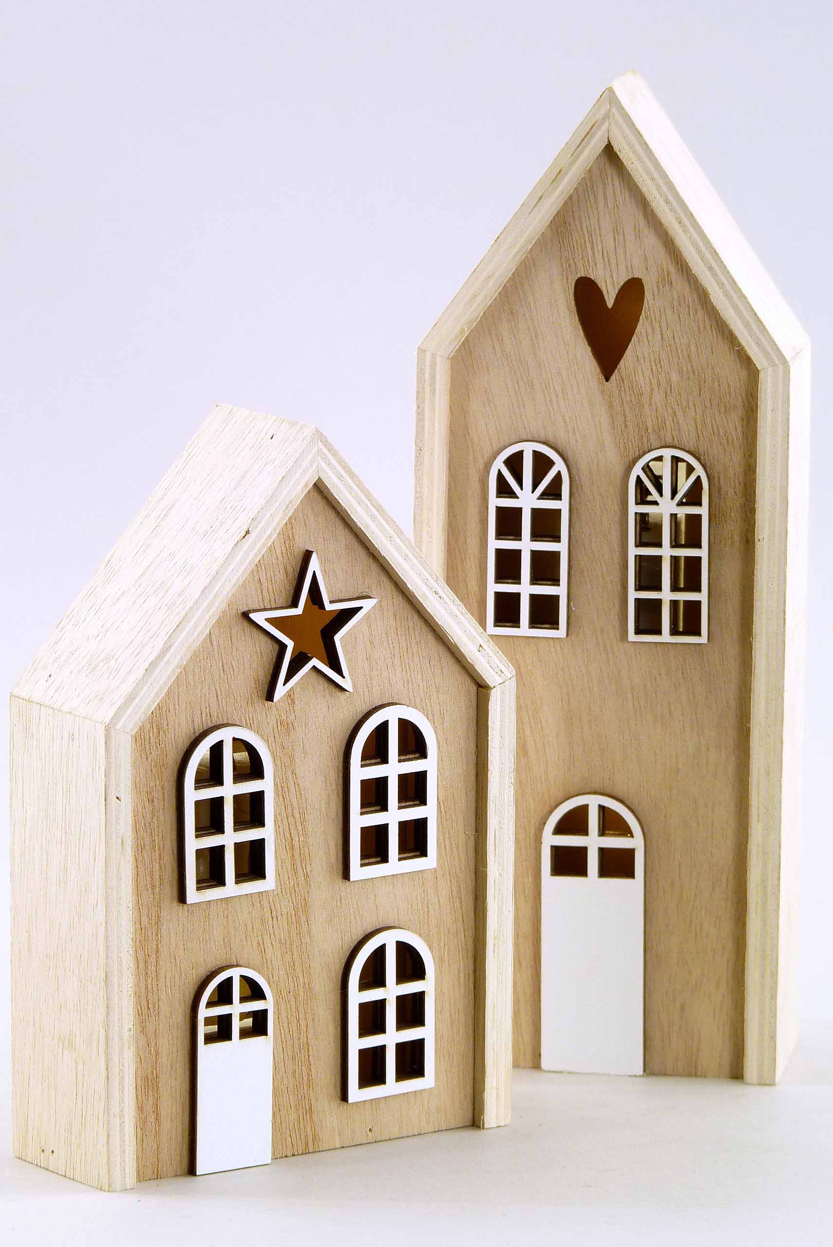Holz-Haus +LED natur-weiß sort. H14,5/20,5 B10/8cm