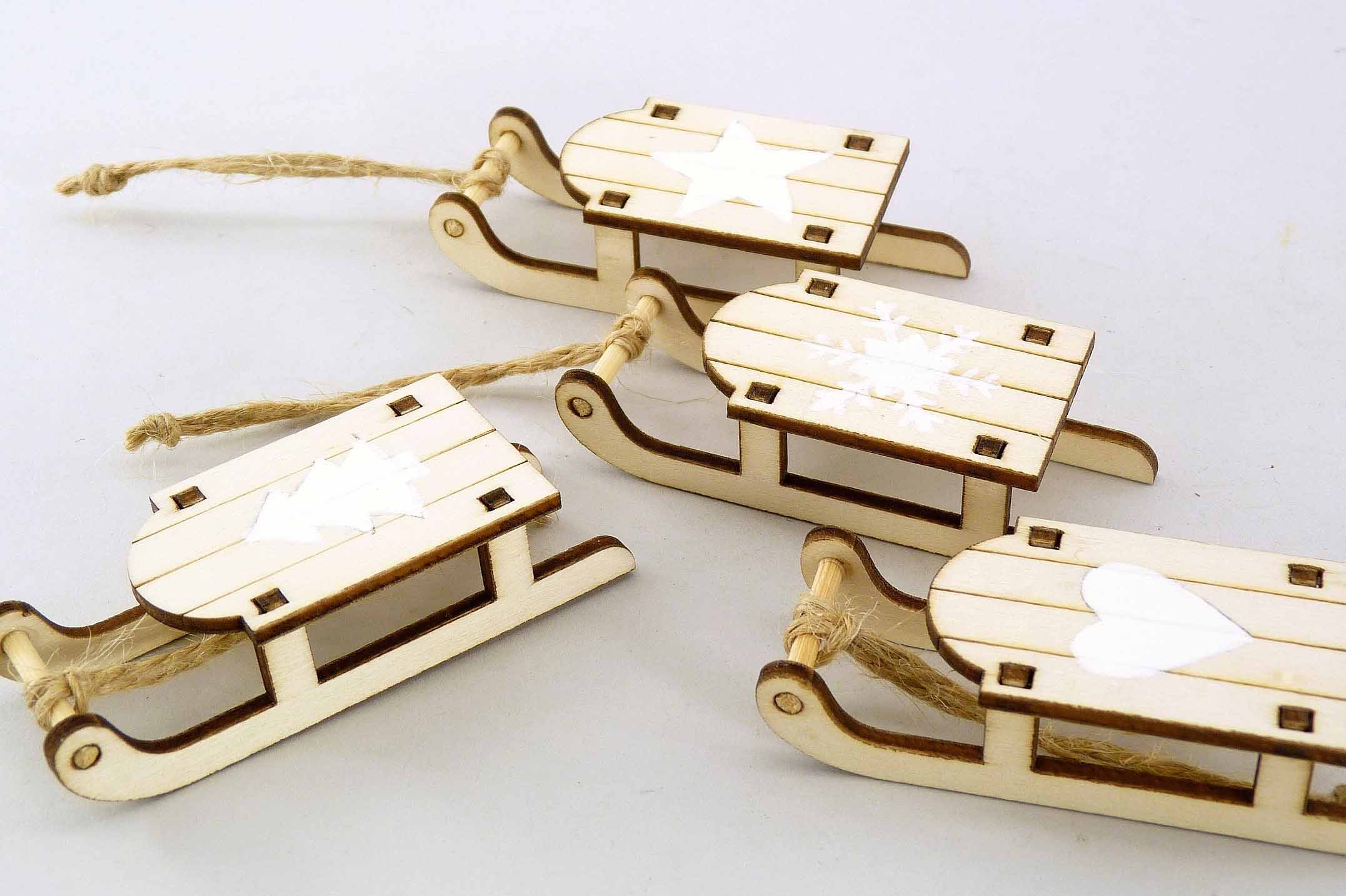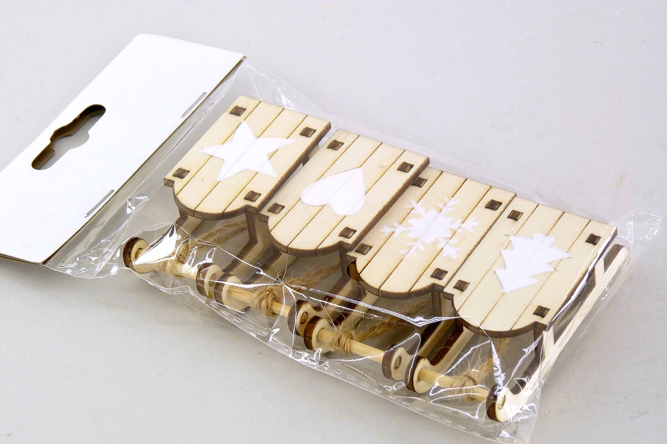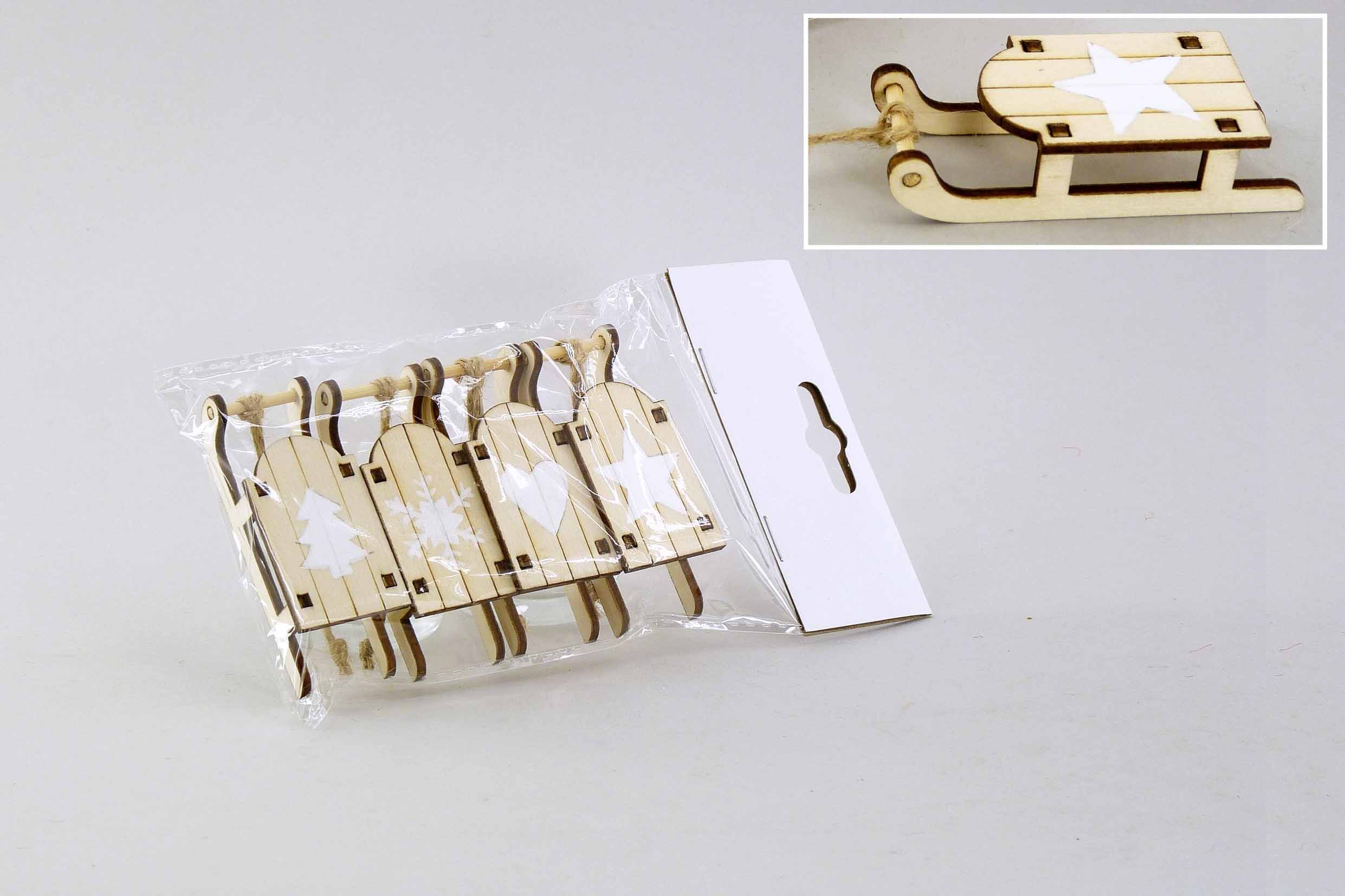 Holz-Schlitten Btl./4 hgd. natur-weiß L7,5cm
