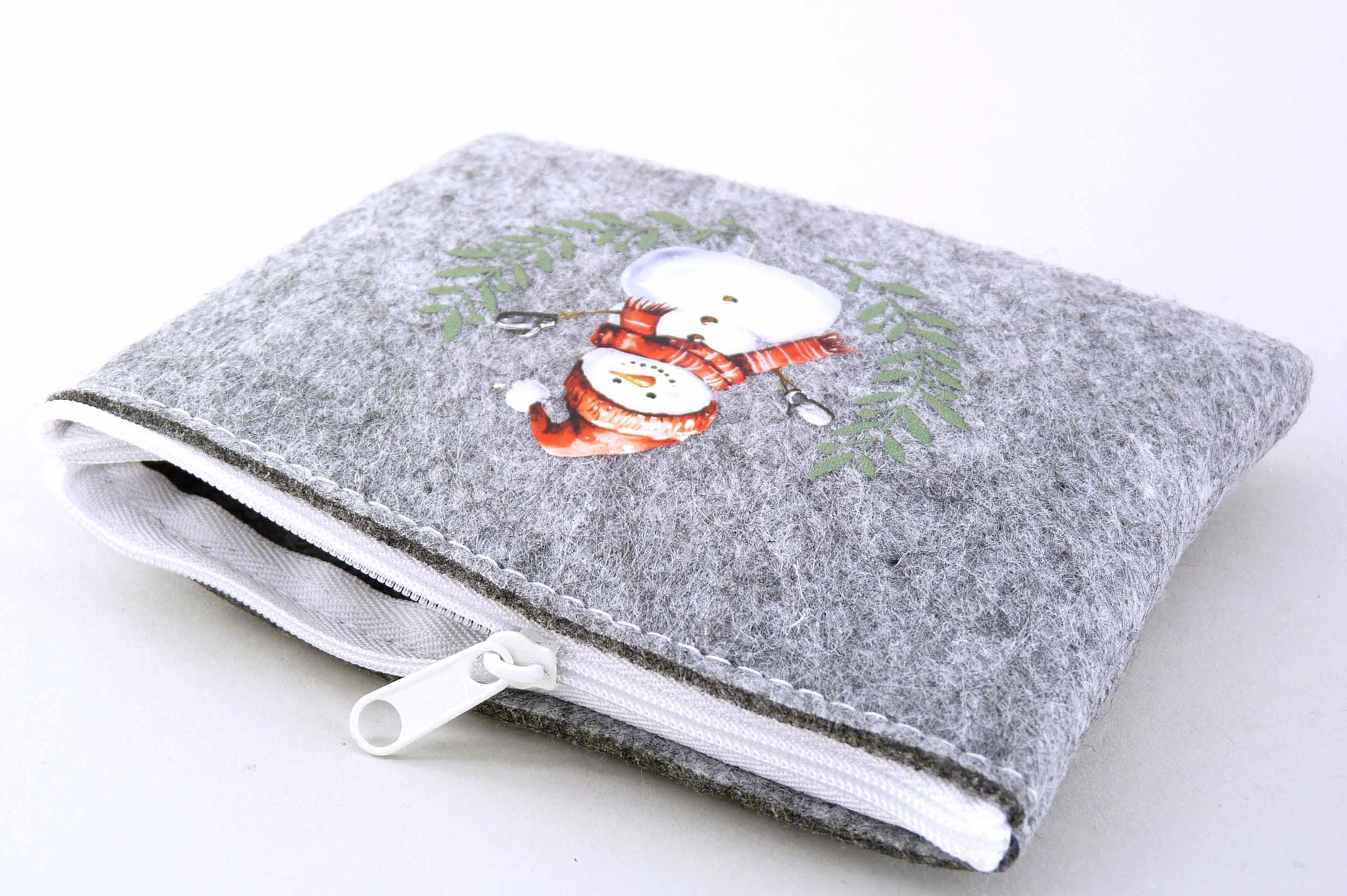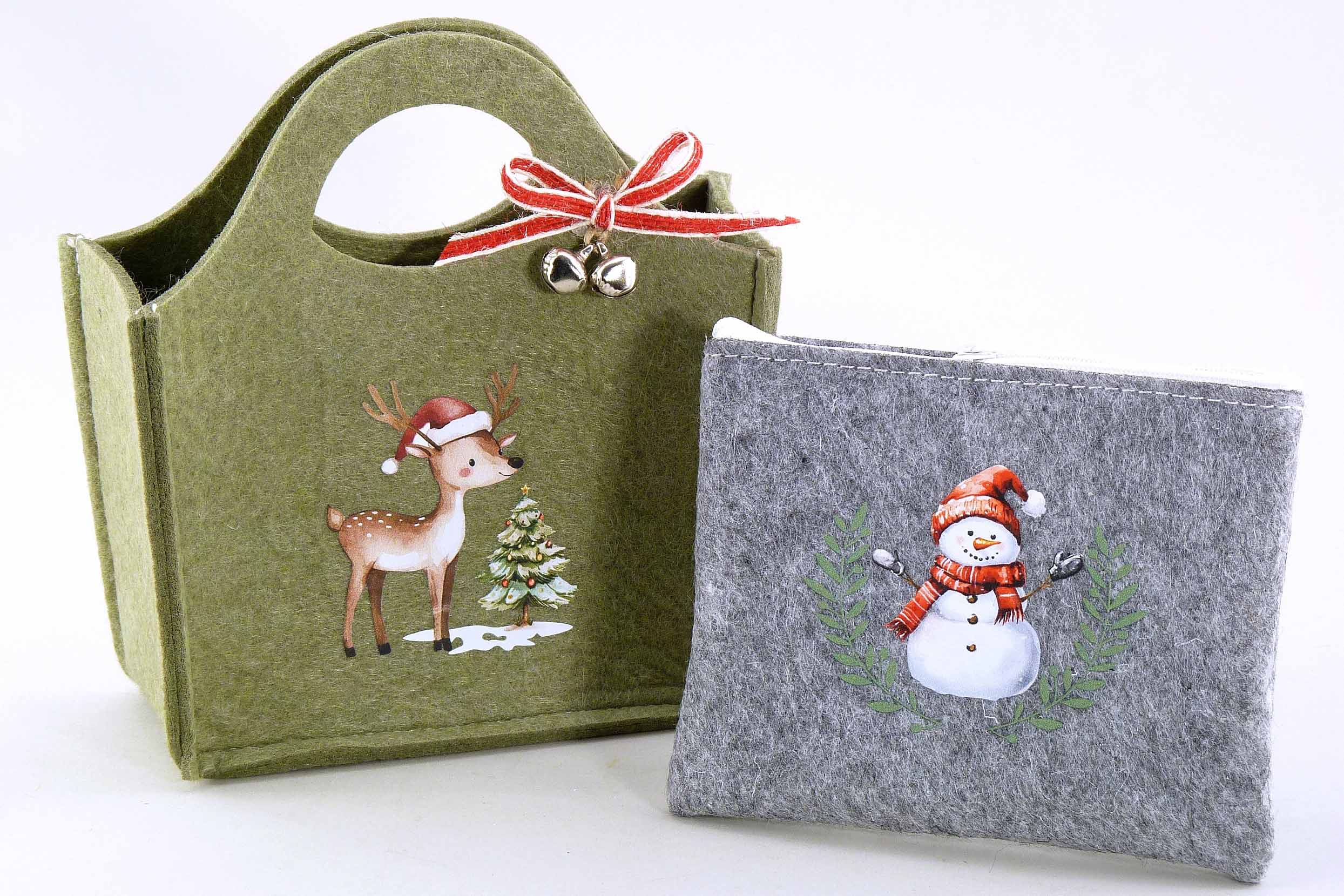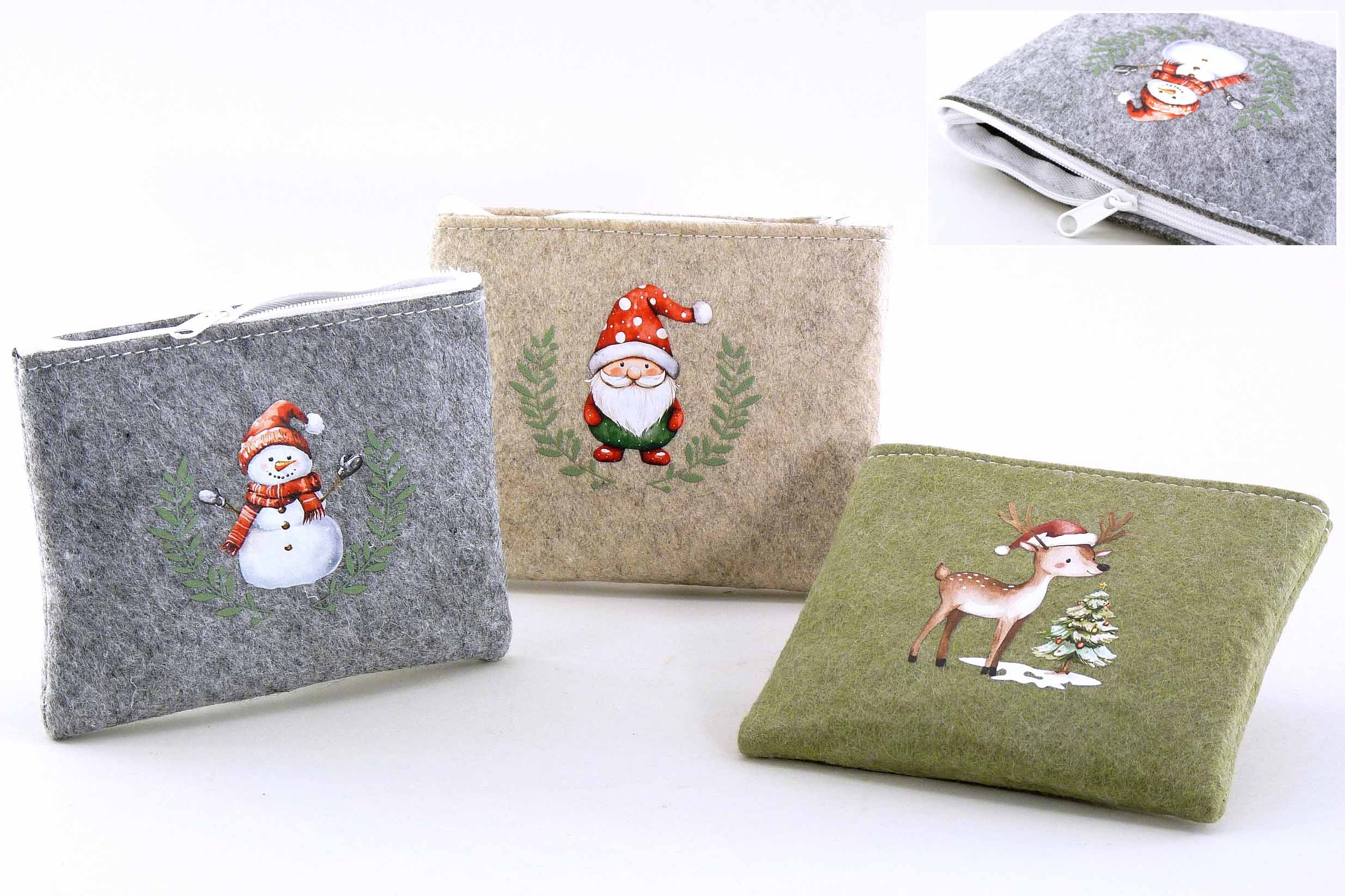 Filz-Tasche ''Xmas-Motiv'' +Zip grau/braun/grün sort. H10 B13cm