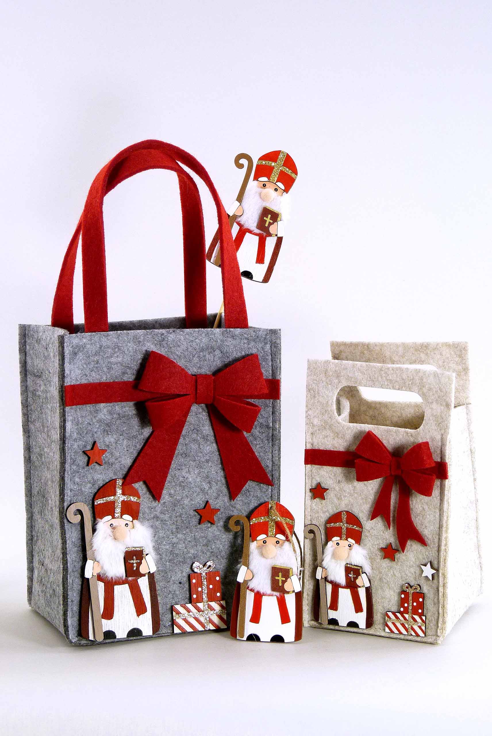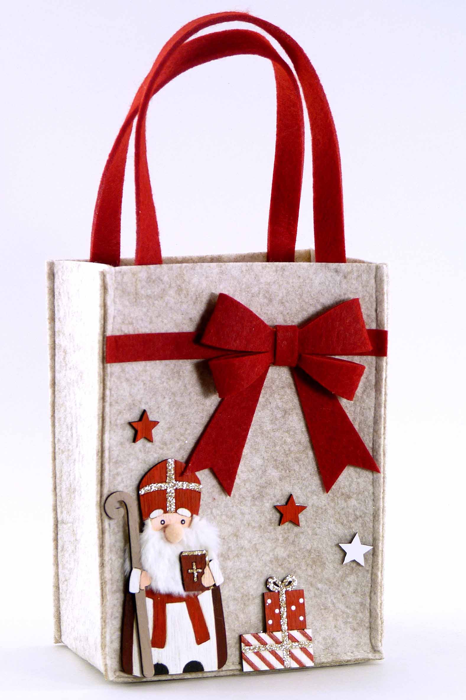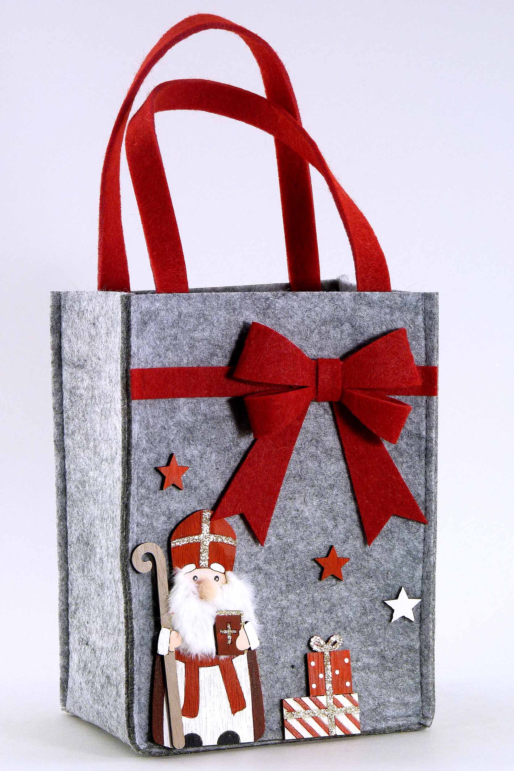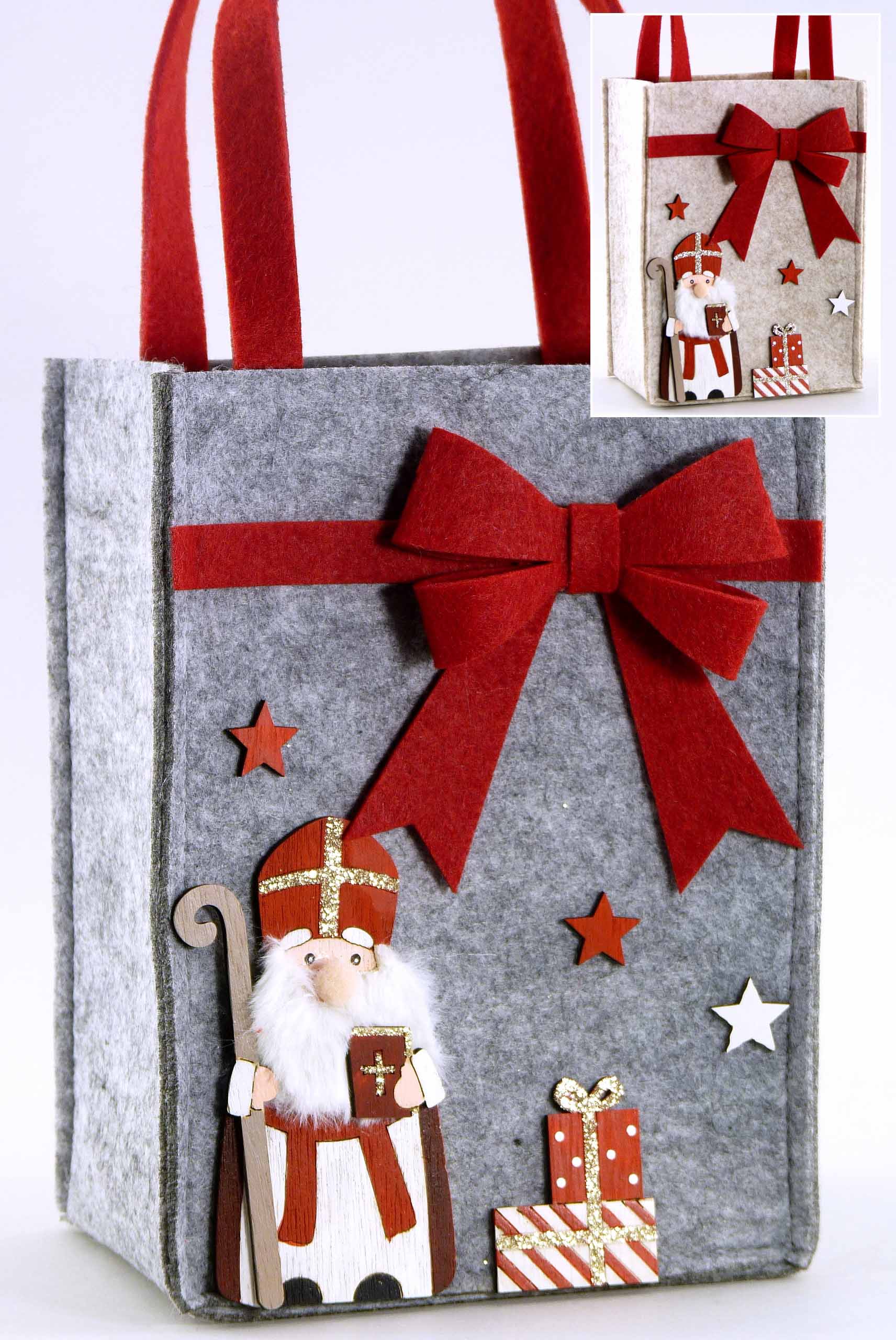 Filz-Tasche ''Nikolo'' grau/braun-rot sort. 16x9,5 H35cm