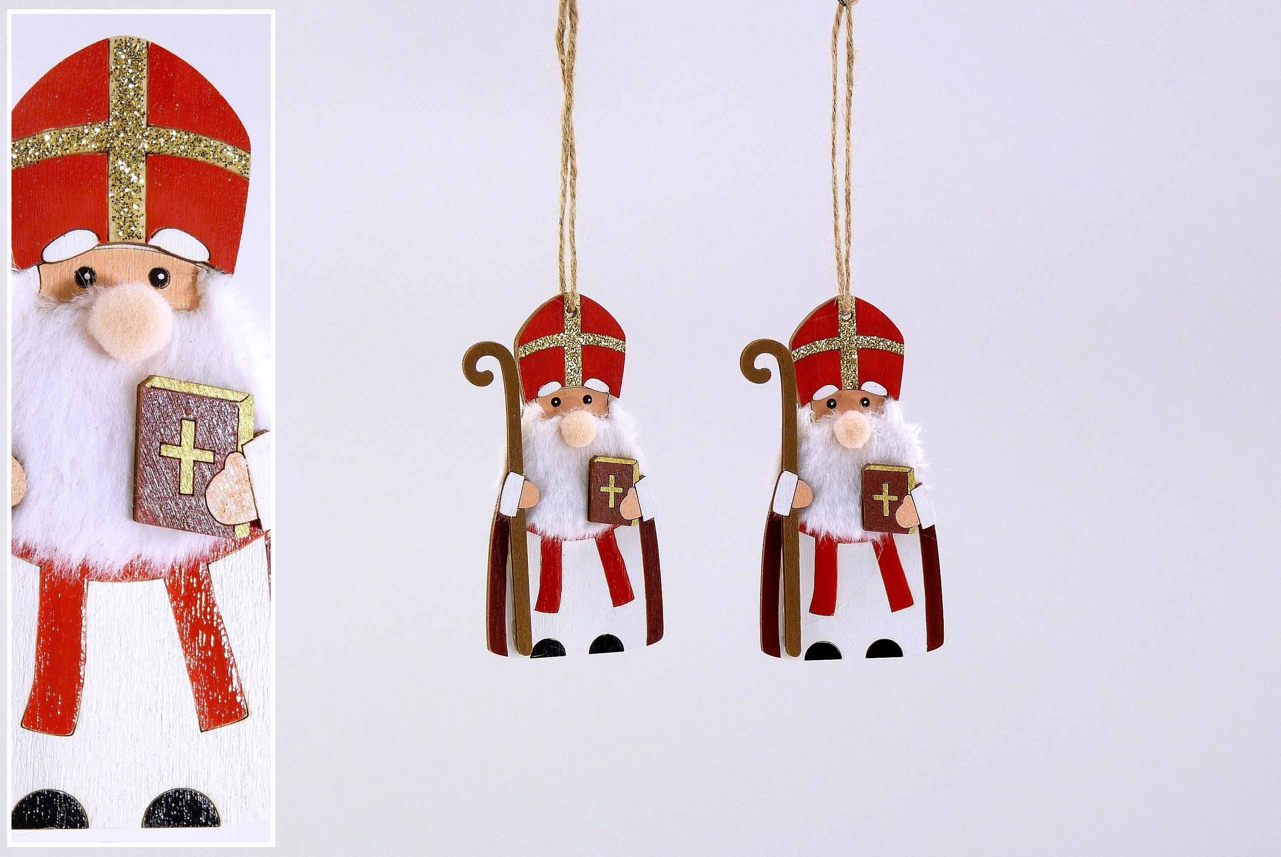 Holz-Nikolo hgd. rot-weiß-gold sort. H10cm