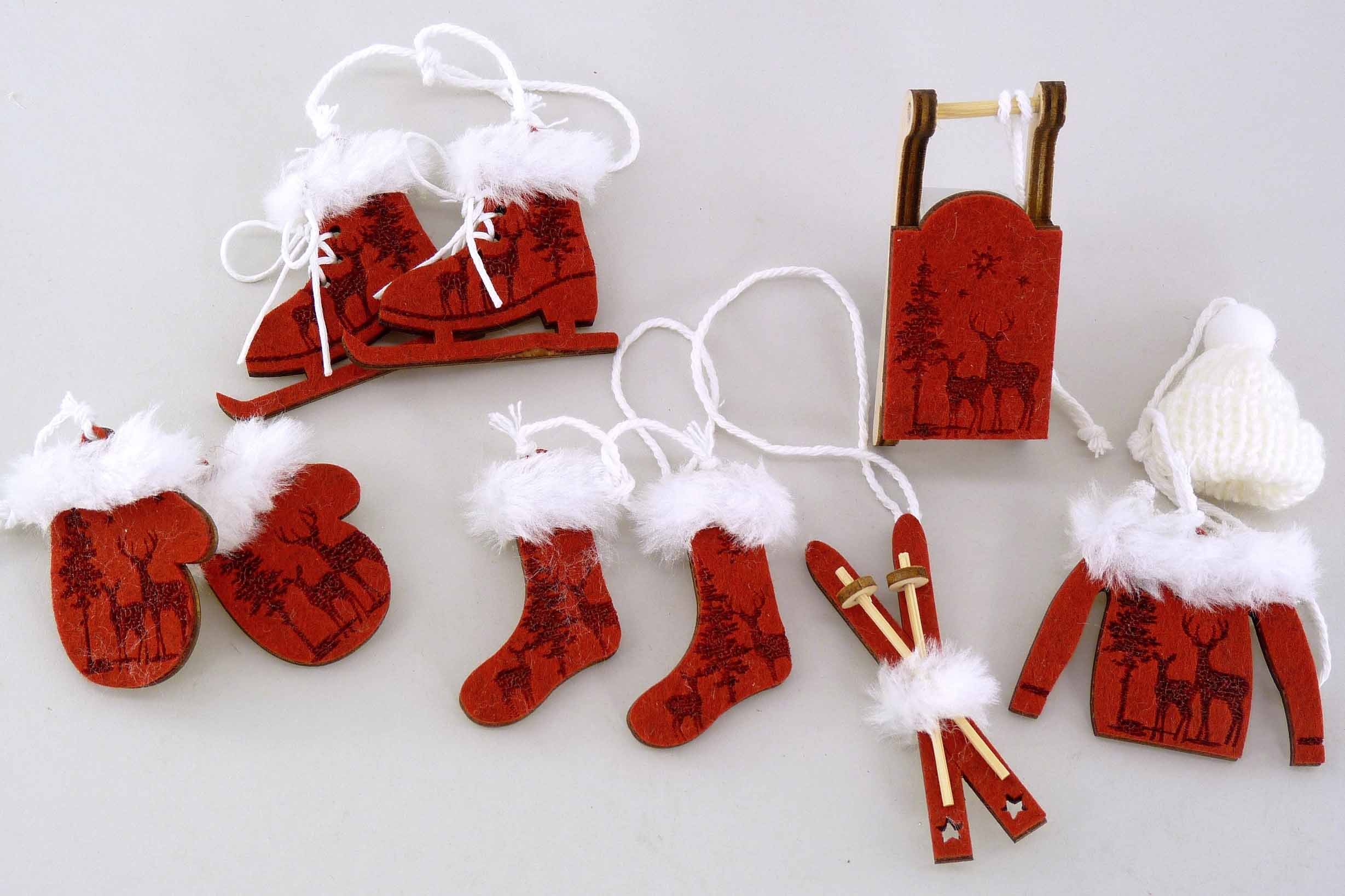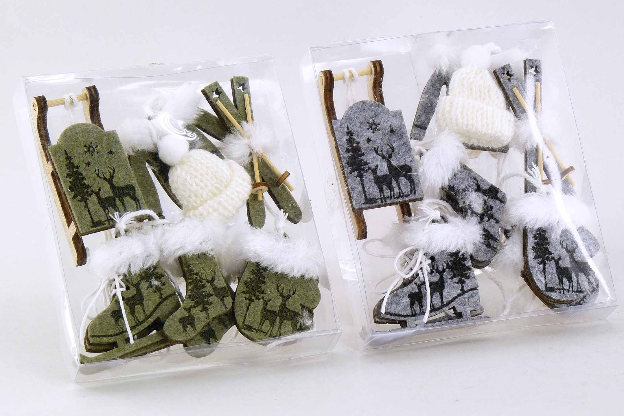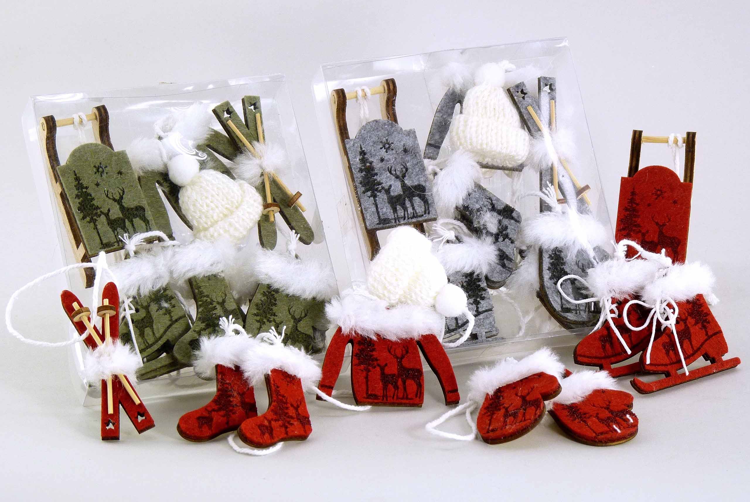 Filz/Holz-Winteranhänger Box/6 grau/rot/grün-weiß sort. 5-7cm