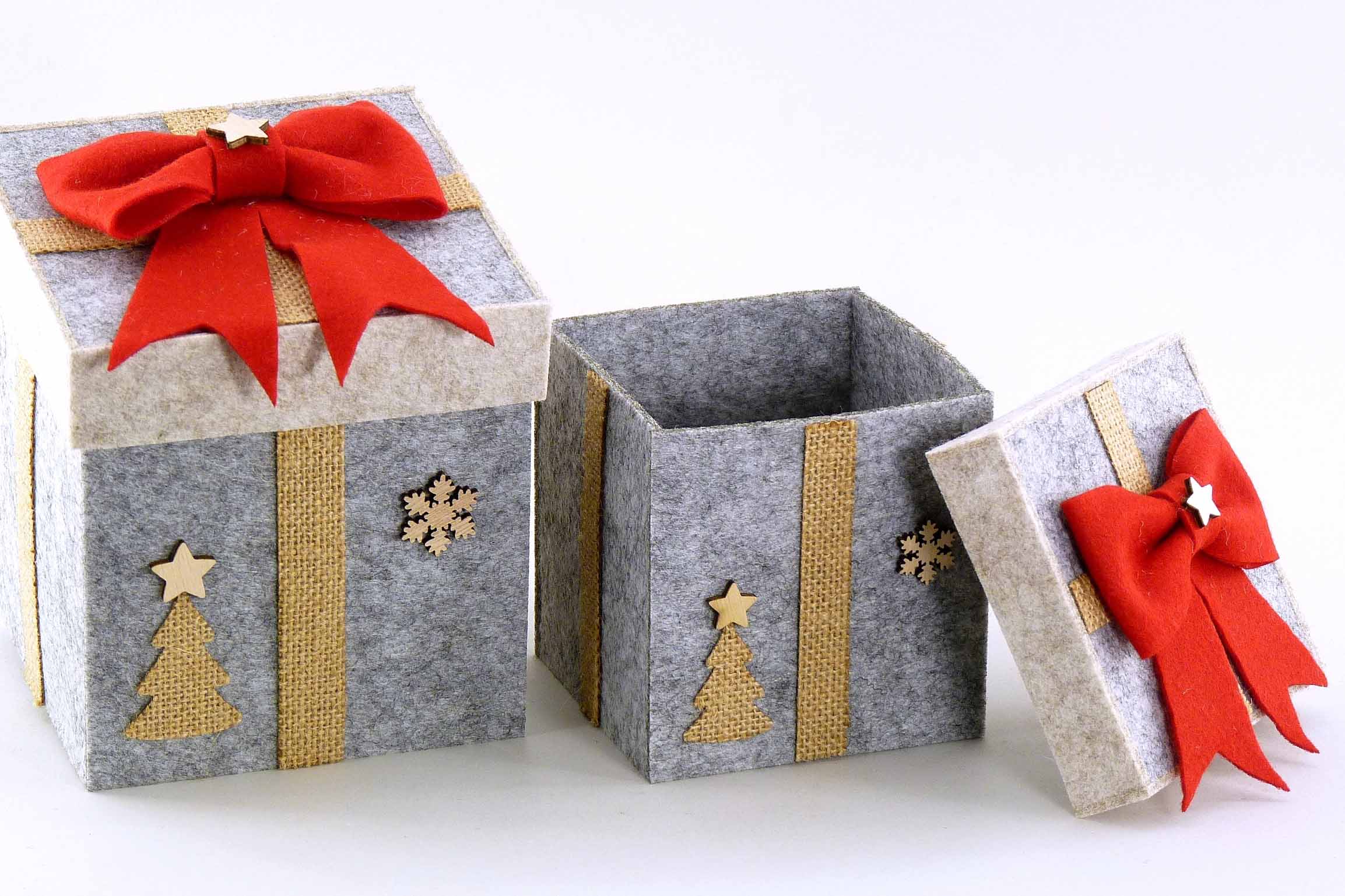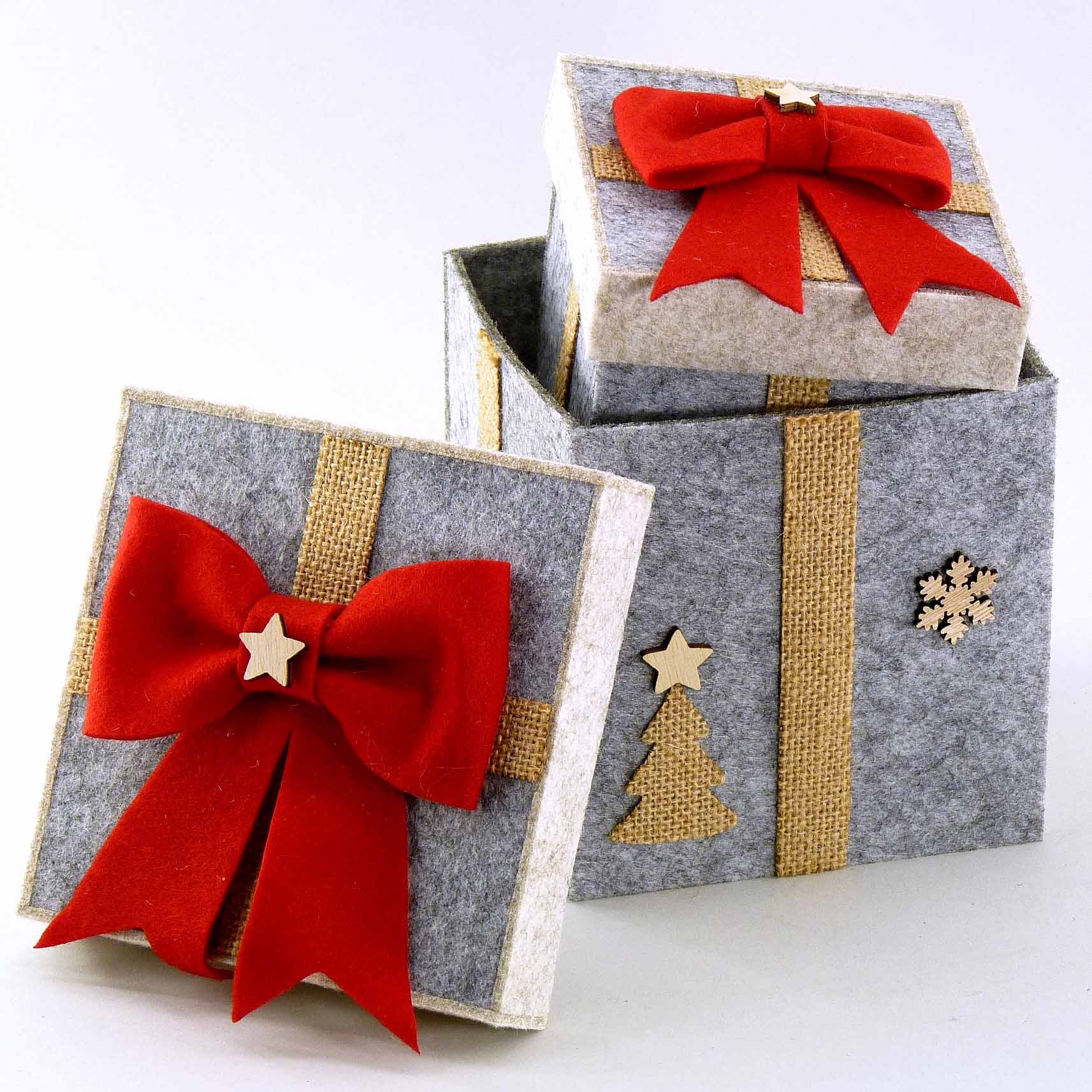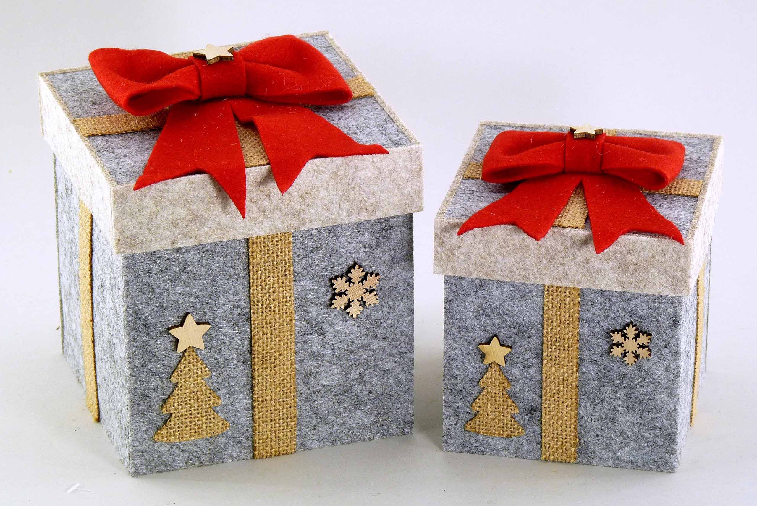 Filz-Geschenkbox S/2 rot-grau 10,5x10,5 H12cm,13x13 H15cm