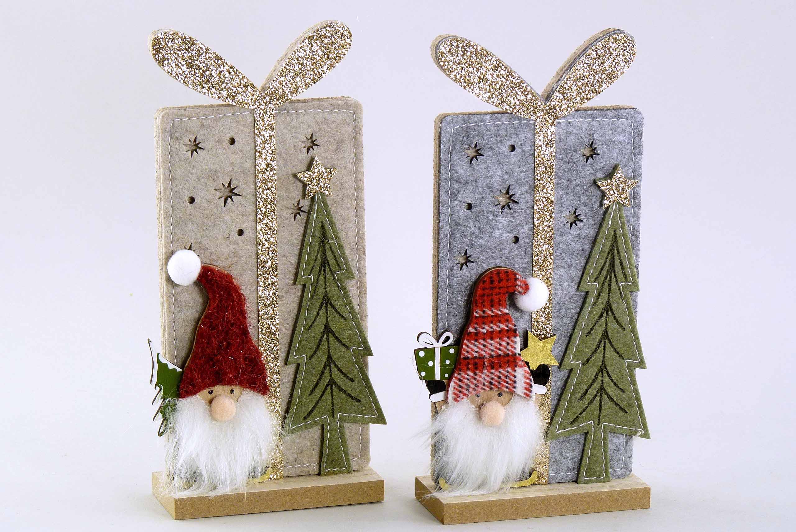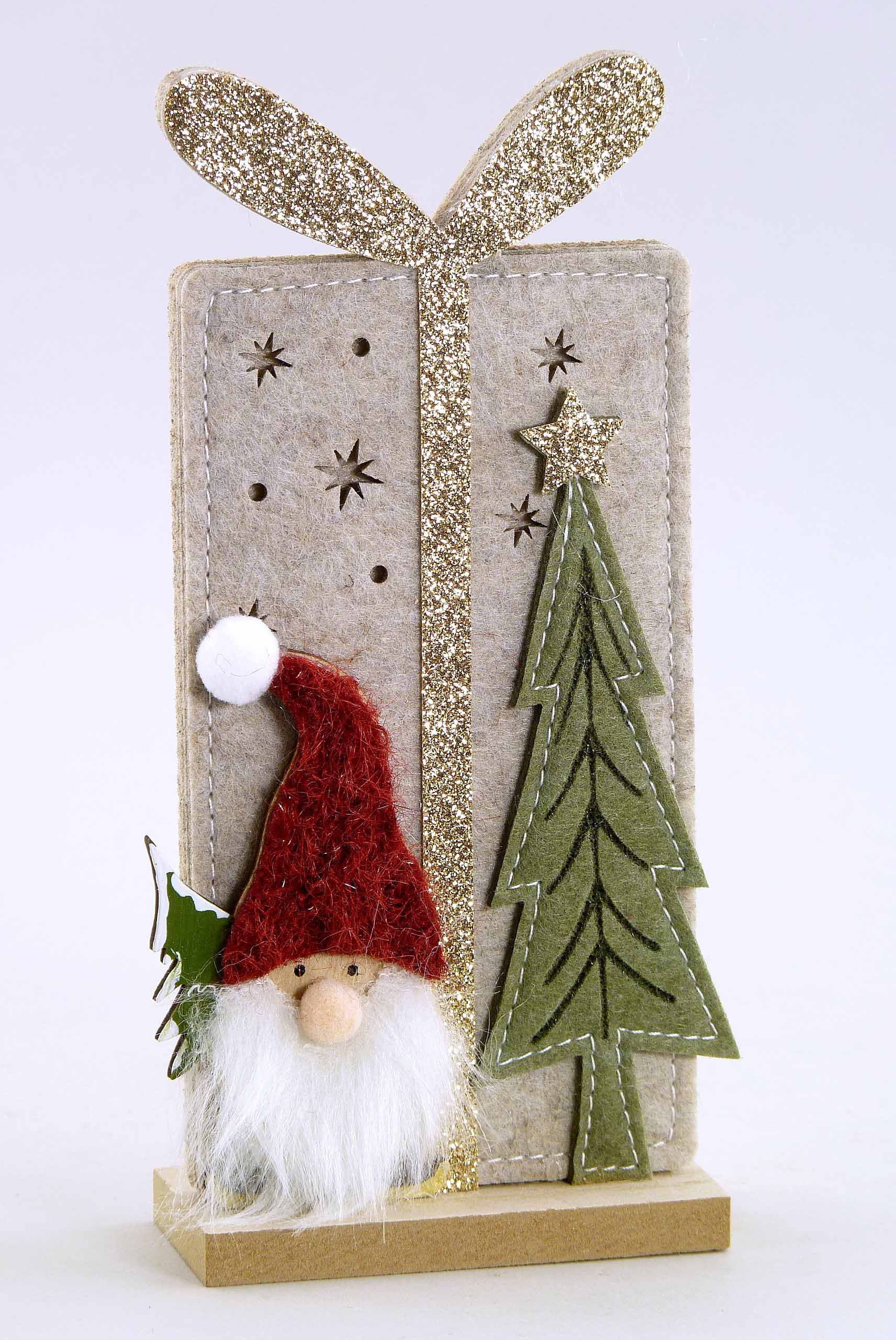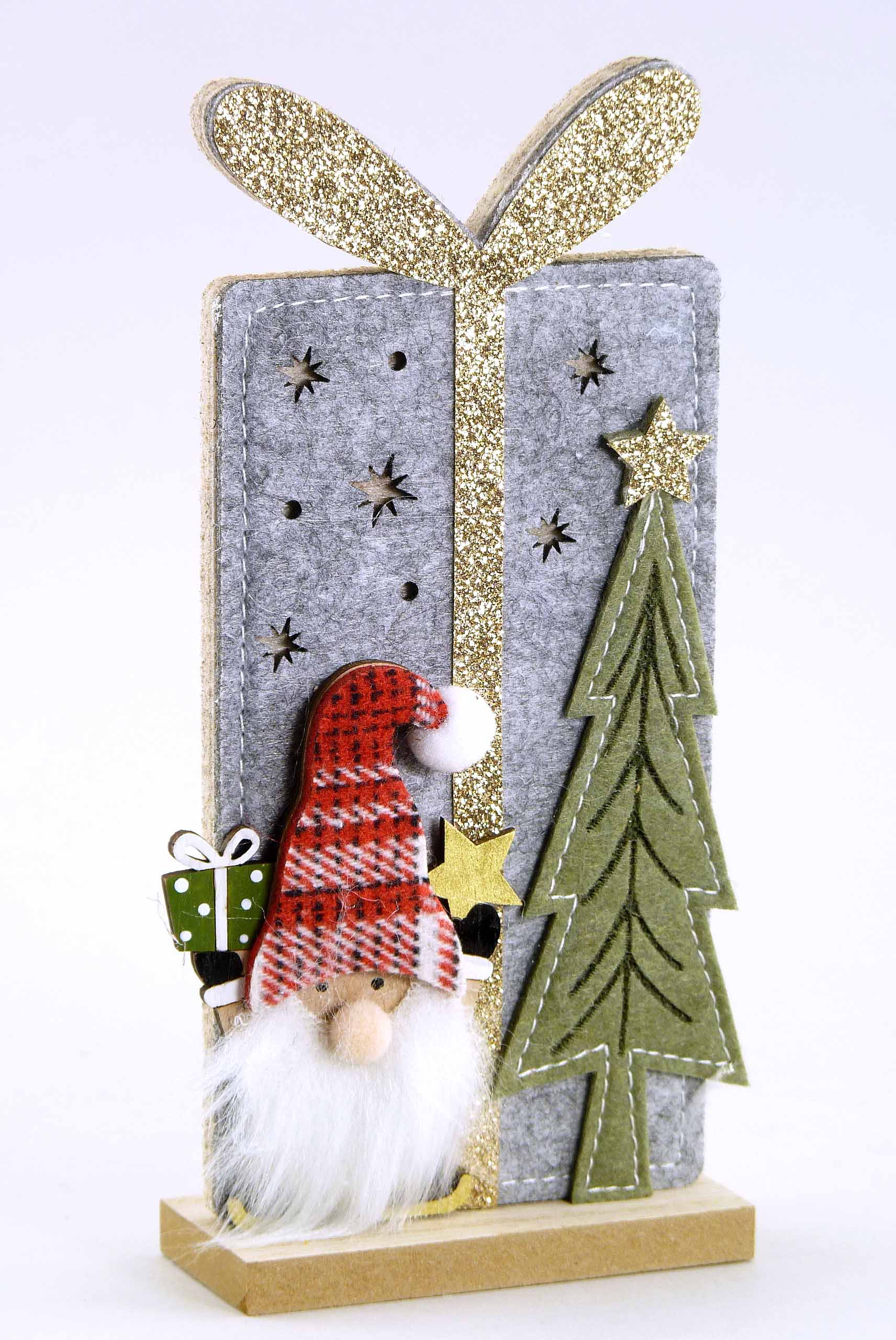 Filz-Geschenkpackerl +Wichtel grau/braun-rot sort. H20 B9cm
