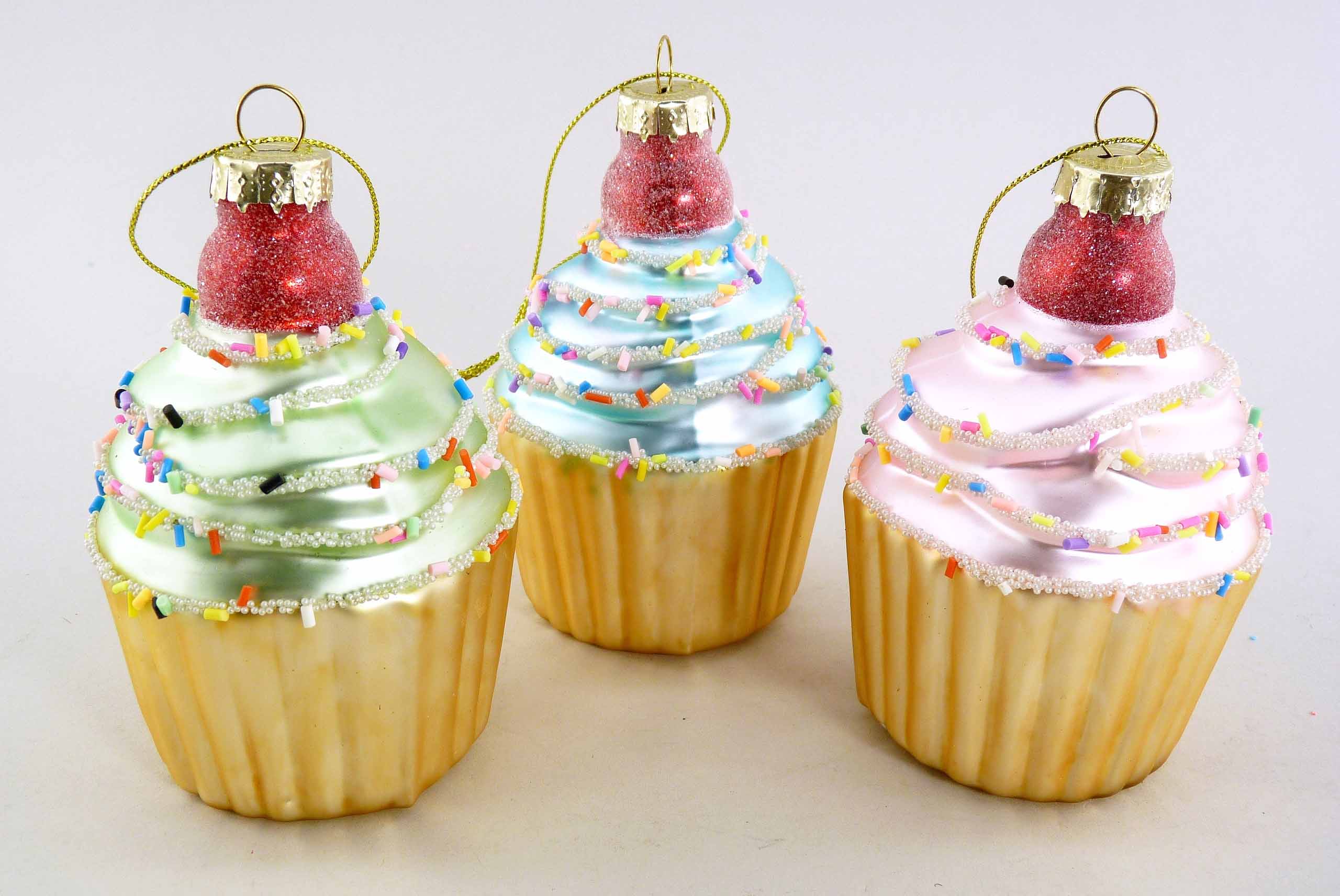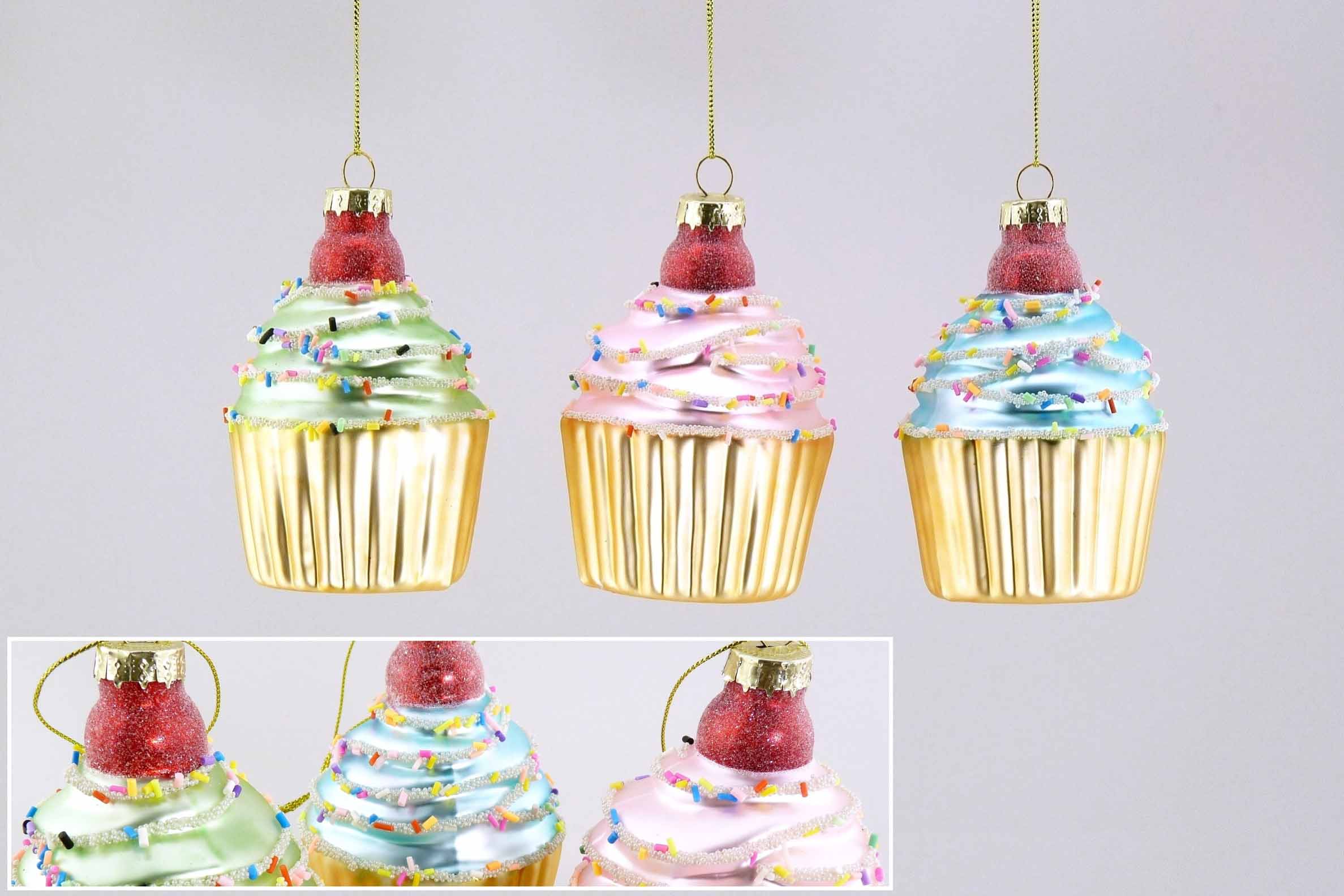 Glas-Cupcake ''Xmas Candy'' hgd. pastell-bunt sort. ø7 H11cm