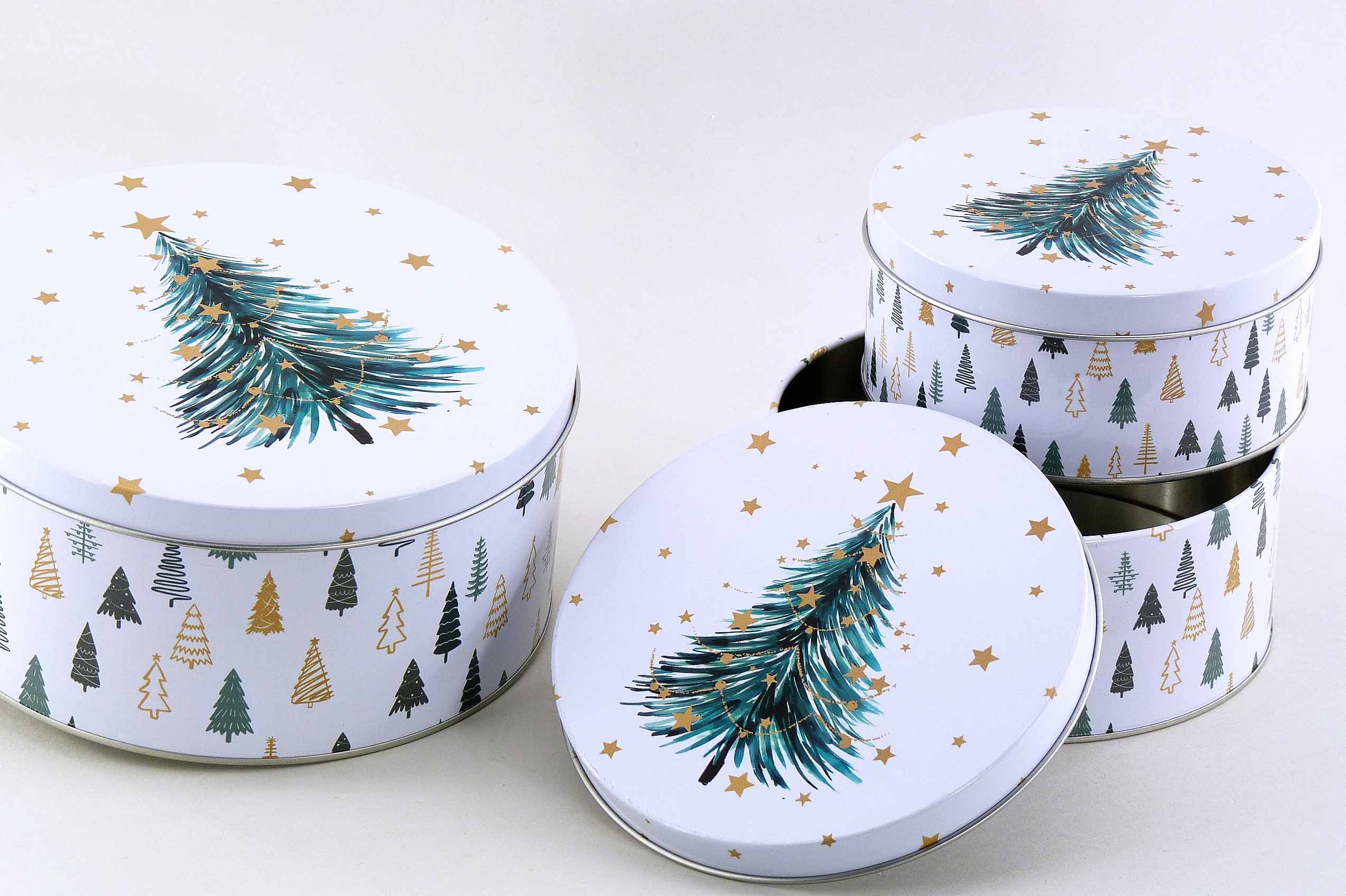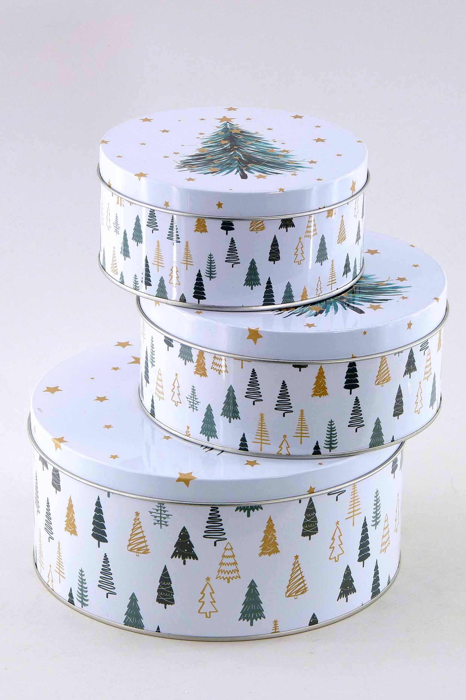 Metall-Keksdose Set/3 grün-weiß-gold ø14/16/20 H6/7/9cm