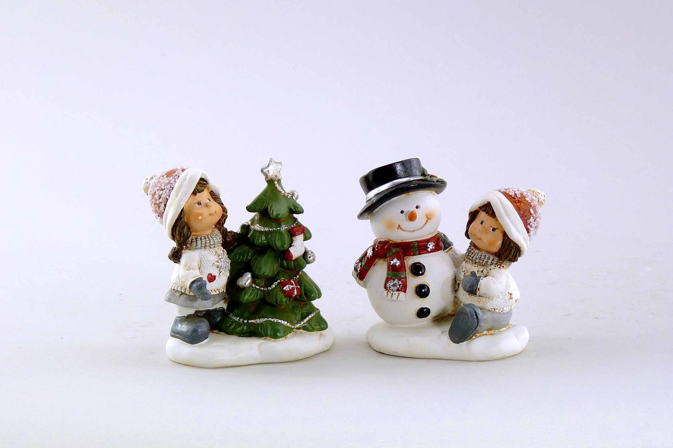 Poly-Winterengel +Schneemann/Baum witzig grau-rot-weiß sort. H/B8cm