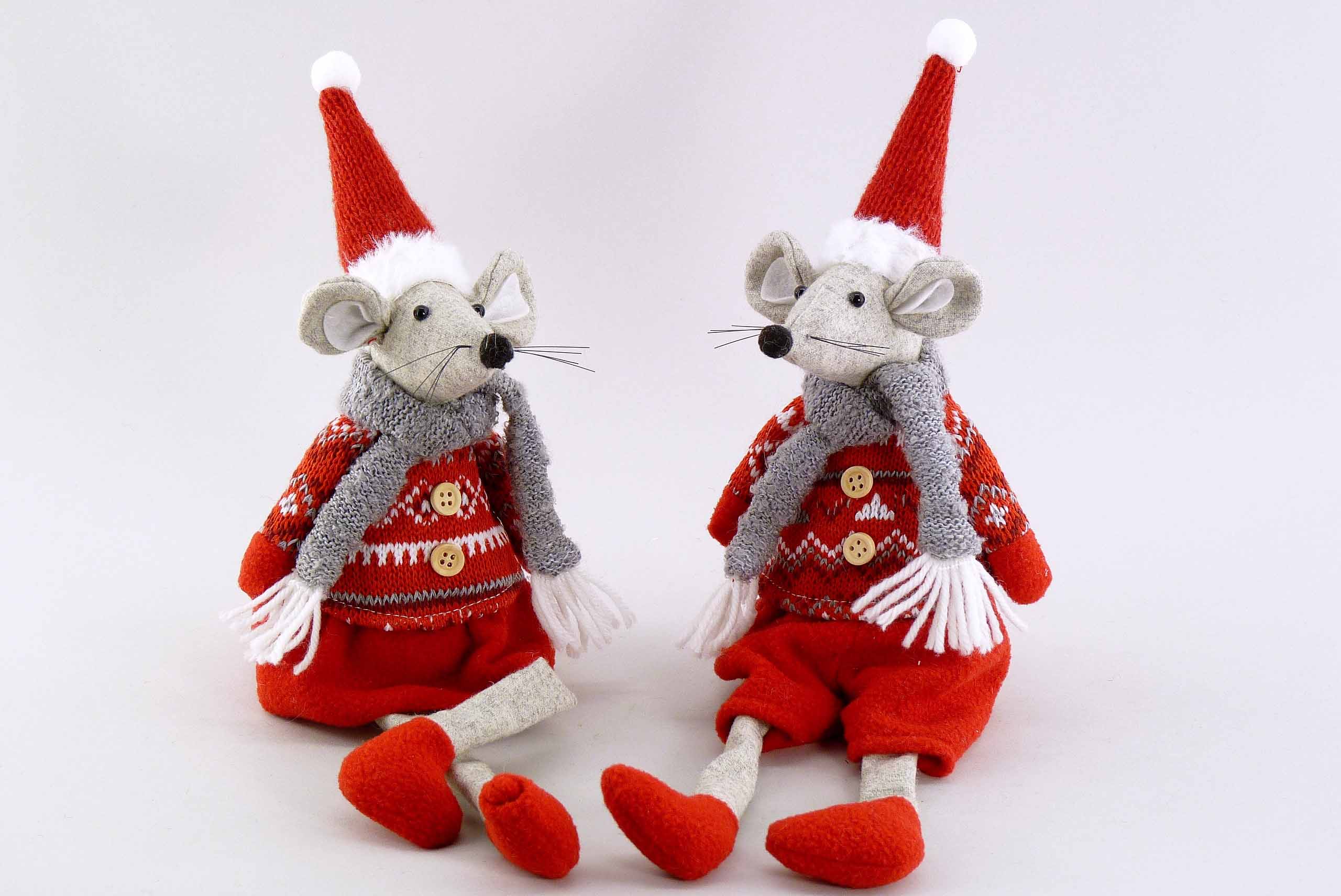 Stoff-Wintermaus Kantenhocker rot-weiß-grau sort. H21 L35cm