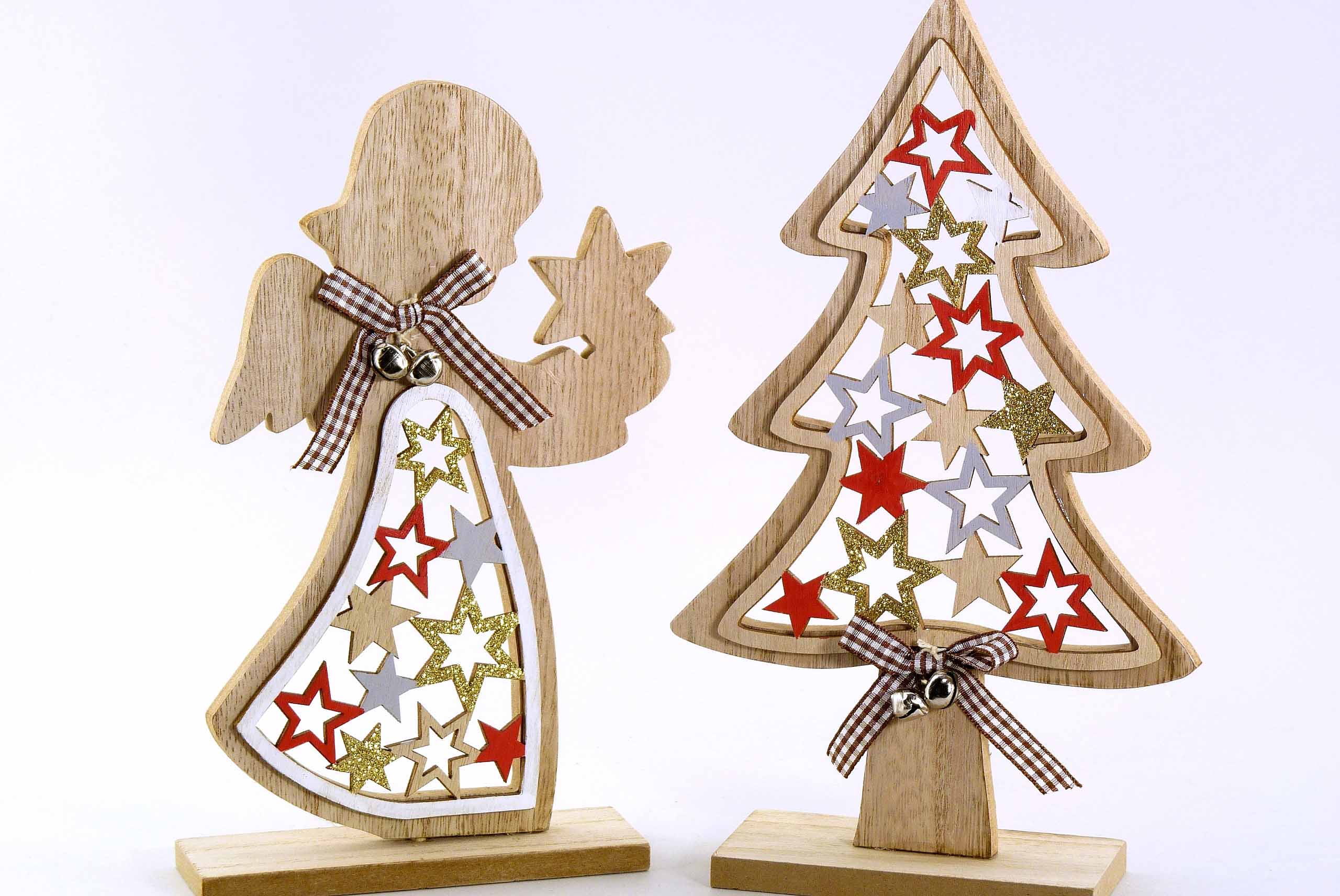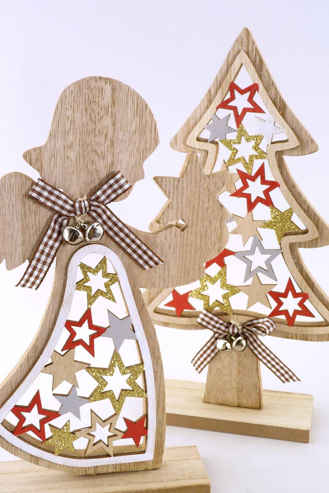 Holz-Engel/Baum ''Sternenmeer'' natur-rot-weiß-gold sort. H22/25cm