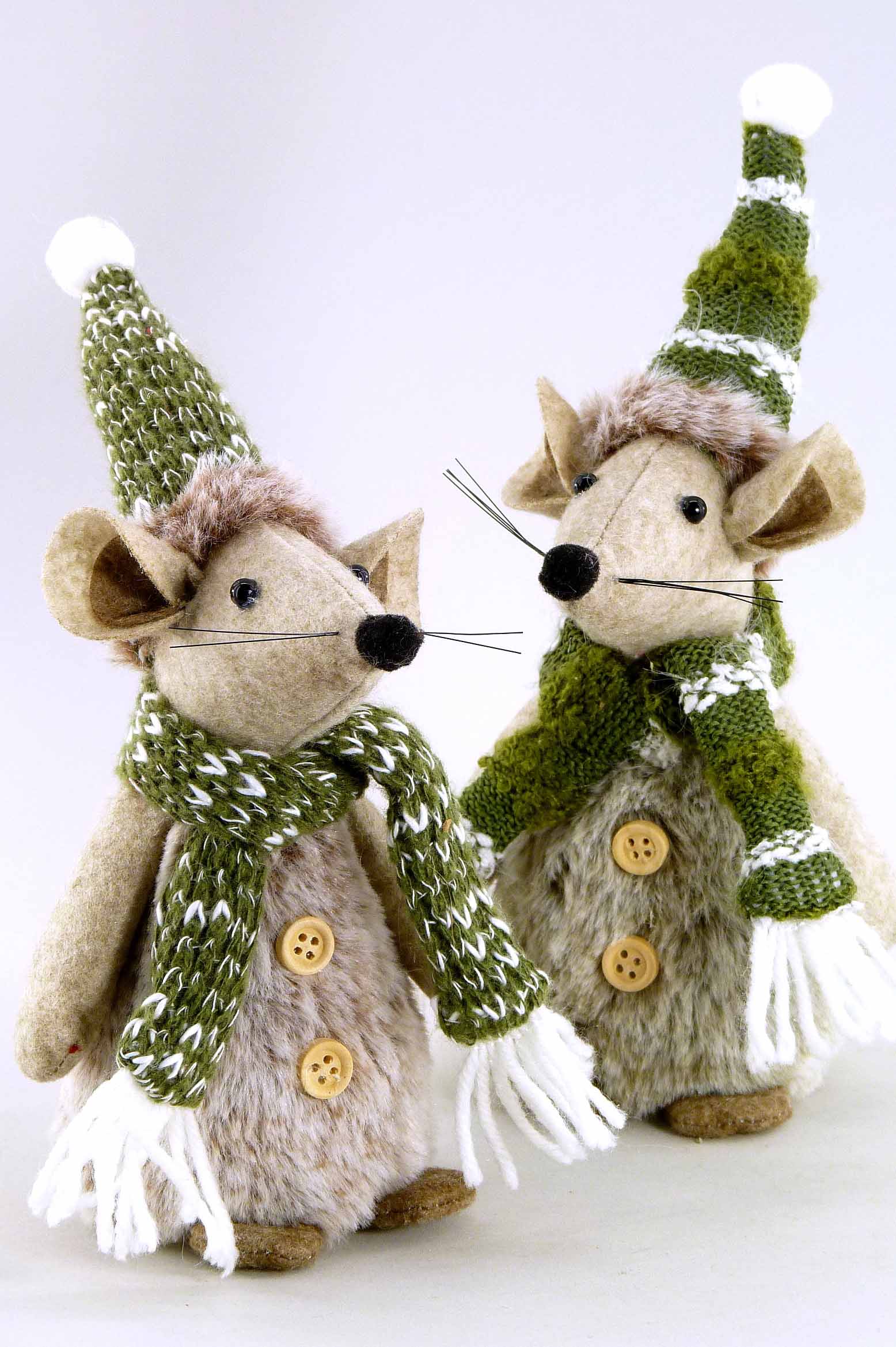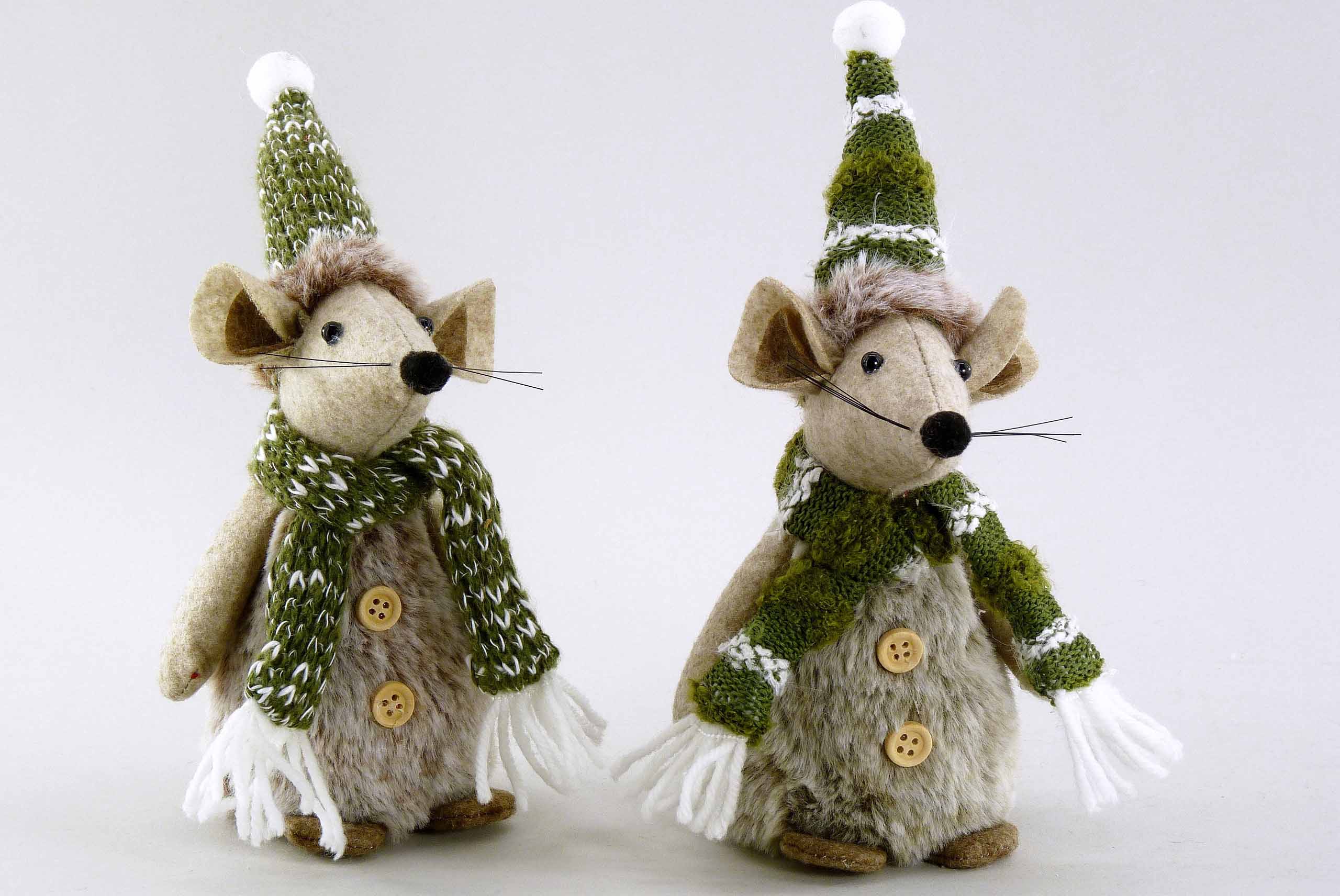 Stoff/Woll-Wintermaus braun-grün-weiß sort. H21cm