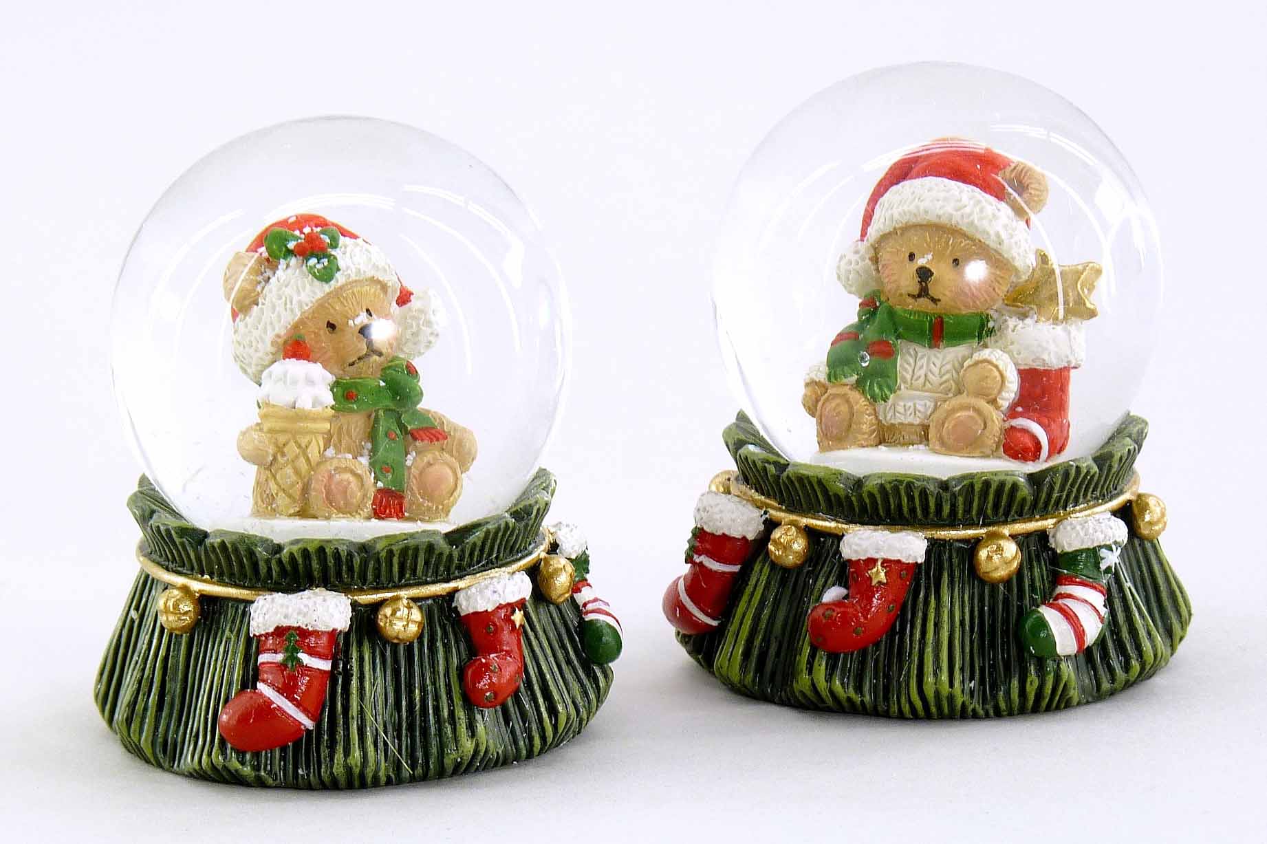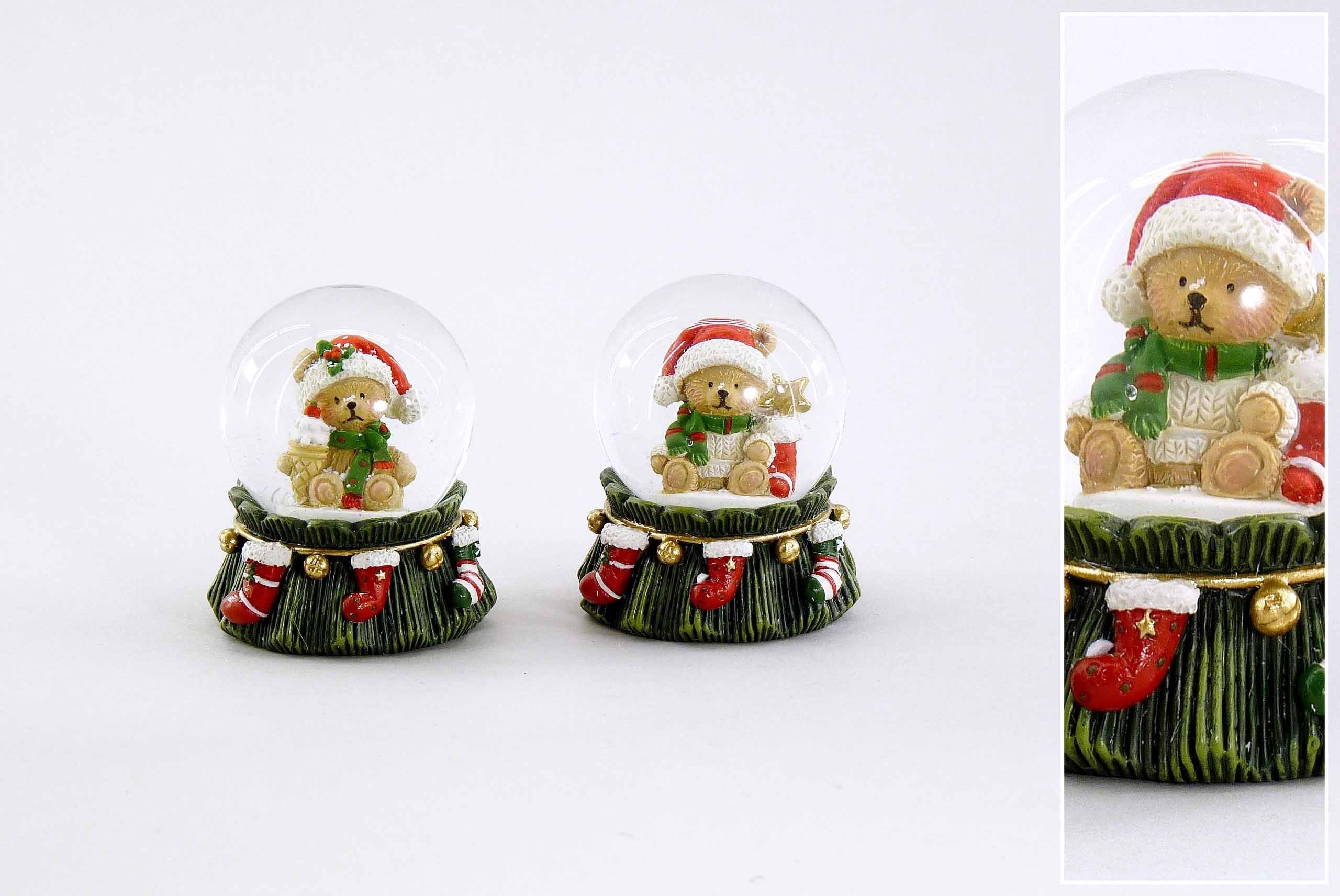 Poly-Schneekugel ''Weihnachtsteddy'' rot-weiß-grün sort. ø5 H6,5cm