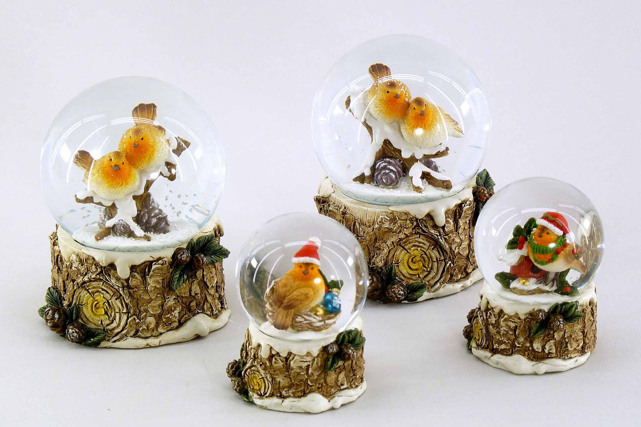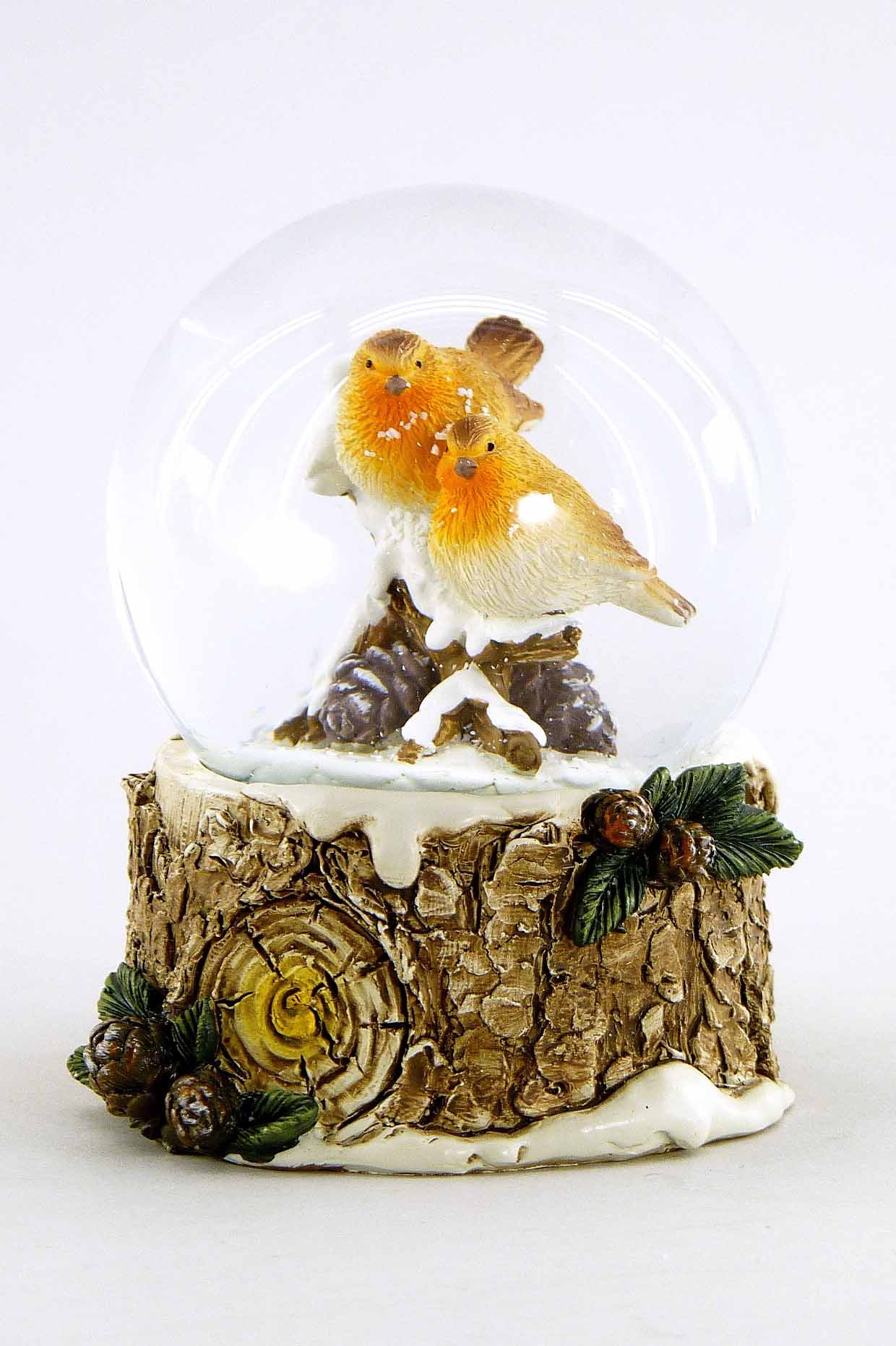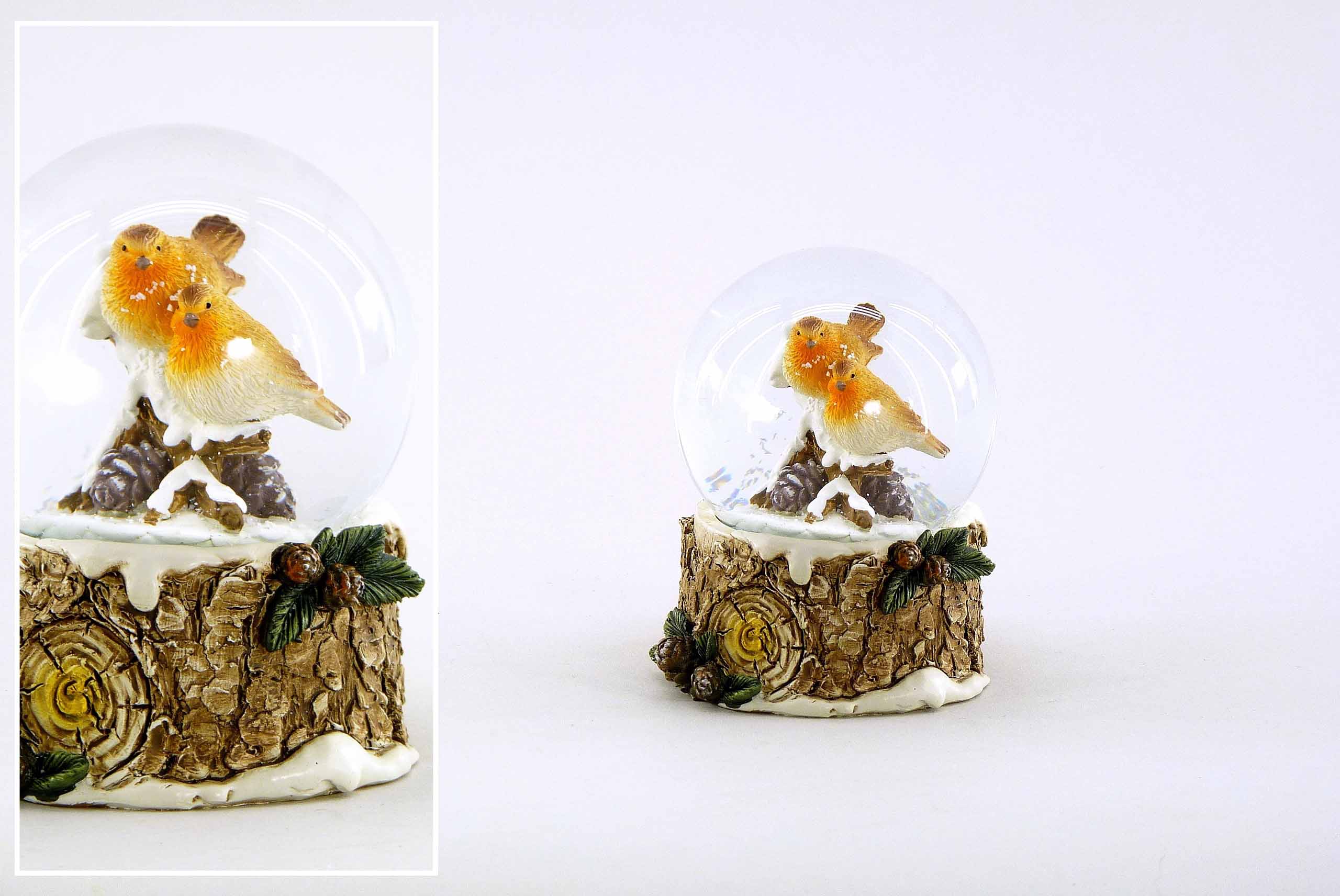 Poly-Schneekugel ''Vogelpaar im Schnee'' braun-weiß ø7 H9cm