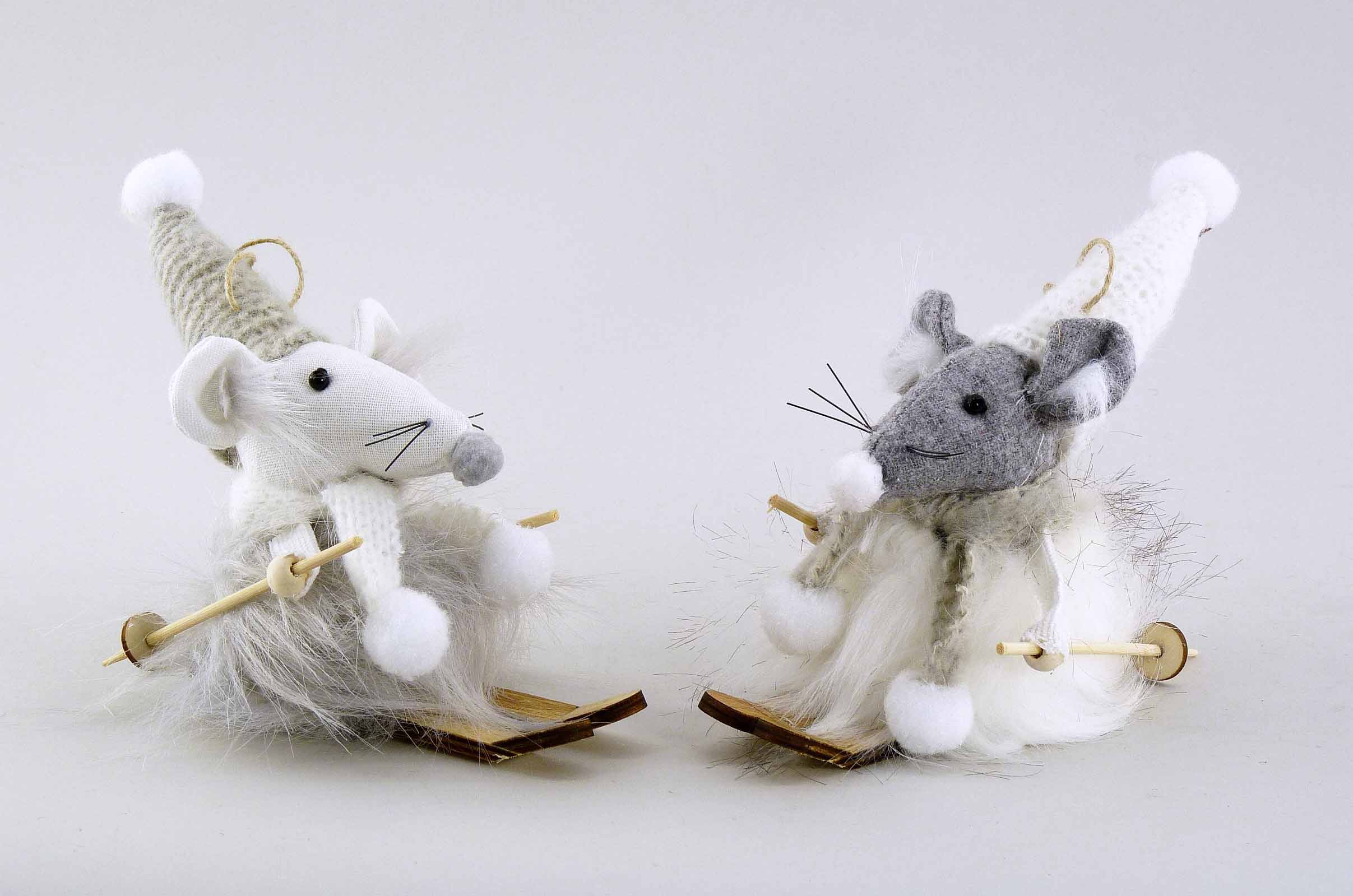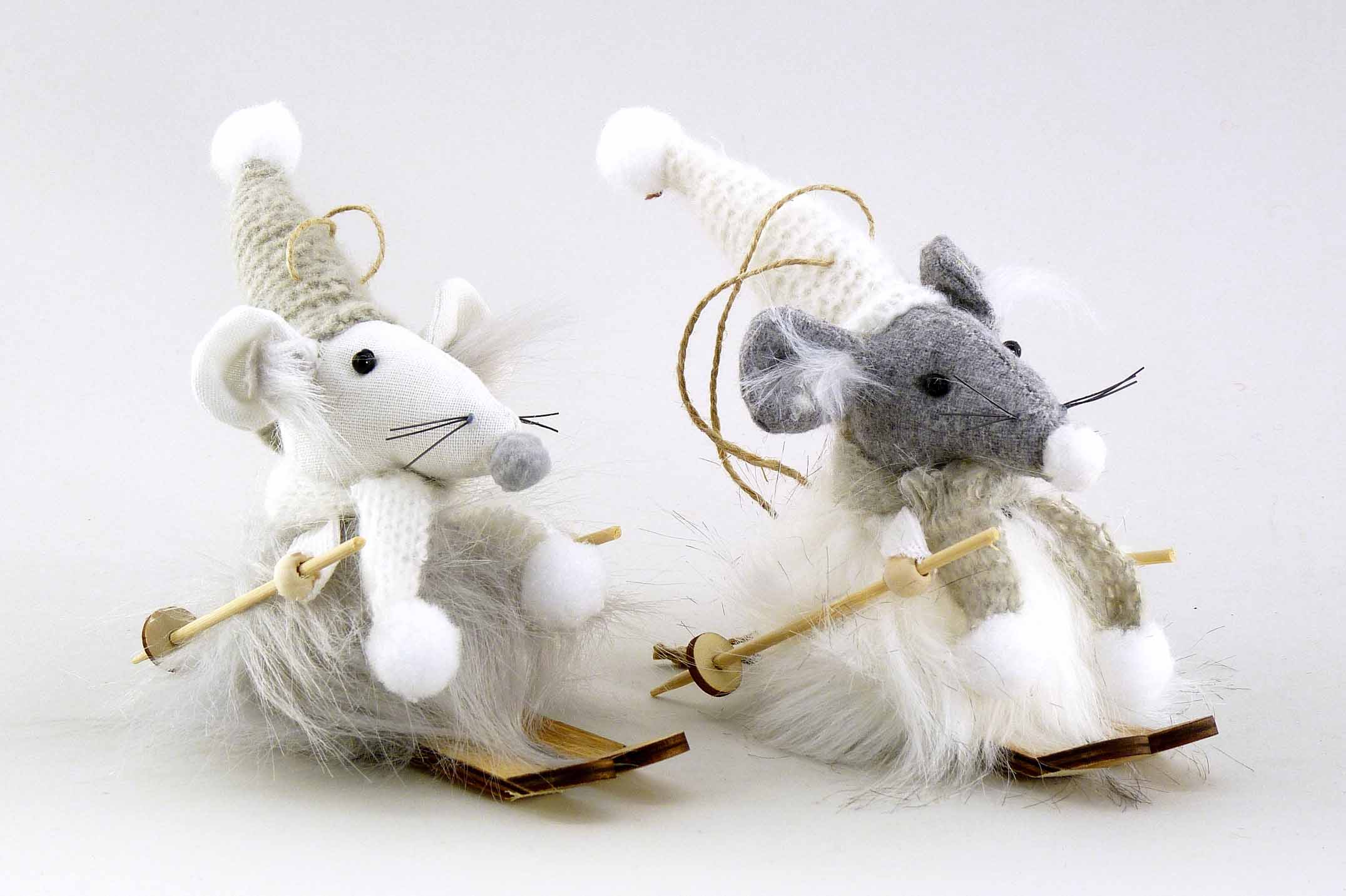 Stoff-Wintermaus auf Ski hgd. grau-weiß sort. H13cm