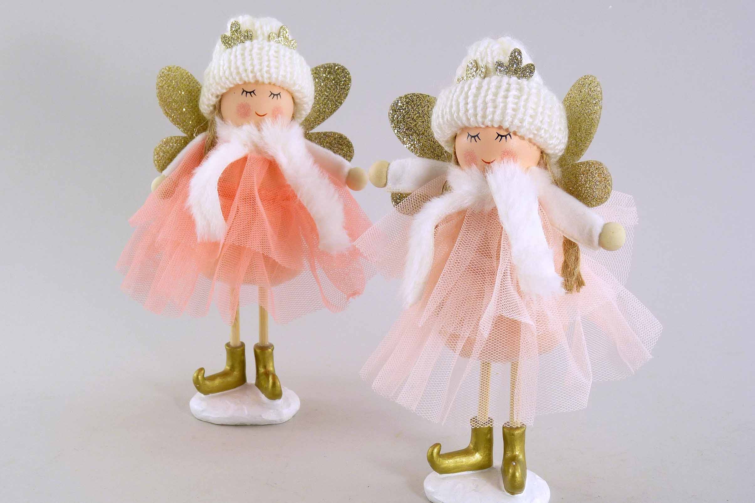 Stoff-Engel ''Organza'' apricot/rosa-weiß sort. H17cm
