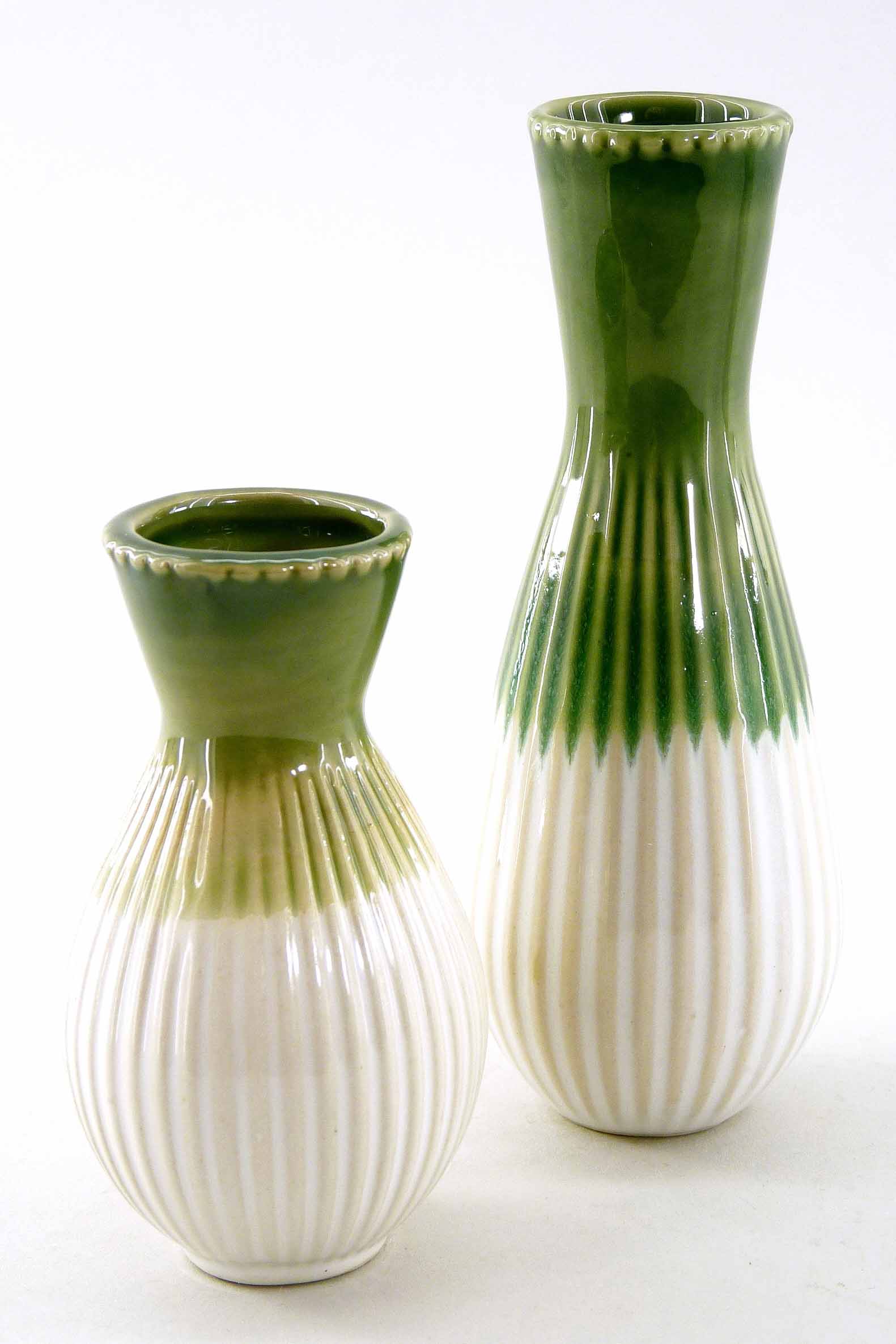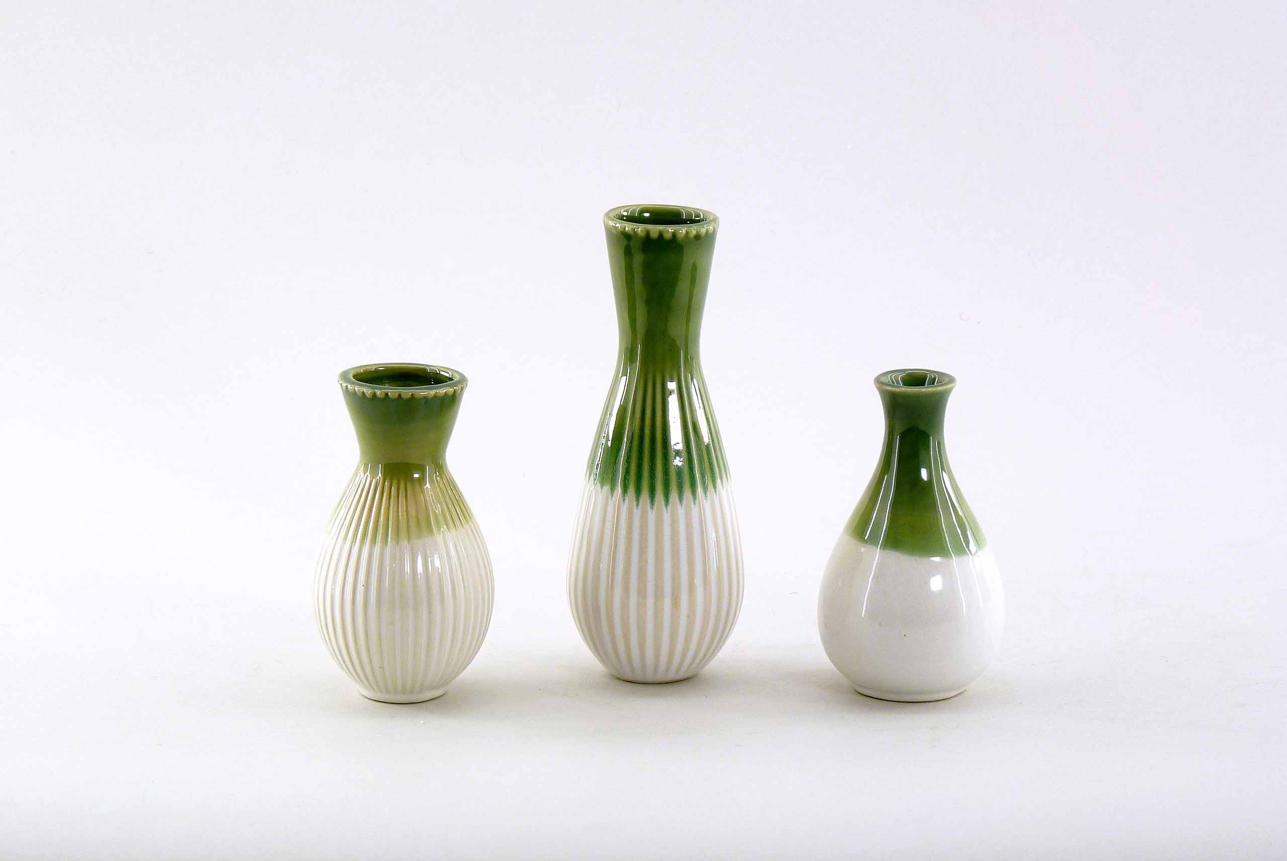 Porzellan-Vase grün-creme sort. H8,5-12,5cm