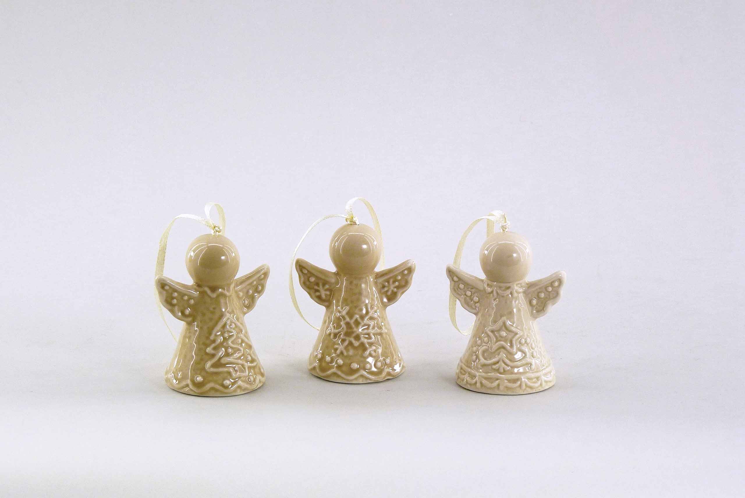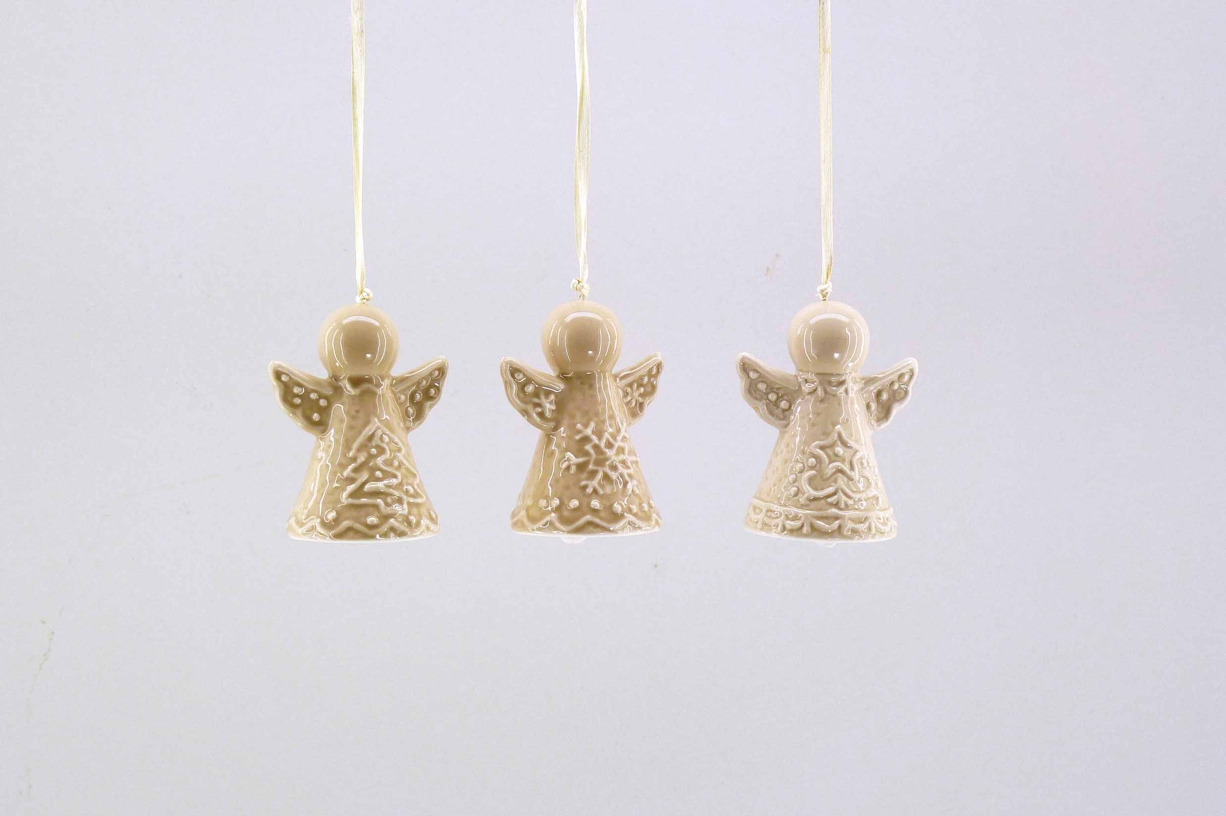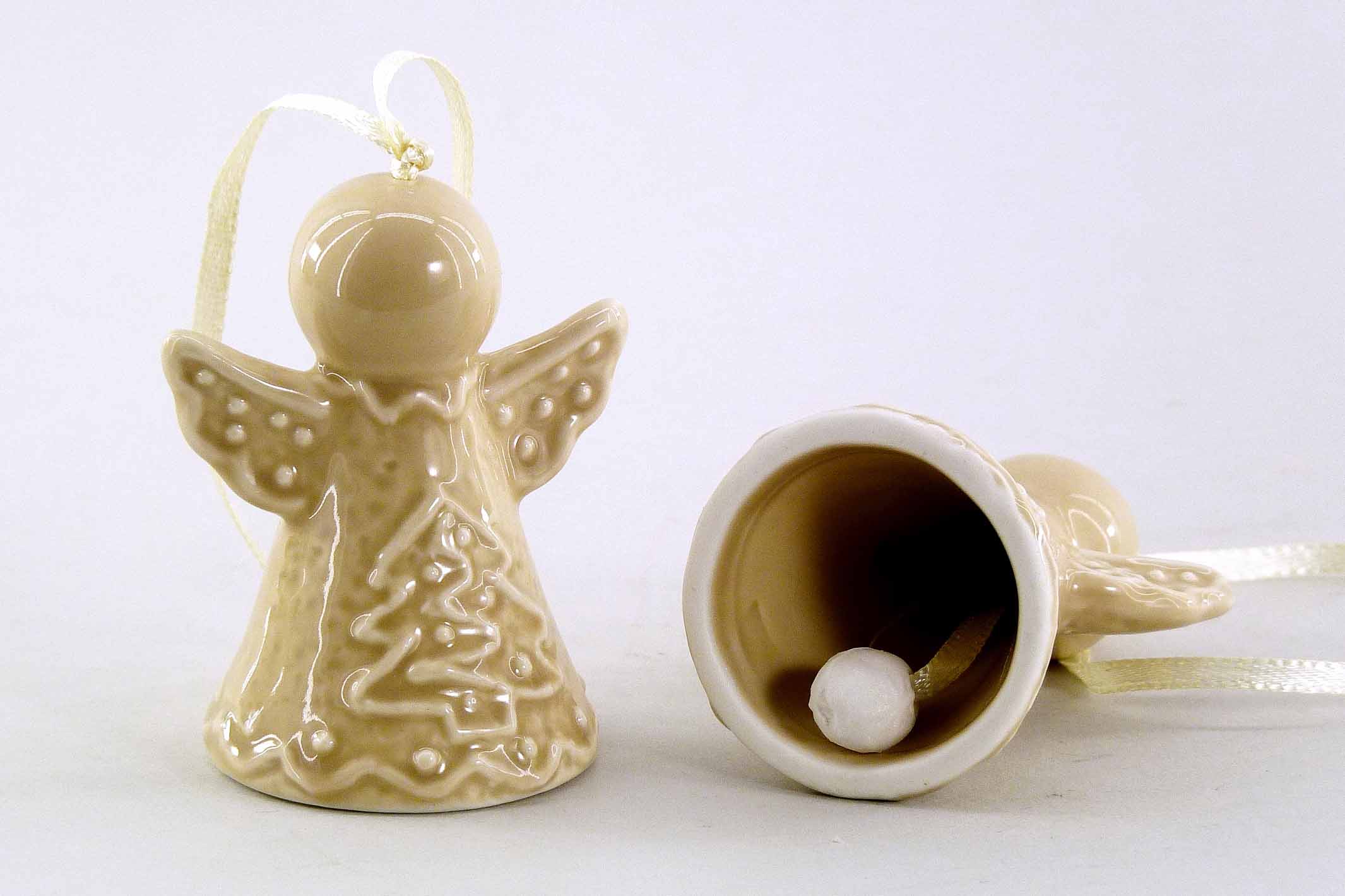 Porzellan-Engel ''Lebkuchen'' hgd. +Glockerl creme-braun sort. H7cm