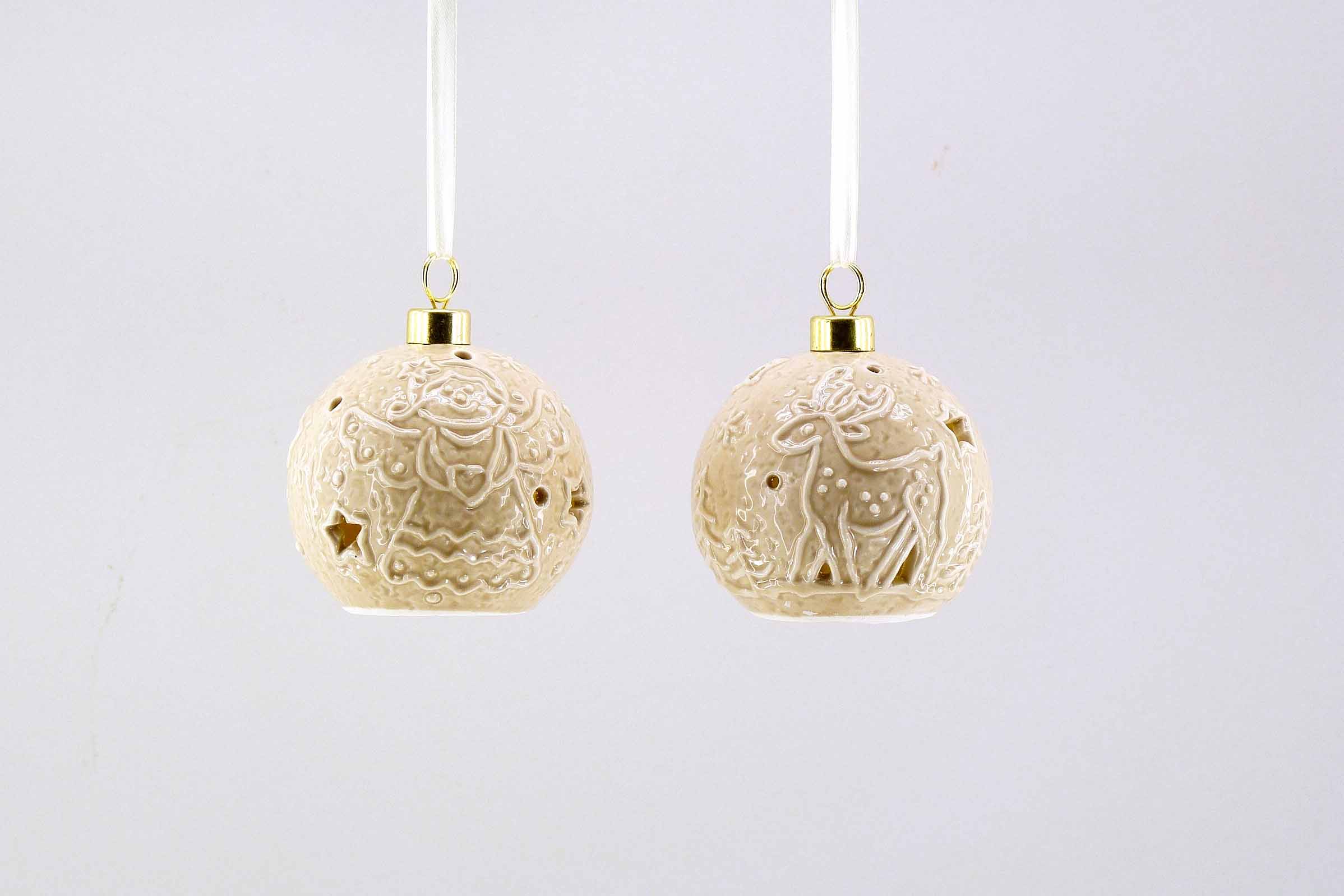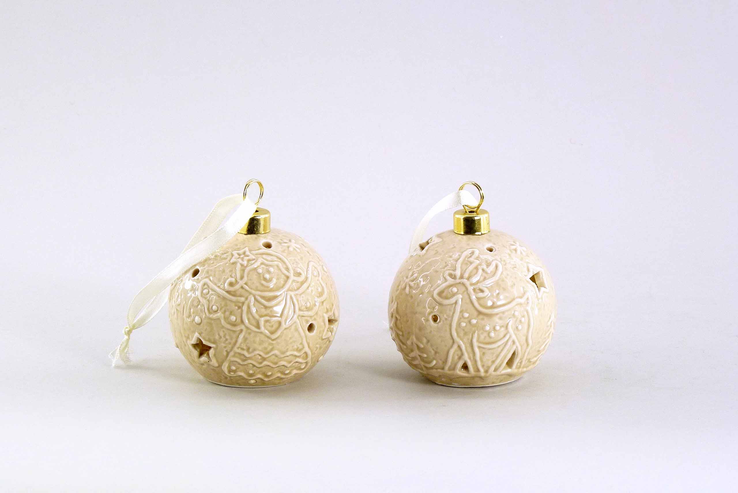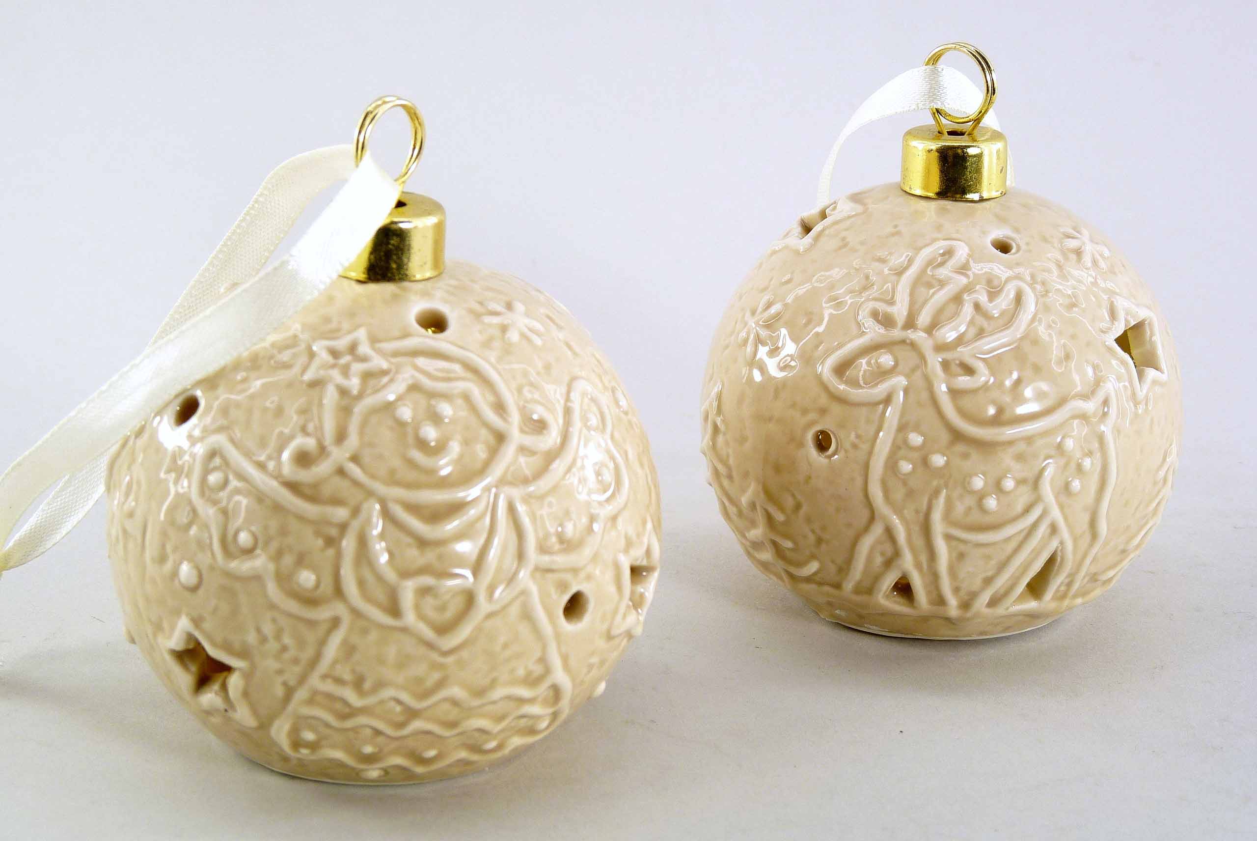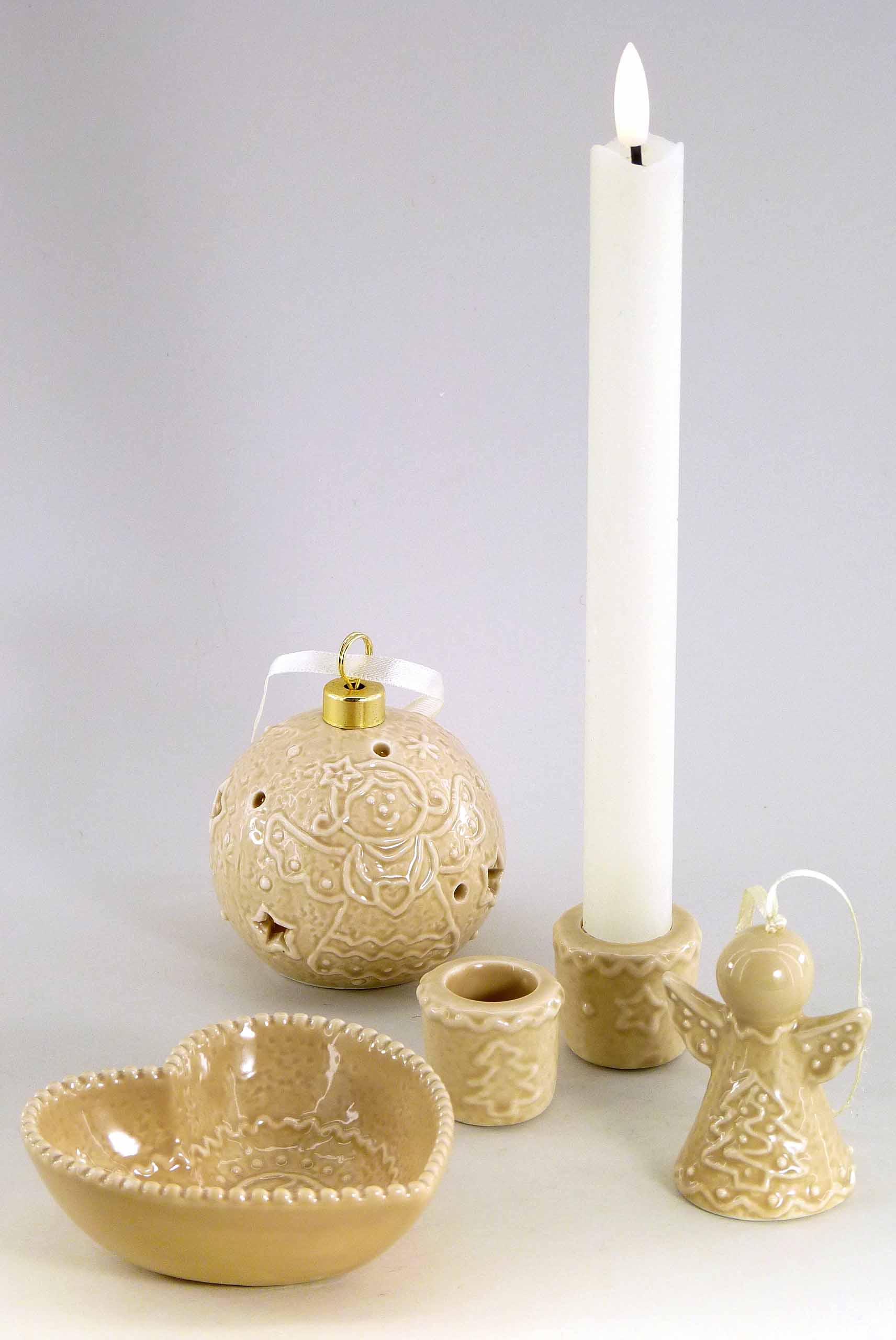 Porzellan-Kugel ''Lebkuchen'' hgd. +LED creme-braun sort. ø8 H9cm
