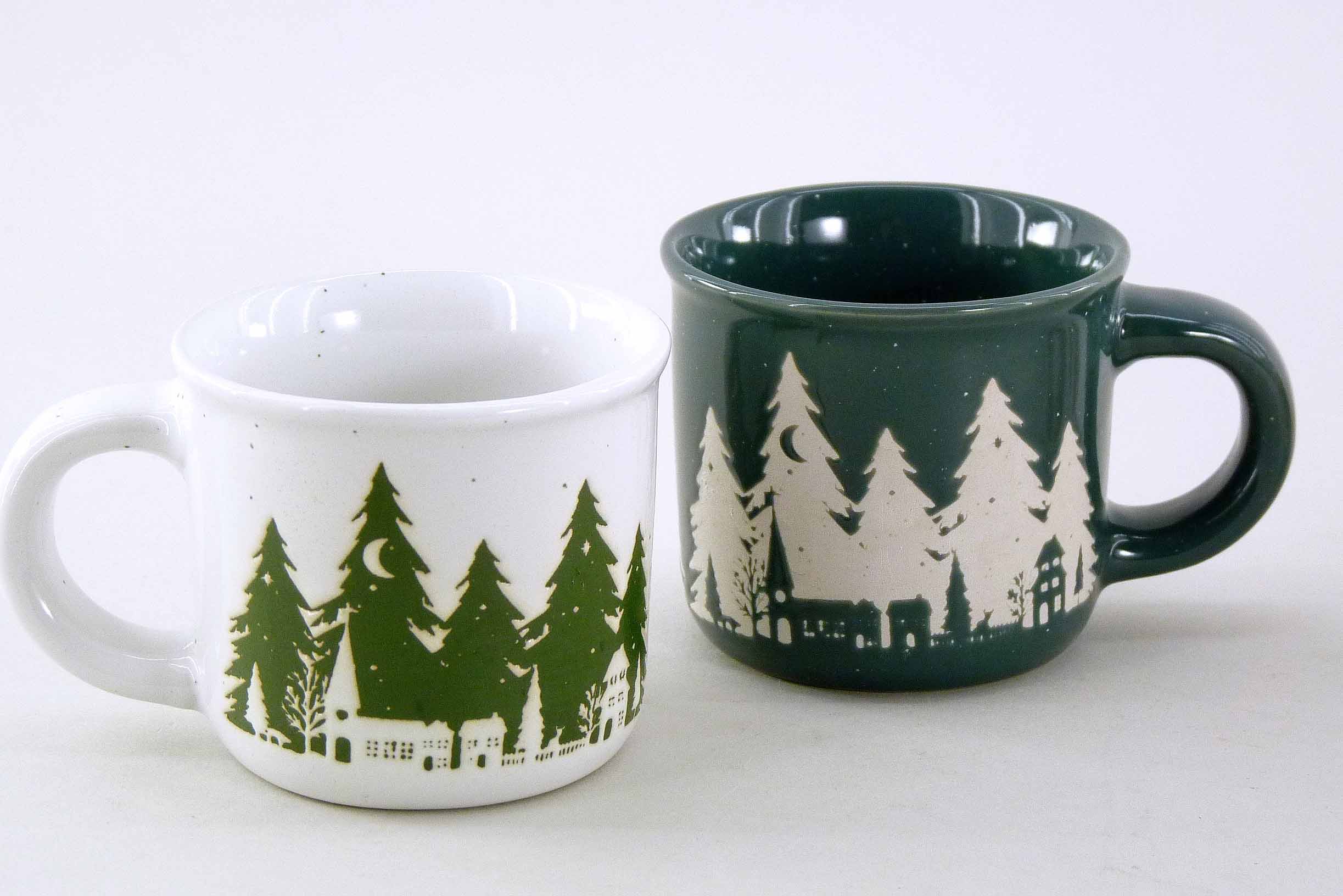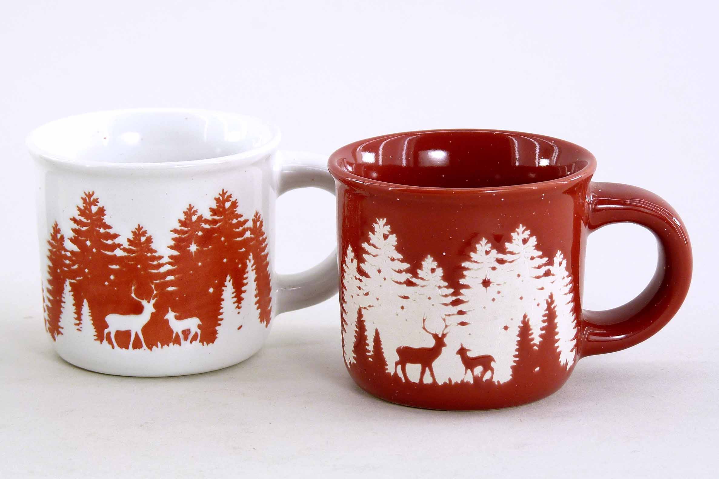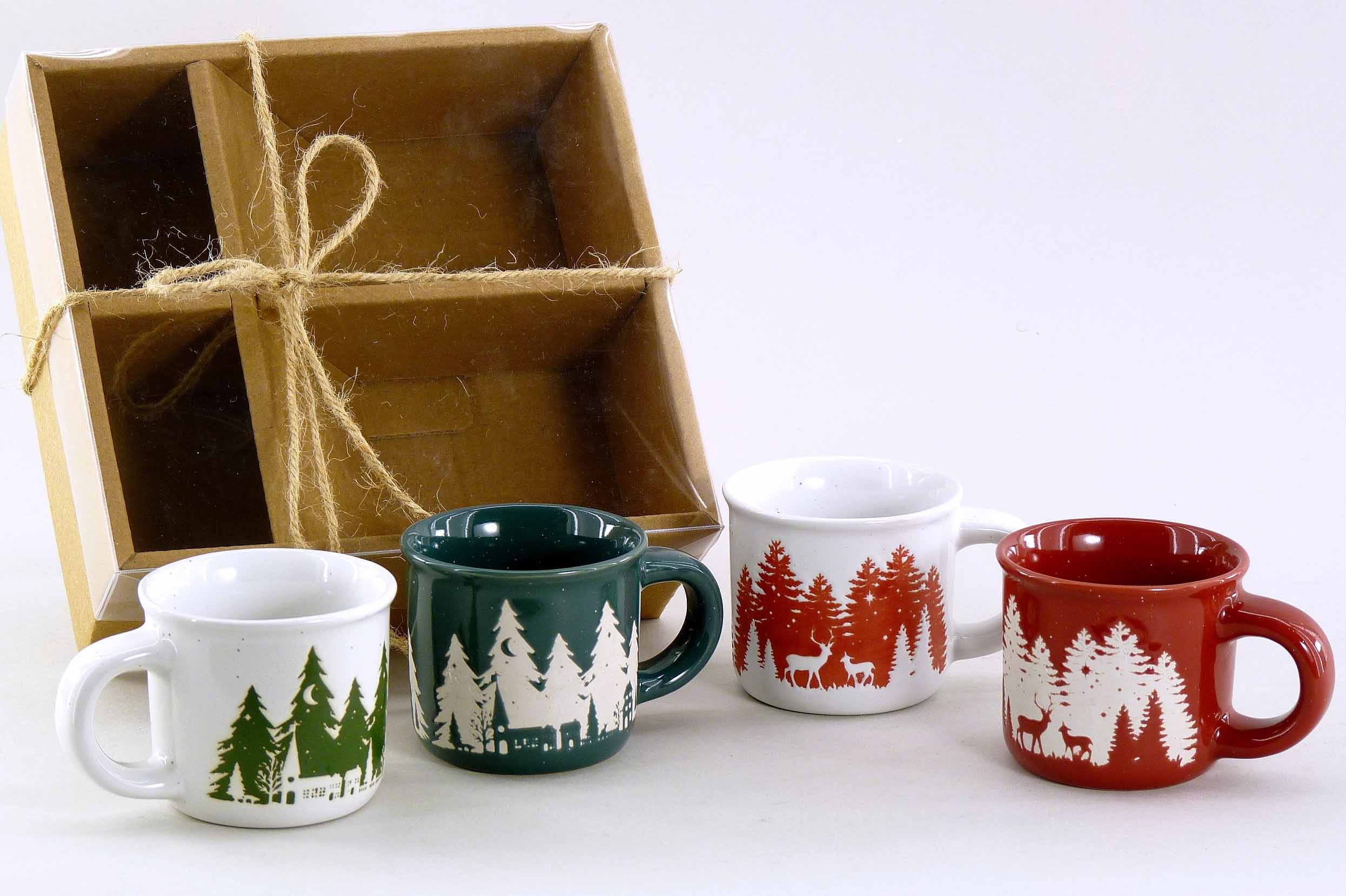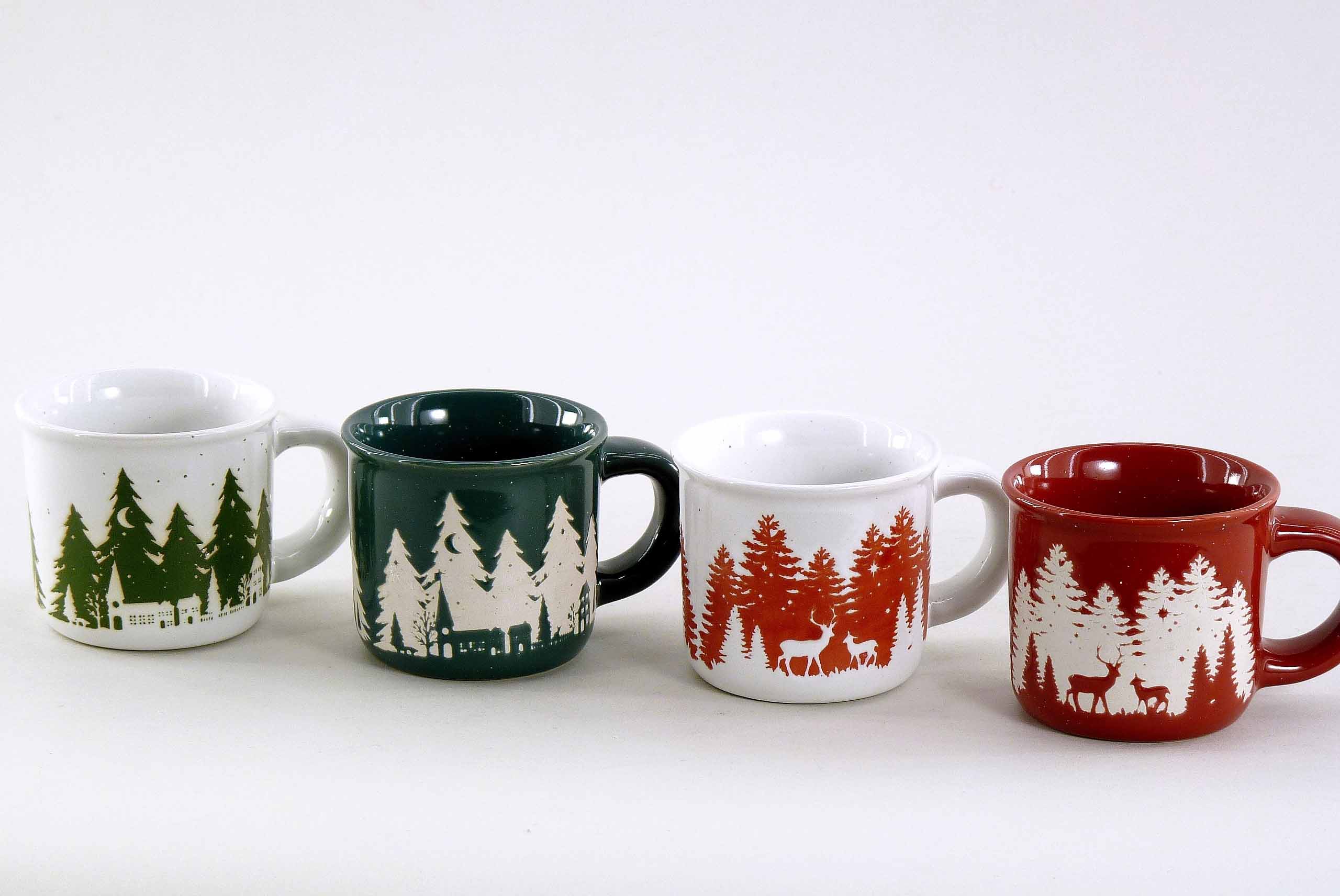 Steingut-Espressotasse ''Winterwald'' S/4 rot-grün-weiß ø6,5 H5,5cm