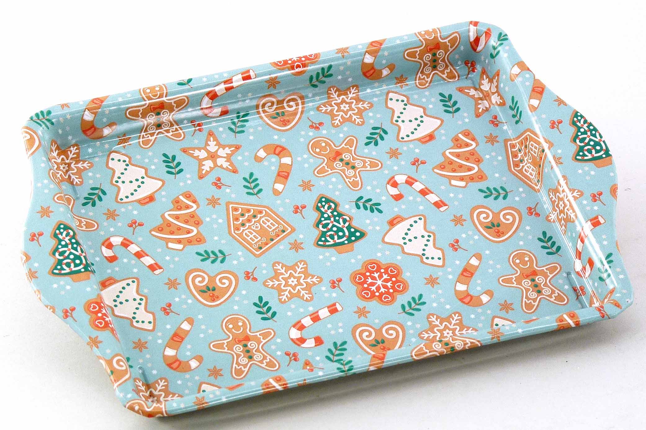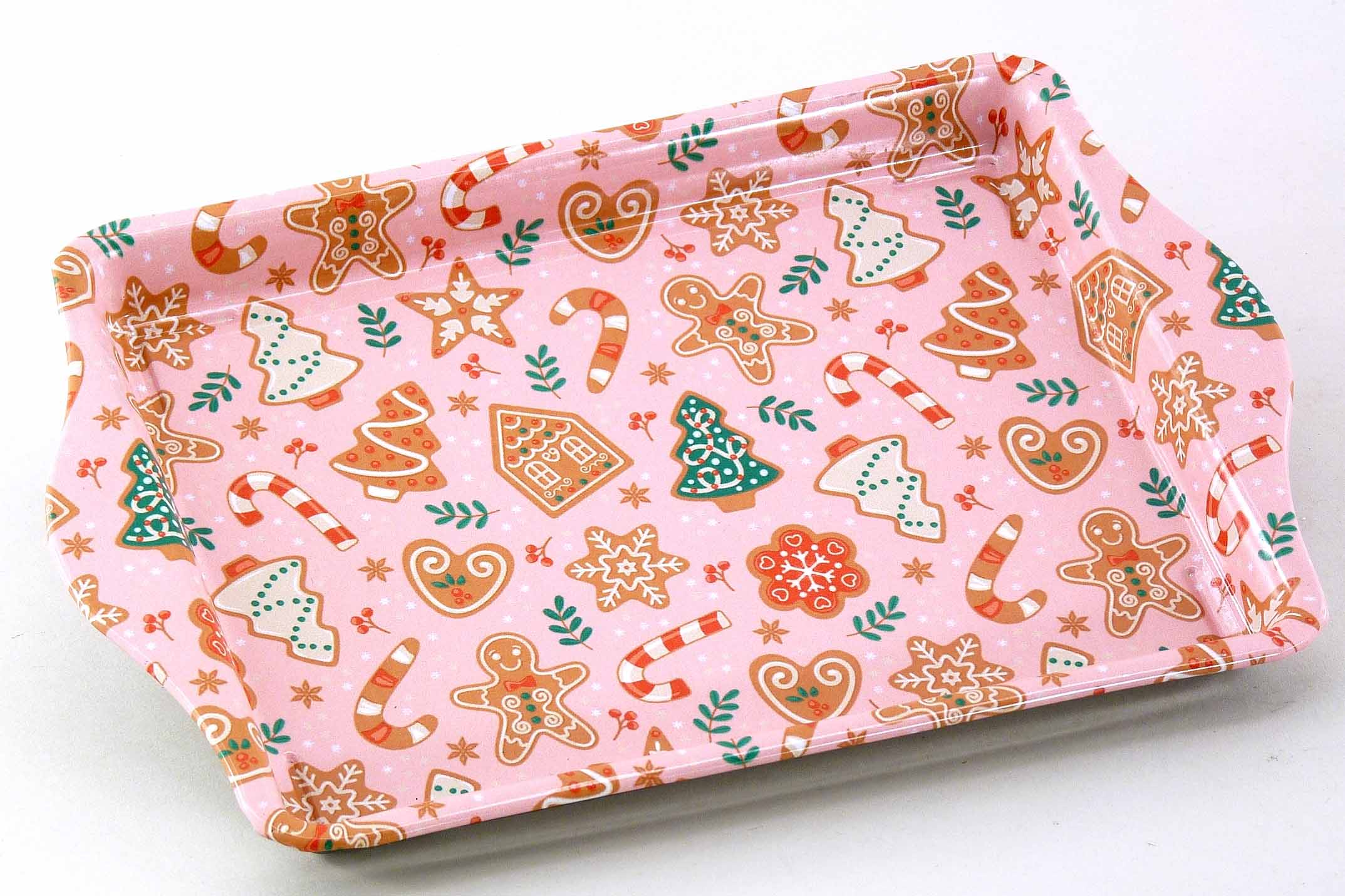 Metall-Tablett ''Cockies'' rosa/mint sort. 21,5x14,5cm