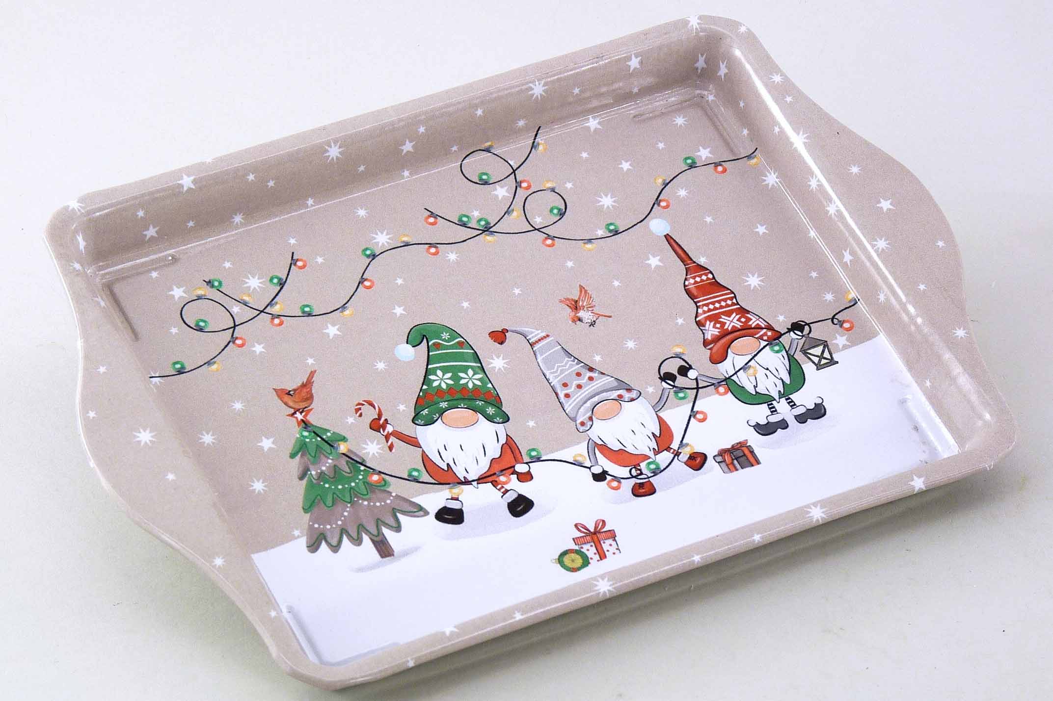 Metall-Tablett ''Wichtel'' rot-grün-beige 21,5x14,5cm